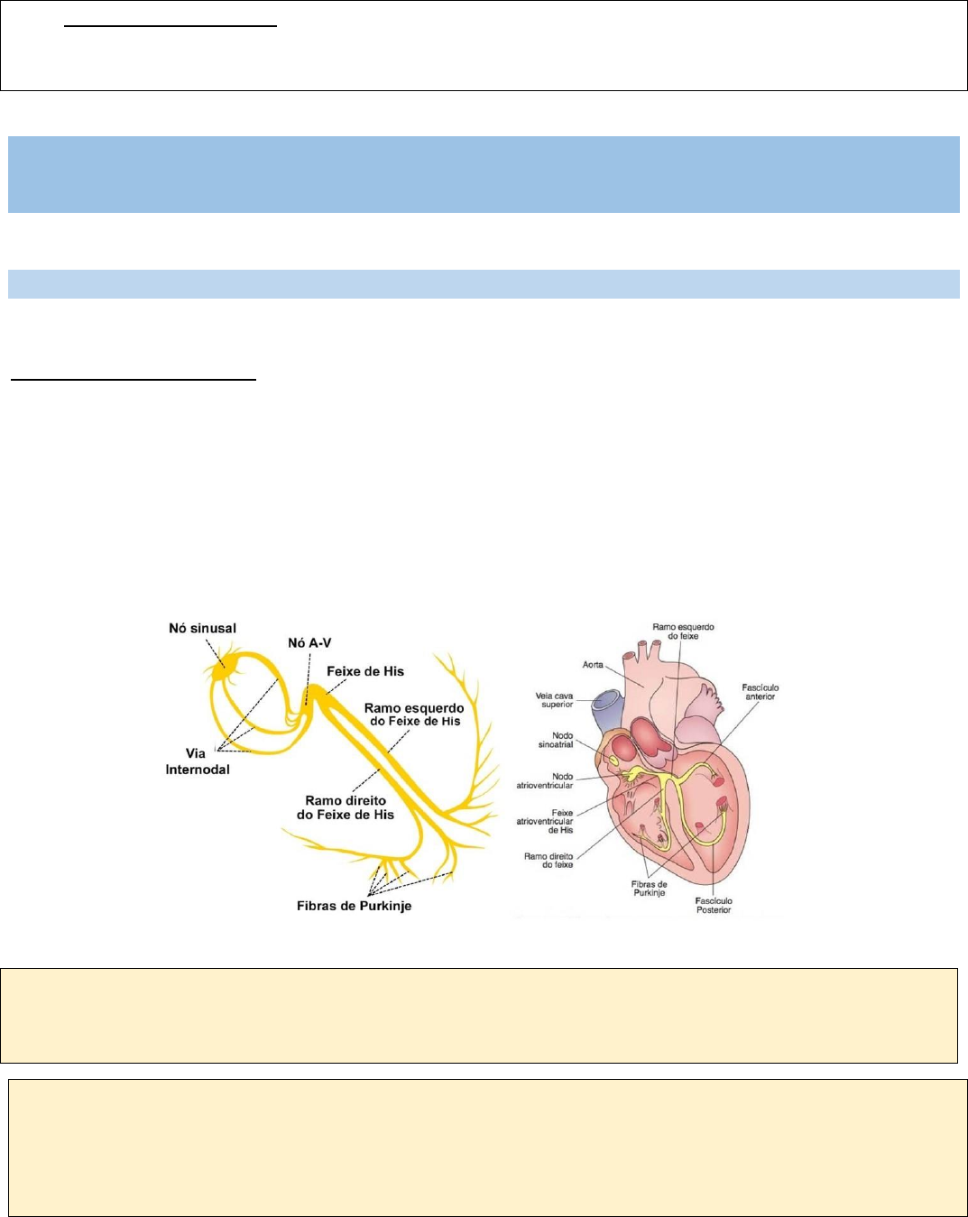 RLVS – G4b T2 RODÍZIO URGÊNCIA E EMERGÊNCIA – 9° Período AULA 1 Prof.: José Francisco Temas do Rodízio de UE: dor torácica, arritmias na emergência, PCR, emergências neurológicas, emergências endócrinas, insuficiência respiratória, acidentes com animais peçonhentos e intoxicações exógenas. ECG DOR TORÁCICA AGUDA NA EMERGÊNCIA ECG O ECG consegue determinar gravidade, sugerir alterações cardíacas, metabólicas, neurológicas. Sistema elétrico do coração: • O nó sinusal/sinoatrial (NSA) gera o estímulo elétrico que se difunde pelos átrios através dos feixes intermodais (primeiro despolariza AD e depois AE). O estímulo então desce p/ o nó atrioventricular (NAV), que retarda a passagem do estímulo, permitindo que os átrios contraiam antes dos ventrículos. Após o NAV, o estímulo segue pelo feixe de His, no septo interventricular, o qual apresenta 2 ramos – direito e esquerdo. Depois chega nas fibras de Purkinje que possibilitam a passagem do impulso elétrico pelos ventrículos Em condições normais o estímulo nasce no nó sinoatrial (NSA). O estímulo irá seguir para as fibras internodais, nó atrioventricular (NAV), sofre o retardo e a partir daí segue pelos feixes de His esquerdo e direito, células de purkinje e por último despolariza a base dos ventrículos. Repouso → ausência de corrente elétrica. Início de despolarização → começa a gerar corrente elétrica. Final da despolarização → contração. Repolarização → relaxamento. RLVS – G4b T2 COMO POSICIONAR OS ELETRODOS? • O que é derivação? É uma medida de potencial entre dois pontos distintos. *Brasil x Flamengo *Triângulo de Einthoven (DI, DII e DIII) + outras derivações (avF, avL, avR). O eixo NORMAL do coração estará entre -30° e +90°. RLVS – G4b T2 O que eu não consigo definir? Consigo ver se o ECG está para a direita, para esquerda, para baixo, para cima. Mas, não consigo ver se o vetor está para frente ou para trás. E como posso fazer isso??? CRIANDO DERIVAÇÕES! ● Linha paraesternal no 4° espaço intercostal - V1 (direita), V2(esquerda); ● Linha hemiclavicular 5° espaço intercostal - V4; ● V3 = entre o V2 e o V4; ● Linha axilar anterior - V5; ● Linha axilar média - V6; DI, DII, DIII, aVR, aVL, aVR → derivações do plano FRONTAL ou PERIFÉRICAS. V1, V2, V3, V4, V5, V6 → derivações do plano HORIZONTAL ou PRECORDIAIS. RLVS – G4b T2 Linha de raciocínio a seguir na AVALIAÇÃO DO ECG – roteiro com 9 passos: 1. IDENTIFICAÇÃO: Nome do paciente, idade, sexo, hora, data do momento do exame (normalmente está no cabeçalho do exame). o Pode ocorrer troca de exame de pacientes. o O ECG seriado é importante na SCA, por isso é necessário o horário de cada exame. o Alguns parâmetros no ECG dependem do sexo (ex. valor do intervalo QT, do ponto J). ▪ Alguns parâmetros para diagnosticar sobrecarga ventricular esquerda são diferentes para homens e mulheres o Idade é importante – os critérios de sobrecarga variam de acordo com a idade. ▪ Há variações nos parâmetros considerados normais de FC de um recém-nascido para um adulto, por exemplo. 2. PADRONIZAÇÃO: o Velocidade do registro (normalmente é 25 mm/s → N). ▪ Corresponde à 5 quadradões em 1 segundo. Logo, 1 quadradinho (1mm) = 0,04s. o Pode-se fazer 2N – 50 mm/s (quando se deseja aumentar a amplitude) ou fazer N/2 – 12,5 mm/s. o Para conseguir enxergar melhor em algumas restrições clínicas (ex. em hipotireoidismo, miocardiopatias restritivas), pode-se alterar a padronização para 2N. o Há situações em que o QRS possui voltagem elevado e isso pode fazer com que o traçado não caiba no ECG ou que um QRS fique sobreposto ao outro. Nesses casos, pode-se alterar a padronização para N/2. ▪ Quando se aumenta a amplitude de velocidade (2N), espaça os QRS (tendência a ter uma bradicardia) – amplia a visualização. ▪ Quando se divide pela metade a velocidade (N/2), aproxima os QRS (tendencia a ter taquicardia). o Avalia por meio da barra retangular que em geral fica no canto à direita; o normal é que essa barra tenha 10 quadradinhos de altura (2 quadradões) e 5 quadradinhos (1 quadradão) de duração. RLVS – G4b T2 ✓ No ECG, 1 quadrado pequeno corresponde a 1 mm no traçado; 1 quadrado grande por sua vez é formado por 5 quadrados pequenos de altura e por 5 quadrados pequenos de largura. ✓ Normalmente, cada quadrado pequeno na horizontal corresponde a 40 milissegundos (ms) de duração (0,04 seg). ✓ Assim, 1.0 segundo corresponde a 25 quadrados pequenos. Desta forma, a regra é que a velocidade do papel do eletro seja de 25 quadrados pequenos por segundo o que é o mesmo que dizer 25 milímetros por segundo (25 mm/s). ✓ Já em relação à amplitude, o padrão é que 10 quadrados pequenos verticais correspondem a 1 milivolt (mV). ✓ Ou seja, um quadrado pequeno corresponde a 0,1 mV. Esta amplitude padrão é chamada de N. ✓ Se 1 mV corresponder ao dobro da amplitude normal, ou seja, 20 quadrados pequenos ao invés de 10, diz-se que a amplitude é 2N. 3. RITMO E FC: o Importante saber se o ritmo é sinusal: ▪ Avaliar a onda P (despolarização atrial) → deve ter a mesma morfologia (côncava, com porção inicial simétrica à final), sempre preceder o complexo QRS, estar positiva em DI, DII e avF e negativa em avR. o Deve-se determinar a regularidade (se o espaço entre os QRS é regular). o Para determinar a FC: ▪ Se o ritmo é regular →1500/n° de quadradinhos entre 2 ondas R (cada quadradinho tem 40 ms de duração e 1mm de amplitude) ou 300/n° de quadradões entre 2 ondas R (que contém 5 quadradinhos); ▪ Se o ritmo é irregular → contar o n° de complexos QRS no DII longo e multiplicar por 6. RLVS – G4b T2 ATENÇÃO: A simples presença de onda P, não é suficiente para afirmarmos que o ritmo é sinusal. 4. ONDA P: o Representa a despolarização atrial. ▪ Primeiro ocorre a DESPOLARIZAÇÃO do AD (