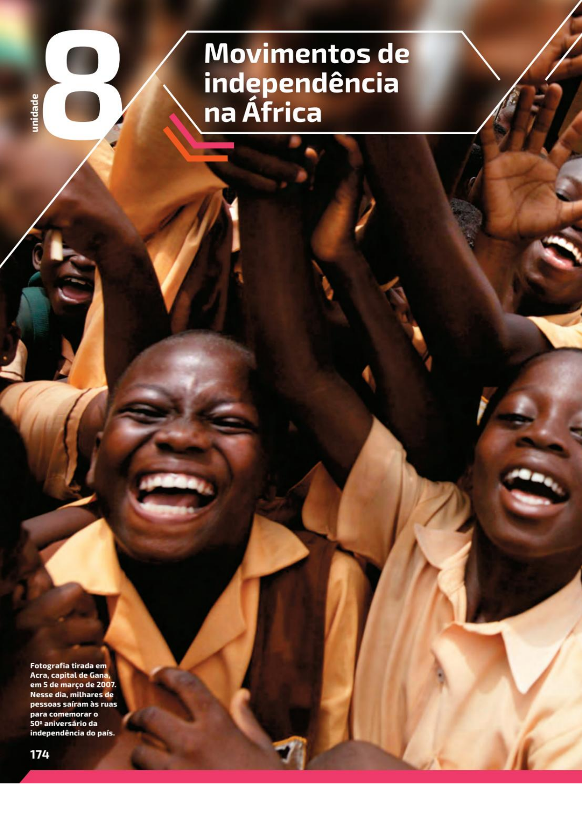 Movimentos de independência na Fotografia tirada em Acra, capital de Gana, em 5 de março de 2007. Nesse dia, milhares de pessoas saíram às ruas para comemorar aniversário da independência do país. 174Durante a Guerra Fria, grande parte dos países africanos conquistou sua independência. Vários fatores influenciaram esse processo, entre eles a difícil situação de algumas potên- cias imperialistas depois da Segunda Guerra Mundial, incapazes de manter seus domínios coloniais na África diante de movimentos populares nacionalistas e anti-imperialistas, que passaram a lutar pela independência em diversos países africanos. Nesta unidade, vamos estudar o contexto em que ocorreram essas independências e as peculiaridades desse processo em diferentes regiões da África. Além disso, vamos conhecer algumas caracterís- ticas dos novos países africanos e também os principais problemas que eles passaram a enfrentar após a independência. Veja as respostas das questões nas Orientações para o professor. A Descreva a fotografia. Qual sensação ela passa? B que você sabe sobre os processos de independência na África? Comente.período pré-independências Grande parte dos países africanos conquistou sua emancipação política em mea- dos do século XX. Diversos fatores influenciaram os processos de independência na África, entre eles a participação de soldados africanos na Segunda Guerra Mundial, a propagação de ideologias pan-africanistas e pan-arabistas e a influência da União Soviética (URSS) e dos Estados Unidos (EUA). Soldados africanos na Segunda Guerra Mundial Mais de um milhão de soldados africanos combateram nos exércitos das Soldados africanos que lutaram com os Aliados les durante a Segunda Guerra Mundial. Ao lado dos britânicos, eles lutaram na Índia e no norte da na Birmânia (atual Myanmar) contra os japoneses. No norte da África, na Itália, na Fotografia tirada na Alemanha e na França, ao lado dos Aliados contra as forças do Eixo. Líbia, em 1942. A experiência durante a guerra os fez refletir sobre sua condição de povos colonizados. Durante o conflito, os sol- dados africanos ouviam os líderes dos países Aliados fala- rem a respeito de libertarem pessoas oprimidas e do direito à autodeterminação dos povos, além de criticarem o impe- rialismo praticado pelos nazistas. Eles perceberam, desse modo, a grande incoerência entre o discurso dos líderes Aliados e as suas práticas imperialistas. Com isso, ao retor- narem para a África com o fim da guerra, foram grande de- fensores das independências. tema sobre o pan-africanismo Ideologias anti-imperialistas favorece trabalho interdisciplinar com Dois movimentos político-ideológicos colaboraram para o processo de indepen- Geografia. Veja, nas dência na África: o pan-africanismo e o pan-arabismo. primeiro foi elaborado no Orientações para o sugestão final do século XIX por intelectuais afro-americanos e antilhanos, espalhando-se de- para a realização desse trabalho. pois entre intelectuais africanos residentes na Europa, que, mais tarde, o difundiram pela África. Os pan-africanistas defendiam a autonomia e a unidade do continente "Descolonização" africano, divulgando suas ideias principalmente por meio da literatura, de conferên- termo cias e de congressos. "descolonização", usado muitas pan-arabismo, por sua vez, teve maior influência no norte da África, entre os paí- vezes para explicar ses de tradição árabe-muculmana, como Argélia, Mauritânia, Tunísia, Líbia e Egito. os processos de principal irradiador desse movimento foi Gamal Nasser, presidente do Egito entre 1954 independência na África, não é e 1970, que defendia a união desses povos para o seu fortalecimento na luta contra o considerado imperialismo ocidental. Mais tarde, os movimentos pan-africanista e pan-arabista se apropriado por muitos uniram na luta contra o imperialismo. estudiosos. Esse termo, que, segundo eles, apresenta uma A influência da Guerra Fria visão passa a ideia de que No contexto da Guerra Fria, URSS e EUA passaram a apoiar os movimentos de in- as teriam dependência na África, interessados, principalmente, em para suas respectivas concedido por áreas de influência os países que se tornassem independentes. vontade própria a independência aos Defendendo uma postura anti-imperialista, a URSS procurava aumentar a influência africanos, o que de do socialismo nos países em luta pela independência. Como o imperialismo estava fato não ocorreu. As vinculado ao capitalismo, os socialistas argumentavam que lutar contra o capitalismo independências na era um meio de combater o imperialismo. África são resultado da luta dos próprios Os EUA, por sua vez, procuravam ampliar sua influência na África justificando sua africanos contra intervenção com base no direito de autodeterminação dos povos e na responsabilidade o imperialismo. dos estadunidenses na defesa da democracia liberal. 176Os processos de independência na África Os processos das independências na África variaram de acordo com cada lugar e cada época. Durante as lutas de independência, ocorreram conflitos ar- mados, protestos, manifestações, gre- ves e acordos diplomáticos. A maioria dos países africanos tor- nou-se independente a partir da década de 1950. As exceções foram a Etiópia e a Libéria, que não eram colônias e o Egito, que conquistou sua independên- cia em 1922. Fotografia de 1926 que retrata uma reunião do Parlamento do Egito, no Cairo. No trono, está sentado o líder egípcio Ahmed Fuad Pasha, que após a independência passou a ser chamado de rei Fuad I. Observe, no mapa a seguir, as datas em que cada país africano conquistou sua independência. As independências no continente africano Alemanha e N OCEANO TUNÍSIA Itália perdem ATLÂNTICO 1956 Mar Mediterrâneo L MARROCOS suas colônias 1956 S Com sua derrota SAARA OCIDENTAL ARGÉLIA Trópico de LÍBIA na Primeira Guerra 1976 1