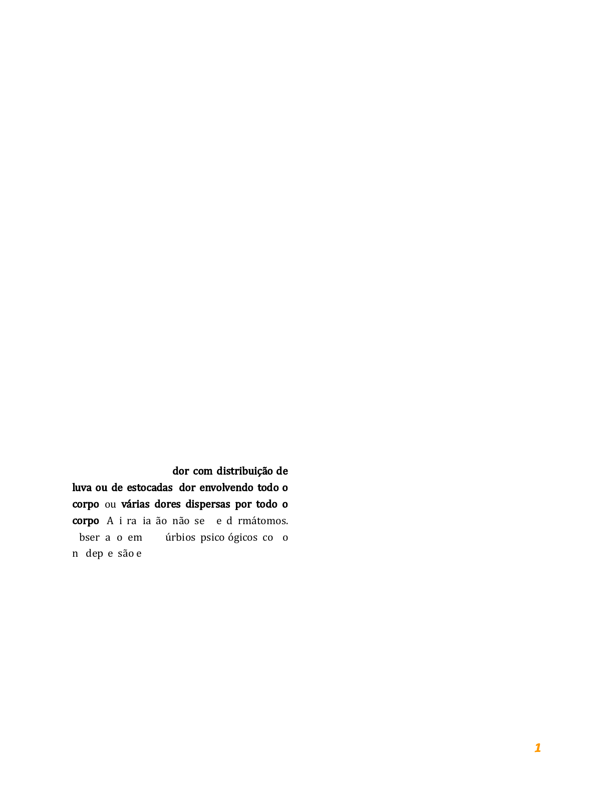 Fernanda Rodrigues DOR PSICOGÊNICA (NOCIPLÁSTICA) 1. Compreenda a dor psicogênica (nociplástica) Toda dor tem um componente emocional associado, o que varia é sua magnitude. A dor denominada psicogênica, porém, é uma condição inteiramente distinta, na qual não há substrato orgânico, sendo gerada por condições emocionais. A localização e a distribuição da dor causada primariamente por um distúrbio psicológico ou psiquiátrico geralmente não se encaixa nos padrões neuroanatômicos normais. Exemplos incluem a dor com distribuição de luva ou de estocadas, dor envolvendo todo o corpo ou várias dores dispersas por todo o corpo. A irradiação não segue dermátomos. Observado em distúrbios psicológicos como na depressão e ansiedade generalizada. Embora essa seja uma denominação comumente utilizada para dores sem patologia observável associada, certamente não é um fingimento ou causada inteiramente por processos misteriosos da mente do paciente. Mais frequentemente, é um comportamento de dor causado por fatores ambientais. Outros pacientes apresentam síndromes miofasciais ignoradas por seus médicos. O uso apropriado deste termo diagnóstico requer achados positivos que sugerem que processos mentais são a única causa da queixa do paciente. Esse não deve ser um diagnóstico de exclusão, quando não há achados físicos que expliquem os sintomas apresentados. Dor psicogênica é um tipo de dor em relação à origem, nesse caso, resultado da interação entre fatores físicos e psicológicos. Também conhecida como psicofisiológica, está muito ligada ao medo e a ansiedade, que tendem a tornar os neurônios mais sensíveis à dor por reduzirem os níveis das substâncias que modelam essa sensação. Em muitos casos o problema surge após a resolução da causa da dor, ou seja, o incômodo persiste, e muitas vezes se torna ainda mais intenso, apesar da sua origem já ter sido tratada. Para ser classificada como psicogênica, a dor não deve envolver nenhum mecanismo nociceptivo ou neuropático. Os sintomas psicológicos são suficientes para explicá-la, embora seu caráter subjetivo torne o diagnóstico mais complexo e demorado. 1 Fernanda Rodrigues Sendo assim, é necessária uma avaliação médica criteriosa de cada paciente com intuito de identificar a origem da dor. Nesses casos, os exames geralmente são inconclusivos e não demonstram nenhuma alteração física, não evidenciando enfermidade alguma. Um bom exemplo são pacientes que procuram o médico com queixas de dores no peito, mas não apresentam problemas fisiológicos no coração. Sintomas cardíacos são bastante comuns em pacientes fóbicos. Características da Dor Psicogênica: – Tende a ser uma dor difusa ou de localização imprecisa. – Algumas vezes, pode ser bem localizada, mas, nesse caso, sua topografia corresponde à da imagem corporal que o paciente tem da estrutura que julga doente. – Assim, se ele imagina ter um infarto do miocárdio, a área dolorida localiza-se no mamilo esquerdo e não na região retroesternal ou na face interna do braço esquerdo, como ocorre na dor por isquemia miocárdica. A dor psicológica causa uma dor física real, embora não esteja relacionada a alterações fisiológicas. Seria possível ao paciente com dor no coração identificar se é uma dor física ou se trata-se de apenas um sintoma psicológico? Infelizmente, não. A dor psicológica causa uma dor física real, embora não esteja relacionada a alterações fisiológicas. Geralmente, o sintoma tem similaridades com dores já experimentadas em outros momentos da vida, que retornam através da memória da dor causando episódios dolorosos repetitivos e intensos. Cada paciente descreve a sua dor de uma forma. Em sua maioria, queixam-se de dor austera e profunda, como uma facada. Outros dizem ter a sensação de que estão encostando feridas em ferro quente. Dentre as mais comuns, dor de cabeça, dor muscular, dor nas costas, dor no peito e dor no estômago são frequentemente diagnosticadas como dores psicogênicas. Se você tem histórico para esse tipo de dor, pode suspeitar sim que alguns sintomas possuem origem psicológica. Contudo, em todo caso, uma investigação é importante para descarte de possíveis alterações físicas envolvidas. Mecanismo da dor O mecanismo da dor psicogênica ainda é pouco compreendido, embora venha chamando a atenção de estudiosos. Acredita-se que fatores ambientais podem estar envolvidos, em especial aqueles relacionados a alterações do estado e da função do sistema nervoso. Até então é aceita a participação de uma combinação complexa de eventos envolvendo questões físicas e psicogênicas. 2 Fernanda Rodrigues No entanto, cada caso é único e deve ser avaliado de maneira individualizada. Situações particulares estão envolvidas com a iniciação dos sintomas e podem ser associadas às suas causas. Basta comparar as reações de diferentes indivíduos em circunstâncias similares. Talvez você sinta muita dor de cabeça quando passa por momentos estressantes, enquanto outros indivíduos descrevem dor no peito, por exemplo. Mais uma vez ressaltamos a importância da análise clínica de cada paciente. “A dor, por ser diretamente influenciada por fatores psicológicos, irá demandar um acompanhamento com equipe multidisciplinar, que deverá contar com um psicólogo ou um psiquiatra.” Tratamento para dor psicogênica Embora ainda se entenda pouco sobre o mecanismo por trás desse tipo de dor, e suas causas ainda não sejam conhecidas, existem diferentes opções terapêuticas capazes de ajudar pacientes que convivem com esse problema. O tratamento deve ser adequado às necessidades individuais de cada paciente com o objetivo de melhorar tanto sua saúde física como psicológica. Tratamento medicamentoso Alguns medicamentos podem ajudar no alívio da dor. O tratamento medicamentoso é importante para controlar possíveis complicações