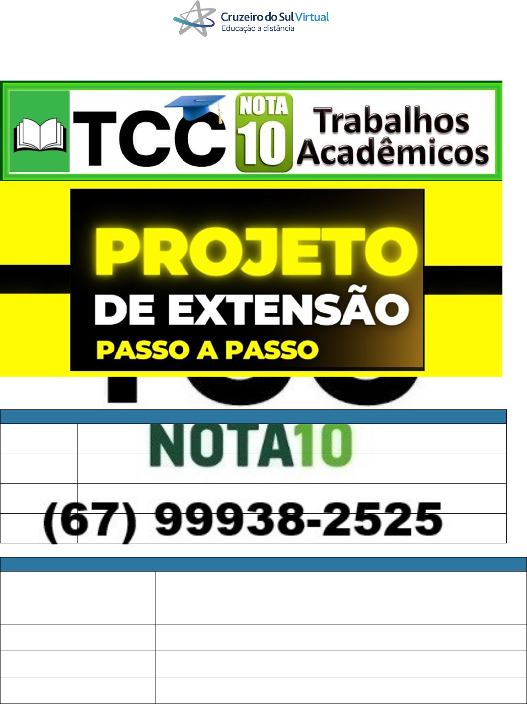 RELATÓRIO DAS ATIVIDADES DE EXTENSÃO 1. IDENTIFICAÇÃO DO ALUNO Nome TRABALHOS ACADÊMICOS - TCC NOTA 10 RGM WHATSAPP – (67) 99938 - 2525 Curso REALIZAMOS PROJETOS DE EXTENSÃO PARA TODOS OS CURSOS Campus/Polo SOLICITE UM ORÇAMENTO!!! WHATSAPP – (67) 99938 - 2525 2. IDENTIFICAÇÃO DA ATIVIDADE Nome do Projeto Ação Instituição parceira (se houver) Período de Realização Público-alvo Número de pessoas atendidas Carga Horária 3. DESENVOLVIMENTO 3.1 Breve relato sobre a atividade realizada, a partir das seguintes premissas: Apresente de forma sucinta as atividades realizadas ao longo do semestre, considerando a Instituição ou a comunidade em que você atuou. Indique qual(is) os Objetivos de Desenvolvimento Sustentável relacionados a essa atividade. 3.2 Descrição das etapas da atividade realizada: Descreva os objetivos gerais e específicos da atividade, a justificativa, como a atividade foi realizada (metodologia), o cronograma das atividades, qual o público-alvo assistido, quantas pessoas foram atendidas e/ou impactadas pela atividade, os resultados obtidos. Insira a maior quantidade de informações, de maneira a apresentar uma visão global de sua atuação. 3.3 Discussão e Resultados alcançados: Descreva qual foi a sua atuação na condução da atividade, partindo do princípio de como a atividade contribuiu para a sua formação cidadã e profissional; bem como para a sua formação acadêmica (conteúdos e experiências). Apresente, ainda, os resultados alcançados junto à comunidade, ou seja, a contribuição da atividade para o público-alvo e os impactos da transformação local. 3.4 Autoavaliação: Apresente suas considerações finais, dificuldades enfrentadas, sugestões e outras observações pertinentes. 3.5 Anexos Insira os documentos comprobatórios da realização das atividades (fotos e/ou vídeo) CRUZEIRO DO SUL VIRTUAL RELATÓRIO DAS ATIVIDADES DE EXTENSÃO IDENTIFICAÇÃO DO ALUNO Relatório de Entrega de Atividades Extensionistas Nome RGM Curso Campus/Polo IDENTIFICAÇÃO DA ATIVIDADE Nome do Projeto Ação Instituição parceira (se houver) Período de Realização Público-alvo Número de pessoas atendidas Carga Horária DESENVOLVIMENTO Breve relato sobre a atividade realizada, a partir das seguintes premissas: Apresente de forma sucinta as atividades realizadas ao longo do semestre, considerando a Instituição ou a comunidade em que você atuou. Indique qual(is) os Objetivos de Desenvolvimento Sustentável relacionados a essa atividade. Descrição das etapas da atividade realizada: Descreva os objetivos gerais e específicos da atividade, a justificativa, como a atividade foi realizada (metodologia), o cronograma das atividades, qual o público-alvo assistido, quantas pessoas foram atendidas e/ou impactadas pela atividade, os resultados obtidos. Insira a maior quantidade de informações, de maneira a apresentar uma visão global de sua atuação. Discussão e Resultados alcançados: Descreva qual foi a sua atuação na condução da atividade, partindo do princípio de como a atividade contribuiu para a sua formação cidadã e profissional; bem como para a sua formação acadêmica (conteúdos e experiências). Apresente, ainda, os resultados alcançados junto à comunidade, ou seja, a contribuição da atividade para o público-alvo e os impactos da transformação local. Autoavaliação: Apresente suas considerações finais, dificuldades enfrentadas, sugestões e outras observações pertinentes. Anexos Insira os documentos comprobatórios da realização das atividades (fotos e/ou vídeo) Local, xx de xxxxx de xxxx. Assinatura do Aluno Assinatura do Beneficiário(a) da ação Local, xx de xxxxx de xxxx. Assinatura do Aluno Assinatura do Beneficiário(a) da ação https://www.instagram.com/tccnota10assessoriaacademica/ https://www.facebook.com/TCCNOTA10TRABALHOS/ image1.png image2.png image3.jpeg image4.png