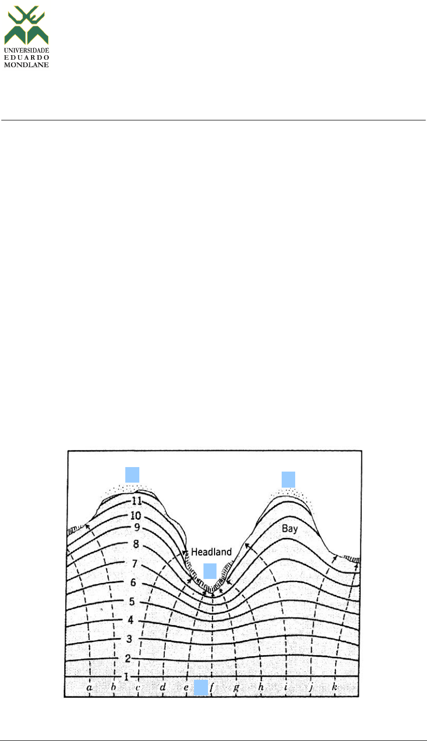 Exame de Recorrência de Introdução a Engenharia Costeira 2 Hrs Curso: Oceanografia e geologia Marinha 10-07-18 UEM/ESCMC/Intr. Eng. Costeira/2018 ESCOLA SUPERIOR DE CIÊNCIAS MARINHAS E COSTEIRAS 1. Defina Movimentos Isostáticos e Eustáticos e discuta o seu significado. 2. No geral, as costas podem ser classificadas em Costas estacionárias, Costas em retraimento e Costas em avanço, dependendo da direcção do movimento da linha de costa. Com base nesta afirmação, diga como serão classificadas as costas onde: a) Emergência é maior que Erosão. b) Submergência é maior que Deposição c) Emergência e Deposição cooperam. 3. Liste os factores/processos que são responsáveis pela forma de uma praia e podem modificar o perfil da mesma. 4. Liste os factores que contribuem para a degeneração das encostas marinhas. Escolha um deles e discuta em detalhe. 5. Discuta a importância e utilidade económica das praias. 6. No diagrama a seguir, diga qual será a distribuição de energia nos pontos A, B e C. Bom trabalho! A A B C A A B C