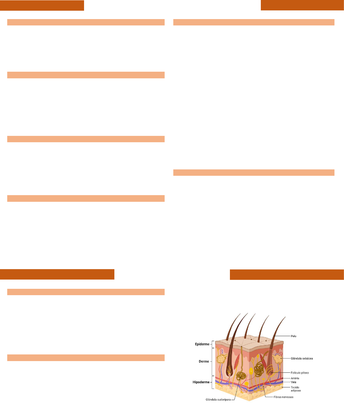 Risolene M. Silva ASPECTOS HISTÓRICOS DO TRATAMENTO DE FERIDAS MESOPOTÂMIA: ▸O primeiro histórico escrito foi encontrado em uma tábua de argila sumérica de 2100 a.C. Este é realmente o mais antigo dos manuscritos médicos do mundo. Os “três gestos de cura” descritos nesta tábua são: lavar as feridas, curativos/emplastros e bandagens (SHAI; MAIBACH, 2005). EGITO ANTIGO ▸Papiro de Edwin Smith, um egiptólogo, norte-americano que, em 1862, comprou o papiro de um comerciante em luxor. A tradução do documento só foi publicado em 1930. O papiro data de 1700 a.C., sendo uma cópia de manuscritos originais que remontam aos anos 3000-2500 a.C. ▸Neles são mencionados: graxa, mel, fios de linho e carne fresca. GRÉCIA: HIPÍCRATES (4600 a.C.) ▸Manter a ferida limpa e seca. ▸Limpar feridas com água morna, vinho e vinagre. ▸Feridas com sinais de inflamação aplicar uma cataplasma ou emplasmo na área circundante da ferida para visualizar os tecidos e permitir a livre drenagem do pus. CELSUS ▸Primeiro a definir inflamação, listou os sinais clássicos: eritema, calor, dor e edema. ▸Além disso, defendeu a limpeza da ferida para remover corpos estranhos. GALENO ▸Cirurgião dos gladiadores em Pérgamo e depois como médico do imperador Marco Aurélio ▸Utilizou vinho em irrigações de feridas, realizou sutura primária com fio de linho → Primeira guerra mundial: bandagens e curativos do exército. → Década de 1930: colagenase e papaína → Década de 1940: uso de antibióticos. Howard Florey guiado pelas pesquisas de Alexander Fleming. → Década de 1970: Roove demonstrou que o ambiente úmido, sem crosta, aumentava a migração de células epiteliais. → Idade contemporânea: ozônio, laser, plasma de plaquetas (contém fatores de crescimento). RESUMO: As técnicas de cuidados com feridas têm sido registradas desde os tempos antigos pelos egípcios e gregos. Essas práticas foram amparadas em conhecimentos e condutas individuais e dirigidas pelas necessidades da época, tais como recuperar ferimentos em soldados provocados por arma de fogo durante a guerra. No século XXI pesquisas buscam identificar o melhor tratamento e a compreensão do complexo de cicatrização. Essa complexidade é decorrente dos múltiplos fatores locais ou intrínsecos, sistêmicos ou extrínsecos, que podem intervir no processo de cicatrização. ANATOMIA E FISIOLOGIA DA PELE CONCEITO ▸Ferida é uma lesão tecidual, deformidade ou solução de continuidade, que pode atingir desde a epiderme, até estruturas profundas, como fáscias, músculos, aponeuroses, articulações, cartilagens, tendões, ossos, órgãos cavitários e qualquer parte do corpo. ▸Solução de continuidade, resultante de lesão tecidual, podendo compreender desde o epitélio até o tecido ósseo. CAMADAS ▸Epiderme: › Camada córnea, lúcida, granulosa, espinhosa e basal. ▸Derme: › Vasos sanguíneos e linfáticos, nervos, glândulas e raízes pilosas. › Camada papilar: presença de colágeno (principal fibra da derme) produzido pelos fibroblastos. › Camada reticular: tecido conjuntivo denso, menor produção de colágeno ▸Hipoderme: › Camada cutânea mais interna, composta de tecido adiposo que proporciona um acolchoamento entre as estruturas internas. Risolene M. Silva CLASSIFICAÇÃO E AVALIAÇÃO DAS LESÕES NOMENCLATURAS ▸ Mácula: lesão plana na pele, sem relevo ou depressão, de coloração hiperpigmentada, hipopigmentada ou eritematosa. ▸Petéquias: pequenos pontos causados por sangramento sob a pele, geralmente medindo menos de 2 mm de diâmetro. ▸Equimose: mancha na pele causada por extravasamento de sangue nos tecidos, conhecida como "roxo”. ▸Sufusão hemorrágica após punção de fístula: acúmulo de sangue na pele ou tecidos subjacentes ao redor de uma área de punção em fístulas, geralmente associado à ruptura de pequenos vasos sanguíneos. ▸Xerodermia: ressecamento excessivo da pele, frequentemente associada à descamação e emergência. ▸Urticária: lesões elevadas, pruriginosas (coçam) e avermelhadas na pele, causadas por reações alérgicas ou estímulos irritantes. ▸Pápulas: pequenas elevações sólidas na pele, geralmente medem de 1 a 2 cm de diâmetro, sem líquido no interior. ▸Hematomas: coleções de sangue fora dos vasos sanguíneos, formando uma área elevada e dolorosa, devido a rupturas vasculares. ▸Vesícula: pequena lesão elevada, preenchida com líquido claro, geralmente menor que 1 cm de diâmetro. ▸Bolhas: lesões elevadas, maiores que 1 cm, cheias de líquido e que precisam ser rompidas. ▸Abcesso: coleção localizada de pus, causada por infecções bacterianas, por isso é necessário ser drenado. ▸Edema: acúmulo anormal de líquido nos tecidos corporais, sendo visível e palpável (*quanto maior, pior será a cicatrização). ▸Escamas: acúmulo de células mortas da pele, relacionadas ao ressecamento ou doenças como psoríase. ▸Epidermólise bolhosa: doença genética autoimune, trata-se de fragilidade da pele e formação de bolhas após pequenos traumas. ▸Demodex folliculorum: ácaro microscópico que habita folículos pilosos e glândulas sebáceas em humanos. AGENTES E REAÇÕES ▸Agentes físicos: traumatismos mecânicos, condições extremas de temperaturas, choque elétrico. ▸Agentes químicos: ácidos, monóxido de carbono, álcool, dentre outros. ▸Agentes infecciosos: microrganismos que causam a morte celular. ▸Reações imunológicas: ex. reação anafilática, síndrome de Steve Jonhson, lúpus, urticária. (*a síndrome de Steve Jonhson é uma reação mediante a utilização de uma medicação, nessa situação é necessário interromper a medicação). ▸Distúrbios genéticos: NECROSE → COAGULAÇÃO: ▸Mecanismo: resultado da desnaturação de proteínas estruturais e enzimáticas, formando um arcabouço sólido que preserva a arquitetura do tecido por um tempo. ▸Características: 