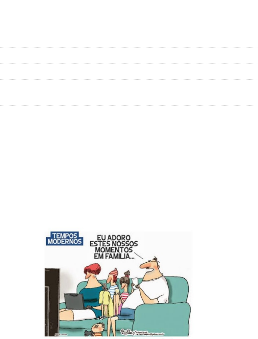 Usuário BETHANIA DE TOLEDO PAIVA Curso INTERPRETAÇÃO E PRODUÇÃO DE TEXTOS Teste ATIVIDADE TELEAULA II Iniciado 14/02/25 10:31 Enviado 14/02/25 10:32 Status Completada Resultado da tentativa 0 em 0 pontos Tempo decorrido 1 minuto Autoteste O aluno responde e o resultado do aluno não é visível ao professor. Resultados exibidos Todas as respostas, Respostas enviadas, Respostas corretas, Comentários, Perguntas respondidas incorretamente · Pergunta 1 0 em 0 pontos Fonte: 06_CS_PUBLICIDADE_PROPAGANDA.PDF. 2015, p. 17. Disponível em: http://download.inep.gov.br/educacao_superior/enade/provas/2015/06_cs_publicidade_propaganda.pdf. Para cobrar, se você executar uma leitura apenas da mensagem não verbal, sem o texto verbal, conseguirá entender o que é um momento na família, mas não a intenção do autor. Qual é a relação entre o título e a situação representada? Resposta Selecionada: d. A relação estabelecida revela que, apesar do título "tempos modernos" e da proximidade das pessoas no espaço físico, não reflete a união da família. Respostas: a. A relação estabelecida revela os benefícios dos relacionamentos a distância, ou seja, a facilidade na comunicação, a facilidade de interação familiar representada na charge. b. A relação estabelecida revela que as novas tecnologias favorecem as relações familiares, pois os internautas aprendem coisas novas o tempo todo. c. A relação estabelecida revela que as redes sociais são plataformas sociais virtuais compostas por pessoas conectadas e que dividem valores, objetivos, interesses e ideologias comuns à família. d. A relação estabelecida revela que, apesar do título "tempos modernos" e da proximidade das pessoas no espaço físico, não reflete a união da família. e. A relação estabelecida revela que, apesar da falta de proximidade no espaço físico, reflete a união da família. Comentário da resposta: Resposta: D · Pergunta 2 0 em 0 pontos De Bar Em Bar, De Mesa Em Mesa (Nome de uma música de banda regional brasileira, Aviões do forró) De bar em bar, de mesa em mesa Bebendo cachaça, tomando cerveja. De bar em bar, de mesa em mesa Bebendo cachaça, tomando cerveja. (...) Ao designar o mundo, utilizamos termos de um mesmo campo de sentido em que se relacionam a uma espécie, como propostas de sentidos. O texto produzido pressupõe uma organização discursivo-textual adequada à situação de comunicação. Desse modo, identifique qual a predominância do tipo de texto que constitui o fragmento da música: Resposta Selecionada: b. Narrativo. Respostas: a. Descritivo. b. Narrativo. c. Argumentativo. d. Enunciativo. e. Dissertativo. Comentário da resposta: Resposta: B · Pergunta 3 0 em 0 pontos Fonte: F12016QZ.PDF. 2016, p. 23. Disponível em: http://www.comvest.unicamp.br/wp-content/ uploads/2017/02/f12016QZ.pdf. Embora a fotografia seja normalmente um texto exclusivamente não verbal, encontramos aquelas em que o registro contempla também algo escrito. Nesses casos, a composição da mensagem depende da leitura conjunta dos elementos verbais e não verbais. Sendo assim, considerando o outdoor, temos um exemplo de: Resposta Selecionada: c. Metalinguagem. Respostas: a. Metáfora. b. Paráfrase. c. Metalinguagem. d. Operação. e. Causalidade. Comentário da resposta: Resposta: C · Pergunta 4 0 em 0 pontos Fonte: http://rizomas.net/images/phocagallery/charges/thumbs/phoca_thumb_l_educacao-charges-aula-virtual.jpg A comunicação mediada pelo computador traz uma nova abordagem no tratamento dos gêneros textuais discursivos, na medida em que repensa a relação entre as pessoas e suas práticas sociais. A internet, para além da revolução tecnológica, seja uma revolução dos modos sociais de interação por meio da língua. Desse modo, considerando a charge, pode-se concluir que: Resposta Selecionada: e. Como novas tecnologias são incorporadas à vida cotidiana. Respostas: a. O conhecimento da tecnologia digital está totalmente democratizado no Brasil. b. A preocupação social é fazer um planejamento para o domínio da informática. c. O apelo à inclusão digital atrai os jovens para o universo de computação. d. A dificuldade de acesso ao mundo digital torna um cidadão excluído social. e. Como novas tecnologias são incorporadas à vida cotidiana. Comentário da resposta: Resposta: E image1.png image2.gif image3.gif image4.png image5.png