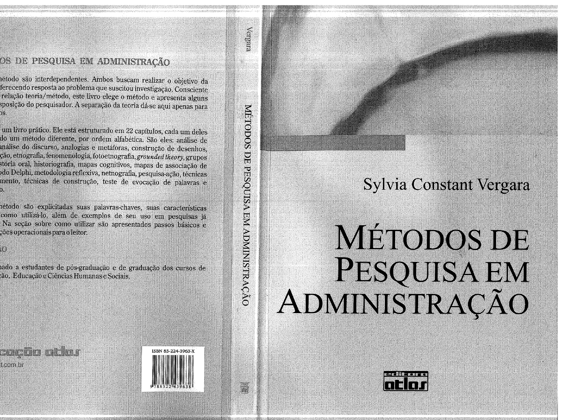DE PESQUISA EM ADMINISTRAÇÃO são interdependentes. Ambos buscam realizar o objetivo da ferecendo resposta ao problema que suscitou investigação. Consciente relação este livro elege método e apresenta alguns sposição do pesquisador. A separação da teoria dá-se aqui apenas para um livro Ele está estruturado em 22 capítulos, cada um deles do um método diferente, por ordem alfabética. São eles: análise de do discurso, analogias e metáforas, construção de desenhos, etnografia, fenomenologia, fotoetnografia, grounded theory, grupos DE oral, historiografia, mapas cognitivos, mapas de associação de do Delphi, metodologia reflexiva, netnografia, técnicas mento, técnicas de construção, teste de evocação de palavras e Sylvia Constant Vergara hétodo são explicitadas suas palavras-chaves, suas características como utilizá-lo, além de exemplos de seu uso em pesquisas já Na seção sobre como utilizar são apresentados passos básicos e EM operacionais para o leitor. MÉTODOS DE ado a estudantes de pós-graduação e de graduação dos cursos de Educação e Ciências Humanas e Sociais. PESQUISA EM ADMINISTRAÇÃO ISBN 85-224-3963-X t.com.br 9788522439638A é Métodos de Pesquisa iver- eiro em Administração ação stra- nda- GV), do RJ), High fes- de pre- gas, ani- Minas Gerais Exemplar do Professor Pedidos: F. (31)3201-6926 Fax. (31)3226-7475 AUTORIZAL ASSOCIAÇÃO BRASILEIRA DE DIREITOSylvia Constant Vergara Métodos de Pesquisa em Administração Fr Minas Gerais Exemplar do Professor Pedidos: F. (31)3201-6926 Fax. (31)3226-7475 e-mail: EDITORA ATLAS S.A. Rua Conselheiro Nébias, 1384 (Campos Elísios) 01203-904 São Paulo (SP) Tel.: (0 - 11) 3357-9144 (PABX) www.atlasnet.com.br SÃO PAULO EDITORA ATLAS S.A. - 20052004 by EDITORA ATLAS S.A. Capa: Zenário A. de Oliveira Composição: Formato Serviços de Editoração S/C Ltda. Dados Internacionais de Catalogação na Publicação (CIP) (Câmara Brasileira do Livro, SP, Brasil) Vergara, Sylvia Constant Métodos de pesquisa em administração / Sylvia Constant Vergara. - São Paulo : Atlas, 2005. Bibliografia. ISBN 85-224-3963-X 1. Administração - Pesquisa 2. Pesquisa - Metodologia I. Título. 04-7735 CDD-658.0072 Índices para catálogo sistemático: 1. Administração : Pesquisa : Projetos e relatórios 658.0072 2. Pesquisa : Projetos e relatórios : Administração 658.0072 TODOS os DIREITOS RESERVADOS - É proibida a reprodução total ou parcial, de qualquer forma ou por qualquer meio. A violação dos direitos de autor (Lei n° 9.610/98) é crime estabelecido pelo artigo 184 do Código Penal. Para Lucas, Depósito legal na Biblioteca Nacional conforme Decreto n° 1.825, de 20 de dezembro de 1907. que me transborda de amor coração. Para Ana Paula, que me vivifica a crença na competência, Impresso no Brasil/Printed in Brazil no caráter e nas relações de imensa afetividade.Sumário Apresentação, 9 1 Análise de Conteúdo, 15 2 Análise do Discurso, 25 3 Analogias e Metáforas, 37 4 Construção de Desenhos, 49 5 Desconstrução, 62 6 Etnografia, 72 7 Fenomenologia, 84 8 Fotoetnografia, 92 9 Grounded Theory, 101 10 Grupos de Foco, 111 11 História Oral, 121 12 Historiografia, 130 13 Mapas Cognitivos, 142 14 Mapas de Associação de Idéias, 157 15 Método Delphi, 1728 MÉTODOS DE PESQUISA EM ADMINISTRAÇÃO 16 Metodologia Reflexiva, 185 17 Netnografia, 195 18 203 19 Técnicas de Complemento, 217 20 Técnicas de Construção, 229 21 Teste de Evocação de Palavras, 243 22 Triangulação, 257 Uma Palavra Final, 267 Bibliografia, 269 Apresentação Houve um tempo em que teoria e método eram vistos, na prática, como independentes. Em algumas instituições, os estudantes até dispunham de um orientador para o conteúdo teórico e outro para o método de investigação, quase sempre de base positivista. Essa percepção de independência suscitava discussões sobre o que seria mais importante: a teoria ou o método? Não era raro encontrar posicionamentos pela prevalência do método, razão pela qual muitos cursos de metodologia optaram pelo ensino de métodos pontuais. A discussão, no entanto, hoje parece espúria. Teoria e método são interdependentes. Ambos buscam realizar objeti- VO da pesquisa, seja ele descrever, explicar, descobrir, compreender, predizer determinado fenômeno. A teoria pode gerar e dar forma ao método e o con- trário também é verdadeiro. Ambos se nutrem. Se o resultado que uma inves- tigação alcança confirma a teoria existente, o estudo pouco acrescenta à com- preensão já dominante de um fenômeno, embora isso também tenha o seu valor. Se o resultado redimensiona ou refuta a teoria, altera, significativamente, tal compreensão. E o método utilizado tem grande importância nesse processo. Entenda-se aqui por método a intervenção do pesquisador, sua atividade mental consciente para realizar o papel cognitivo da teoria. O método, como diz Morin (1996, p. 335), alimentado de "estratégia, iniciativa, invenção, arte", estabelece uma relação com a teoria capaz de propiciar a ambos regenerarem- se mutuamente pela organização de dados e de informações. O método tam- bém aproxima o investigador do fenômeno estudado. Como Morgan (1983, p. 21) assevera, "metodologias são esquemas de resolução de problemas que10 MÉTODOS DE PESQUISA EM ADMINISTRAÇÃO APRESENTAÇÃO 11 diminuem a distância entre a imagem sobre o fenômeno e o próprio fenôme- método podem caber outros; por isso às vezes eles estão aqui desdobrados. no". Regras e procedimentos operacionalizam a posição epistemológica do pes- Alguns têm escopo mais abrangente; são raízes. Outros têm escopo mais pon- quisador. tual; são frutos. Veja, por exemplo, que o método desconstrutivista ou a análi- se do discurso estão abrigados por um método-raiz: o reflexivo. Outro méto- Este livro, consciente embora da relação teoria/método, elege o método do-raiz é o fenomenológico, que abraça, 