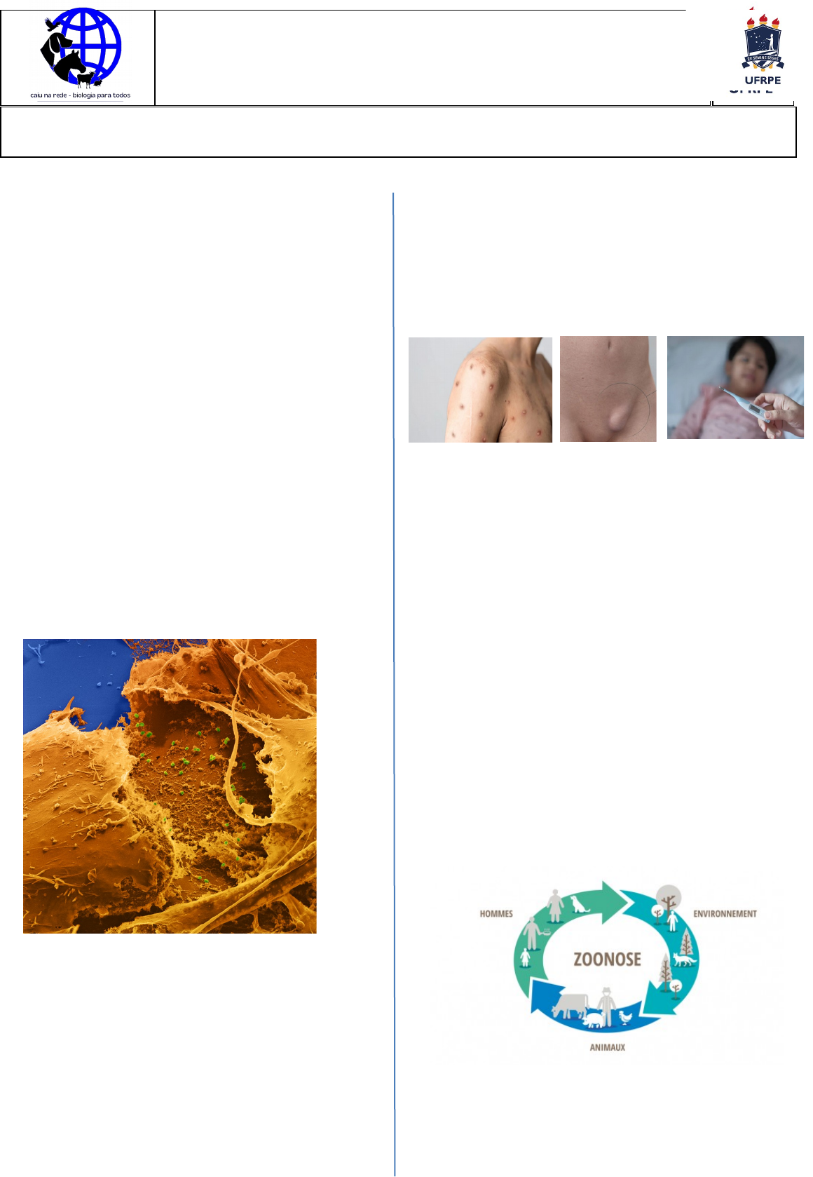 MPOX – Entenda a MPOX e saiba como se proteger Matheus Geovane Gomes de sousa MPOX – Entenda a MPOX e saiba como se proteger Matheus Geovane Gomes de sousa O que é? Mpox, anteriormente chamada de monkeypox (varíola dos macacos), é uma zoonose viral causada pelo vírus MPXV, pertencente ao gênero Orthopoxvirus e à mesma família do vírus da varíola humana e bovina, Poxviridae. A doença foi identificada em 1958 durante um surto infeccioso em macacos oriundos da África, que estavam sendo estudados por um laboratório dinamarquês. Com o aumento exponencial de casos, a OMS (Organização Mundial da Saúde) declarou, em 23 de julho de 2022, a situação como uma emergência de saúde pública de interesse internacional. Em 31 de janeiro de 2024, um total de 93.921 casos foram notificados à OMS, com 179 mortes confirmadas em 117 países. Apesar de ser transmitida por animais, cresce o entendimento de que a Mpox também pode ser considerada uma doença sexualmente transmissível. Embora ainda não exista uma vacina para esta comorbidade atenção das autoridades internacionais sobre essa doença tem crescido significativamente. Fotomicrografia de partículas do vírus MPXV(em verde) aderidas à filamentos do citoesqueleto de célula Vero. Fonte: Débora Ferreira - IOC/Fiocruz Sintomas Os sintomas são semelhantes aos da varíola, incluindo febre, dor de cabeça intensa, dores musculares, inchaço dos gânglios linfáticos (ínguas), erupções cutâneas que podem evoluir de manchas semelhantes a picadas de mosquito para pústulas, exaustão, calafrios e sintomas respiratórios. O período de incubação é de 6 a 16 dias, podendo chegar a 21 dias. Apesar de o vírus não apresentar uma alta taxa de mortalidade (1% a 10%), é necessário atenção especial para pessoas imunossuprimidas, crianças, idosos, gestantes e indivíduos com comorbidades, como diabetes, que estão entre os principais grupos de risco. Transmissão A transmissão para humanos pode ocorrer através do contato com animais silvestres infectados, através de mordidas, arranhões ou consumo de carne ou material biológico contaminado além da possibilidade de contágio entre pessoas. Apesar do nome, os primatas não humanos, também são acometidos pelo vírus, mas não são considerados reservatórios da doença. A Maioria dosanimais suscetíveis são roedores, como ratos e cães- da pradaria. A principal forma de transmissão do vírus Mpox ocorre por contato próximo com lesões, fluidos corporais, inclusive durante atividades sexuais, gotículas respiratórias de curto alcance e materiais contaminados, como lençóis, roupas de cama, brinquedos sexuais e eletrônicos. Atualmente, diversos estudos alertam para o risco de o Mpox ser rotulado como uma doença sexualmente transmissível. Diagnósticos A confirmação da infecção ocorre por meio de teste moleculares, como o PCR em tempo real, acompanhado de sequenciamento. As amostras são coletadas por meio de swabs cutâneo e oral e encaminhadas para laboratórios especializados. A notificação de casos suspeitos deve ser realizada em até 24 horas pelo Sistema de Informação de Agravos de Notificação (e-SUS Sinan), sendo obrigatória pelos serviços públicos ou privados, conforme a Lei nº 6.259, de 30 de outubro de 1975. Tratamento Embora algumas vacinas estejam em fase de testes, a mpox ainda não possui um tratamento específico. O manejo clínico envolve o alívio dos sintomas e a prevenção da transmissão da doença, por meio do cumprimento do isolamento social e da não utilização compartilhada de itens de uso pessoal.As orientações para prevenção da mpox incluem evitar contato com pessoas infectadas, higienizar superfícies e descartar resíduos contaminados de forma adequada, além de procurar imediatamente uma unidade básica de saúde (UBS) ao observar sintomas suspeitos. Embora ainda não exista uma vacina, o melhor caminho é o esclarecimento e a prevenção. Referências 1. FUNDAÇÃO OSWALDO CRUZ (Fiocruz). Monkeypox: saiba mais sobre a doença. Disponível em: . Acesso em: 26 out. 2024. 2. ORGANIZAÇÃO MUNDIAL DA SAÚDE (OMS). WHO recommends new name for monkeypox disease. Disponível em: . Acesso em: 26 out. 2024. ; 3. Paparini, S., Whelan, I., Mwendera, C., Hayes, R., Maatouk, I., Lewis, R., … Orkin, C. (2024). Prevention of sexual transmission of mpox: a systematic review and qualitative evidence synthesis of approaches. Infectious Diseases, 56(8), 589–605. https://doi.org/10.1080/23744235.2024.2364801 4. Lao-Tzu Allan-Blitz, Monica Gandhi, Paul Adamson, Ina Park, Gail Bolan, Jeffrey D Klausner, A Position Statement on Mpox as a Sexually Transmitted Disease, Clinical Infectious Diseases, Volume 76, Issue 8, 15 April 2023, Pages 1508–1512, https://doi.org/10.1093/cid/ciac960 5. BRASIL. Agência Nacional de Vigilância Sanitária. Monkeypox: informações e orientações. Disponível em: https://www.gov.br/anvisa/pt-br/assuntos/campanhas/monkeypox. Acesso em: 26 out. 2024. 6. BRASIL. Agência Nacional de Vigilância Sanitária. Nota técnica 14/2024: mpox. Disponível em: https://www.gov.br/anvisa/pt-br/assuntos/paf/alertas-epidemiologicos/nota-tecnica-14-2024-mpox/view. Acesso em: 26 out. 2024. 7. FIOCRUZ. Monkeypox. Disponível em: https://portal.fiocruz.br/monkeypox. Acesso em: 26 out. 2024. 8. IOC. Monkeypox: saiba mais sobre a doença. Disponível em: https://www.ioc.fiocruz.br/noticias/monkeypox-saiba-mais-sobre-doenca. Acesso em: 26 out. 2024. 9. DISTRITO FEDERAL. Secretaria de Saúde. Mpox. Disponível em: https://www.saude.df.gov.br/pt/web/guest/mpox. Acesso em: 26 out. 2024. image1.png image2.png image3.png image4.png image5.png image6.png image7.png