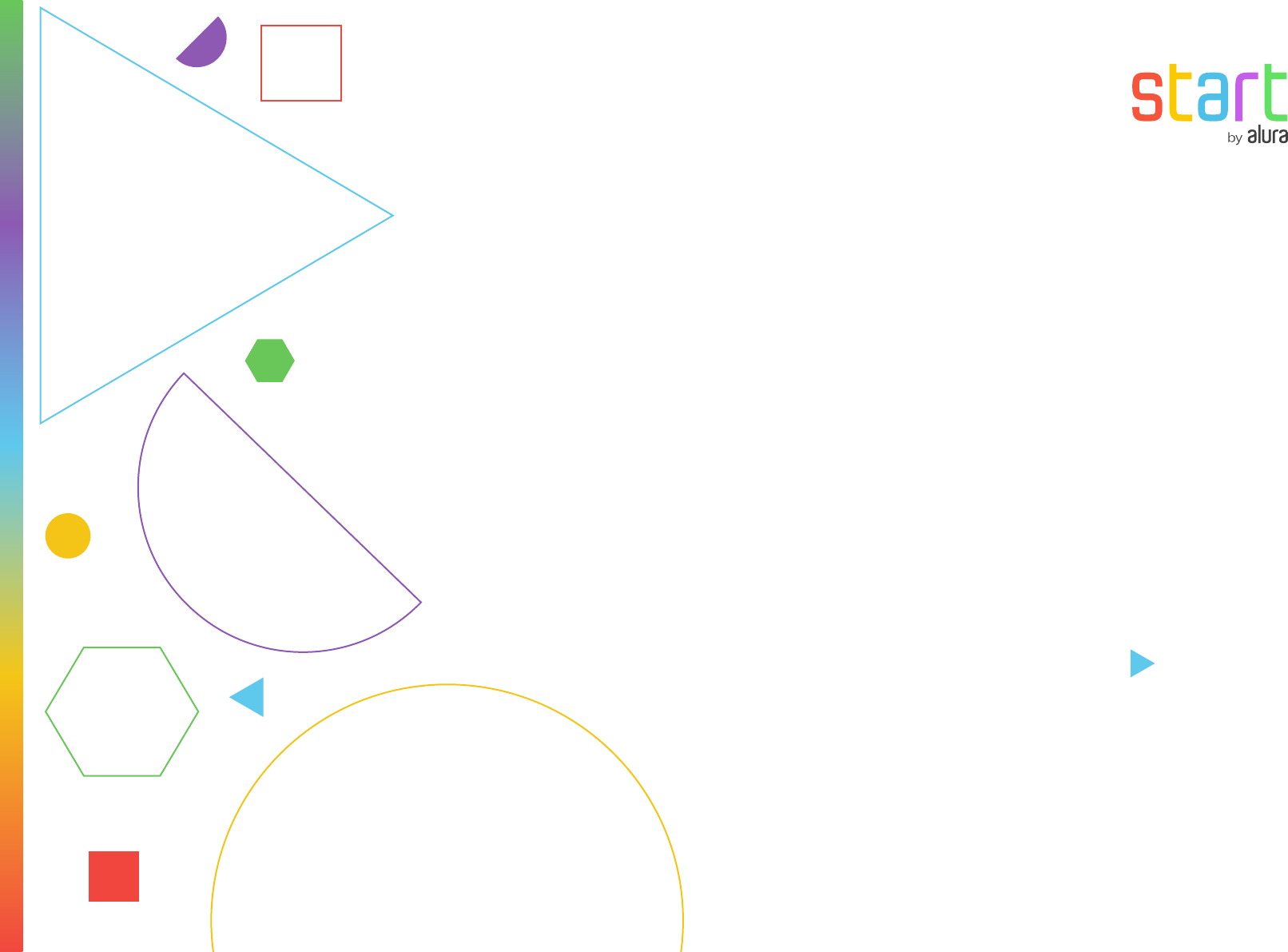 Lógica de programação: jogos, arte e criatividade Correr ou deslizar? Unidade Aula 2 2 Compreender o uso do bloco mova ( ) passos e aplicá-lo para controlar o movimento de personagens. Identificar diferenças entre os blocos de movimento. Entender a importância do critério de parada em algoritmos e sua aplicação prática. O que vamos aprender? ACOMPANHE O VÍDEO DA AULA https://cursos.alura.com.br/course/logica-de-programacao-jogos-artes-criatividade/task/164008 3 Se encostou, parou Na aula passada, criamos as personagens Casey e Frog e escolhemos um cenário divertido para o jogo de pega-pega. Nesta aula, vamos suavizar os movimentos de Frog para que acompanhem os de Casey, programar a pausa do jogo quando eles se encostarem e ajustar o tamanho das personagens para que seus movimentos fiquem mais fluidos em relação ao cenário. 4 Começaremos ajustando os movimentos do Frog para que ele siga o ritmo de Casey de forma mais suave. Para isso, selecionaremos a personagem no painel de atores, localizado no canto inferior direito da tela. Com o código na área de programação, excluiremos o bloco de movimento, arrastando-o para a esquerda da tela e soltando-o para que seja excluído, como vemos na imagem a seguir: 5 Como nosso objetivo é que o ator Frog corra atrás do ponteiro do mouse, substituiremos o bloco de movimento que excluímos por outros dois blocos da mesma seção. Temos duas opções que realizam essa função: o bloco e o bloco . Dessa forma, retornaremos à seção Movimento e arrastaremos esses blocos, encaixando-os um abaixo do outro, respectivamente, dentro da chave do bloco de eventos. Observe como o script: Agora, vamos testar clicando na bandeira verde. 6 Ao testarmos, perceberemos que o ator corre atrás da personagem principal o tempo todo. E, quando as personagens se encostam, notamos que Frog começa a chacoalhar. Precisamos definir um final para o jogo, de modo que, quando as personagens se encostarem, ele pare. 7 Para isso, precisaremos de um bloco que faça essa verificação. Assim, da seção Controle, arrastaremos o bloco , encaixando-o dentro da chave do primeiro bloco de controle, logo abaixo dos blocos de movimento. Observe: 8 Em seguida, da seção Sensores, arrastaremos o bloco e o encaixaremos na lacuna do segundo bloco de controle que acabamos de adicionar. Observe: Esse conjunto de blocos que adicionamos ao código verifica se o ator Frog encostou ou não no ponteiro do mouse. Então, quando isso acontecer, o jogo precisa parar. Para isso, retornaremos à seção Controle e arrastaremos o bloco , encaixando-o dentro do segundo bloco de controle. 9 Dessa forma, informamos que, se o Frog estiver tocando no ponteiro do mouse, o jogo para. Feito isso, teremos o seguinte script: Vamos testar novamente! 10 Ao testarmos o código, veremos que Frog está encurralando Casey. Com isso, não conseguimos movimentar os atores; precisamos de um espaço entre eles. 11 Para resolver esse bug (erro, em inglês), precisamos que o ator inicie o jogo posicionado no centro da tela. Dessa forma, ele só começará a correr atrás de Casey após o jogo começar, permitindo que a personagem principal se mova livremente. Para isso, retornaremos à seção Movimento e arrastaremos o bloco para o início do código, logo abaixo do bloco . Após posicioná-lo, ajustaremos seus valores para x:0 e y:0, para que o ator comece o jogo centralizado na tela. 12 Após realizarmos essas modificações, nosso script ficará assim: 13 Agora, ao testarmos clicando na bandeira verde, observaremos que o ator inicia a cena no centro da tela e, em seguida, começa a correr atrás da personagem principal. Se eles se encostam, o jogo para; contudo, percebemos que Frog está praticamente em cima de Casey. Observe: Para resolvermos isso, precisaremos ajustar o jogo para que ele pare assim que, Frog tocar as extremidades de Casey. 14 Para isso, clicaremos no menu suspenso do bloco e selecionaremos a opção Casey. Observe a imagem a seguir: Agora, ao clicarmos na bandeira verde, observaremos que, ao iniciarmos o movimento da personagem, não conseguiremos escapar do Frog. Precisaremos ser mais rápidos para fugir, pois se a ponta da língua do sapo tocar nas extremidades dela, o jogo para. 15 Isso acontece porque o tamanho dos atores é muito grande em relação ao cenário. Observe: Dessa forma, precisamos diminuir o tamanho das personagens para que fiquem proporcionais ao tamanho do cenário. 16 Para isso, retornaremos ao painel de atores e, na parte superior, com o ator selecionado, identificaremos o campo Tamanho que, por padrão, está definido como 100. Alteraremos esse valor para 50 em ambos os atores, deixando-os menores em relação ao cenário. Observe a sequência de imagens: Também podemos configurar o código para realizar essa alteração automaticamente. 17 Para isso, no código da personagem Casey, adicionaremos um bloco que execute as mesmas alterações feitas manualmente, mas agora dentro do código. Na área de código, da seção Aparência, arrastaremos o bloco e o encaixaremos entre os blocos de eventos e de controle, para evitar que essa ação se repita. Após encaixá-lo, alteraremos seu valor para 75%. Observe como ficará o código: 18 Feito isso, ao clicarmos na bandeira verde, Casey aumentará ligeiramente de tamanho, passando de 50% para 75%. Observe: Até o momento, nosso projeto está muito divertido. Agora, precisamos pensar em como deixar o sapo mais rápido, mas esse é um assunto para a próxima aula! Desafio 19 Nesta aula, usamos diferentes blocos de movimentos e aplicamos esses blocos para controlar o movimento das personagens. Identificamos as diferenças entre os blocos e entendemos a importância do critério de parada em algoritmos e sua aplicação na prática. Agora, seu desafio é resgatar a terceira personagem criada no desafio da aula passada. Programe o jogo para parar não apenas quando o Frog encostar na personagem principal, mas também