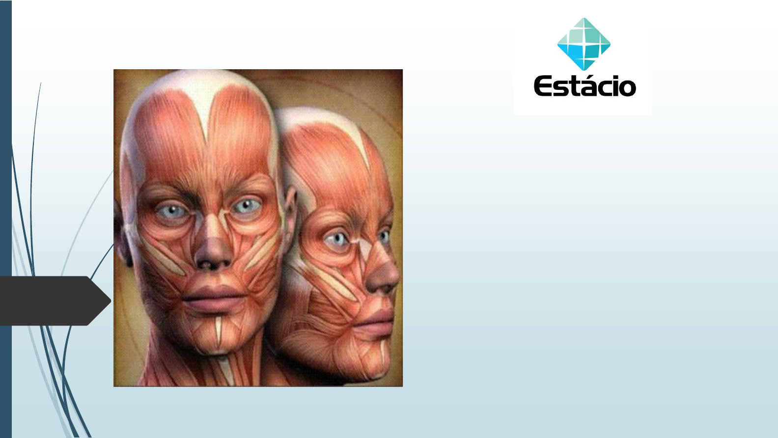Anatomia do Aparelho Locomotor Unidade 01: Cabeça e Pescoço Objetivos Identificar os músculos da face e conhecer suas ações e inervação principal; Identificar as os músculos da mastigação e conhecer suas ações e inervação principal; Identificar os músculos do pescoço Cabeça e Pescoço Miologia Funções: • Movimento • Produção de Calor • Postura e sustentação do corpo Cabeça e Pescoço Tipos de Tecido Muscular: • Liso • Esquelético • Cardíaco Cabeça e Pescoço Propriedades: • Excitabilidade • Contratilidade • Extensibilidade • Elasticidade Cabeça e Pescoço Componentes anatômicos dos músculos • Tendão: é composto de tecido conjuntivo denso e liga o músculo ao periósteo de um osso. • Ventre (gastro) Muscular: porção carnosa e média do músculo. • Aponeurose: são tendões achatados semelhantes a lâminas. A fixação óssea mais móvel do músculo, conhecida como inserção, é puxada em direção de sua fixação menos móvel, a origem. Cabeça e Pescoço MÚSCULOS DA FACE • Frontal • Corrugador do Supercílio • Nasal • Orbicular do Olho • Orbicular da Boca • Levantador do Lábio Superior • Levantador do Lábio Superior e da Asa do Nariz • Zigomático Maior • Zigomático Menor • Bucinador • Mentual • Prócero • Levantador do Ângulo da Boca • Risório • Abaixador do Lábio Inferior • Abaixador do Ângulo da boca Cabeça e Pescoço FRONTAL • Origem: aponeurose epicrânica • Inserção: fibras médias do orbicular do olho e prócero • Ação: enruga a fronte e eleva os supercílios • Indica surpresa ou curiosidade Cabeça e Pescoço PRÓCERO • Origem: parte inferior do osso nasal e parte superior da cartilagem nasal • Inserção: parte inferior da testa entre os supercílios • Ação: traciona a pele do nariz para cima, formando rugas transversais sobre a ponta do nariz Cabeça e Pescoço NASAL • Origem: maxila, acima e lateralmente à fossa incisiva • Inserção: aponeurose do nariz • Ação: deprime a parte cartilaginosa do nariz e dilata os orifícios da narina Cabeça e Pescoço ORBICULAR DO OLHO • Origem: Margem orbital medial; osso lacrimal • Inserção: Pele ao redor da margem da órbita; lâminas tarsais superiores e inferiores • Ação: fecha as pálpebras (firmemente ou delicadamente) Cabeça e Pescoço ORBICULAR DA BOCA • Origem: fáscias circundando o orifício da boca • Inserção: mucosa dos lábios • Ação: fecha e enruga os lábios (assobiar) • Beijar, assobiar Cabeça e Pescoço LEVANTADOR DO LÁBIO SUPERIOR • Origem: margem inferior da órbita • Inserção: orbicular da boca e pele acima do lábio • Ação: eleva o lábio superior Cabeça e Pescoço LEVANTADOR DO LÁBIO SUPERIOR E DA ASA DO NARIZ • Origem: processo frontal da maxila • Inserção: orbicular da boca • Ação: eleva o lábio superior e dilata as cavidades nasais (mostra a gengiva) Cabeça e Pescoço ZIGOMÁTICO MAIOR • Origem: face lateral do osso zigomático • Inserção: ângulo da boca • Ação: puxa o ângulo da boca para cima e para trás (riso) Cabeça e Pescoço ZIGOMÁTICO MENOR • Origem: face anterior do osso zigomático • Inserção: pele lábio superior • Ação: puxa o lábio superior para cima e para fora • Unilateralmente - zombar Cabeça e Pescoço BUCINADOR • Origem: processos alveolares da maxila e mandíbula • Inserção: ângulo da boca, fundindo–se com orbicular da boca • Ação: Pressiona a bochecha contra os dentes, resiste à distensão ao soprar Cabeça e Pescoço MENTUAL • Origem: corpo da mandíbula • Inserção: tegumento do mento (pele do queixo) • Ação: protrusão do lábio inferior e eleva a pele do mento • Dúvida, desdenho Cabeça e Pescoço RISÓRIO • Origem: masseter • Inserção: pele do ângulo da boca • Ação: traciona o ângulo da boca para cima e para fora Cabeça e Pescoço ABAIXADOR DO LÁBIO INFERIOR • Origem: linha oblíqua da mandíbula • Inserção: pele do lábio inferior • Ação: traciona o lábio inferior para baixo • “Fazer beicinho”, tristeza Cabeça e Pescoço ABAIXADOR DO ÂNGULO DA BOCA • Origem: mandíbula, abaixo do ângulo da boca • Inserção: ângulo da boca • Ação: ato de tracionar para baixo os ângulos da boca • Tristeza Cabeça e Pescoço Paralisia dos músculos faciais A LESÃO DO NERVO FACIAL OU DE SEUS RAMOS CAUSA PARALISIA DE ALGUNS OU TODOS OS MÚSCULO FACIAIS NO LADO AFETADO, CONHECIDA COMO PARALISIA DE BELL. HÁ FLACIDEZ DA ÁREA AFETADA E DISTORÇÃO DA EXPRESSÃO FACIAL, QUE PARECE PACIVA OU TRISTE. Cabeça e Pescoço ACIDENTE VASCULAR CEREBRAL Sintomas de AVC: • Diminuição ou perda súbita da força na face, braço ou perna de um lado do corpo • Alteração súbita da sensibilidade com sensação de formigamento na face, braço ou perna de um lado do corpo • Perda súbita de visão num olho ou nos dois olhos • Alteração aguda da fala, incluindo dificuldade para articular, expressar ou para compreender a linguagem Cabeça e Pescoço MÚSCULOS DA MASTIGAÇÃO • Masseter • Temporal Cabeça e Pescoço MASSETER • Origem: arco zigomático • Inserção: parte lateral do ramo da mandíbula • Ação: eleva a mandíbula, fechando a boca Cabeça e Pescoço TEMPORAL • Origem: fossa temporal • Inserção: processo coronóide da mandíbula • Ação: eleva a mandíbula, fechando a boca Cabeça e Pescoço MÚSCULOS DO PESCOÇO • Supra-Hióides • Infra-Hióides • ECM • Escalenos Cabeça e Pescoço SUPRA-HIÓIDES • Digástrico: eleva o osso hióide e auxilia na abertura da boca • Milo-hioideo: forma o soalho da boca, eleva o osso hióide e a língua – ativo na mastigação, deglutição, sucção e no sopro • Estilo- hioideo: levanta e retrai a língua Cabeça e Pescoço INFRA-HIÓIDES • Esterno-hioideo: traciona o osso hióide para baixo • Esternotiróideo: traciona caudalmente a cartilagem tireóide • Omo-