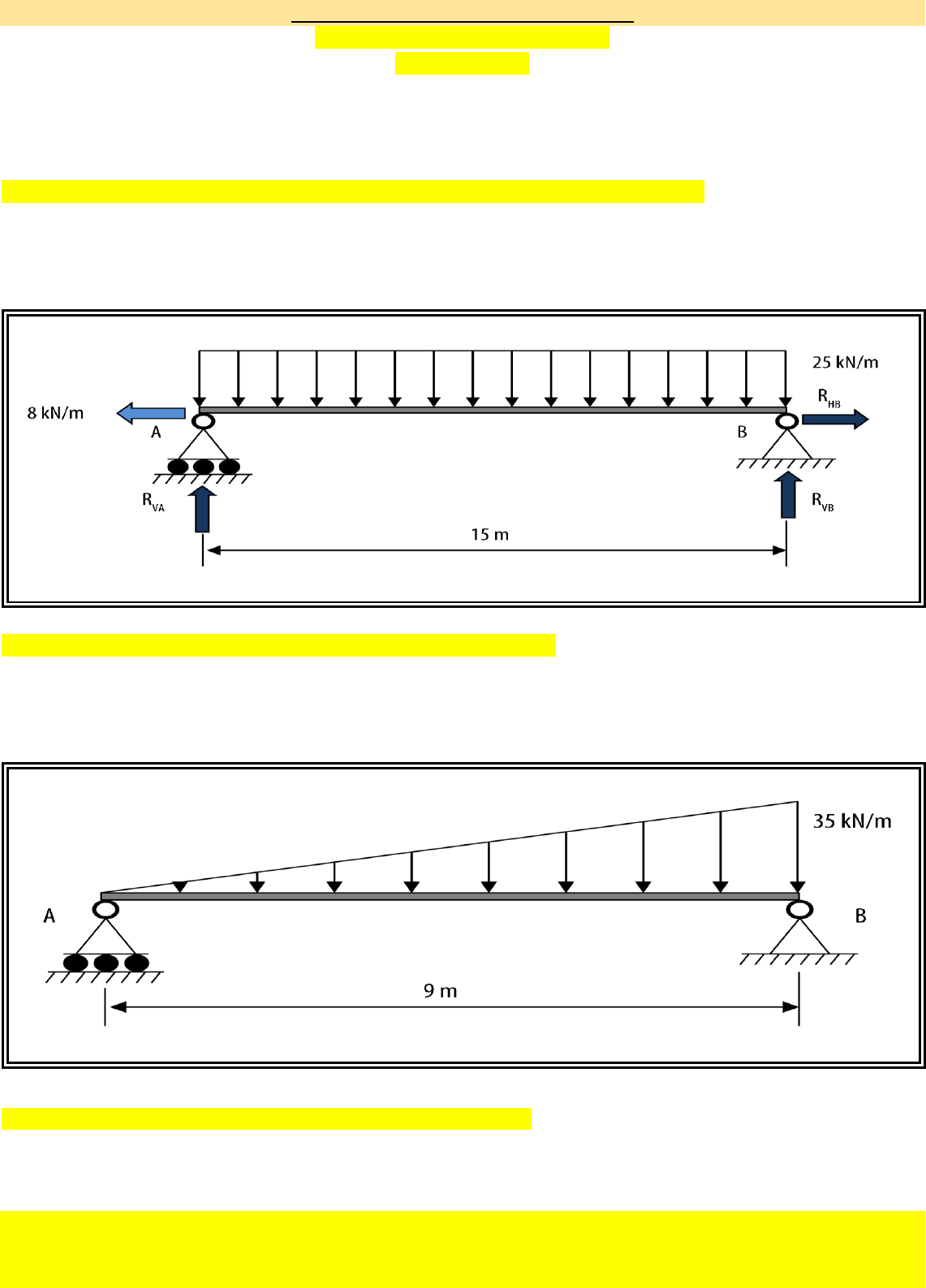 “Atividade de Sistematização – Unidade I” RESISTÊNCIA DOS MATERIAIS ENGENHARIA 1. Supondo que haja uma superfície plana horizontal e sobre esta superfície exista uma viga com apoio de sustentação em suas extremidades. Um dos apoios é fixo e o outro apoio é sobre roletes. A viga recebe forças externas horizontais e verticais. Sobre seus apoios, é falso afirmar que: Resposta correta: O apoio fixo é capaz de oferecer reação às forças verticais somente. 2. Considerando a barra abaixo, submetida a uma carga vertical uniformemente distribuída de 25 kN/m e uma carga horizontal concentrada de 8 kN, as reações nos seus apoios são: Resposta correta: RVA = 187,5 kN; RHB = 8 kN; RVB = 187,5 kN. 3. Considerando a barra abaixo, submetida a uma carga vertical uniformemente variável de 35 kN/m, as reações nos seus apoios são: Resposta correta: RVA = 52,5 kN; RHB = 0 kN; RVB = 105 kN. 4. Uma peça ou uma estrutura está sujeita a várias solicitações e esforços durante seu uso. Por isso, cada componente precisa ser projetado para suportar as solicitações de uso. Considerando esta afirmação, assinale a alternativa falsa: Resposta correta: O coeficiente de segurança deve ser aplicado a um componente durante o seu projeto e serve para garantir que o componente ou estrutura irá suportar somente as solicitações de tração e compressão durante seu funcionamento