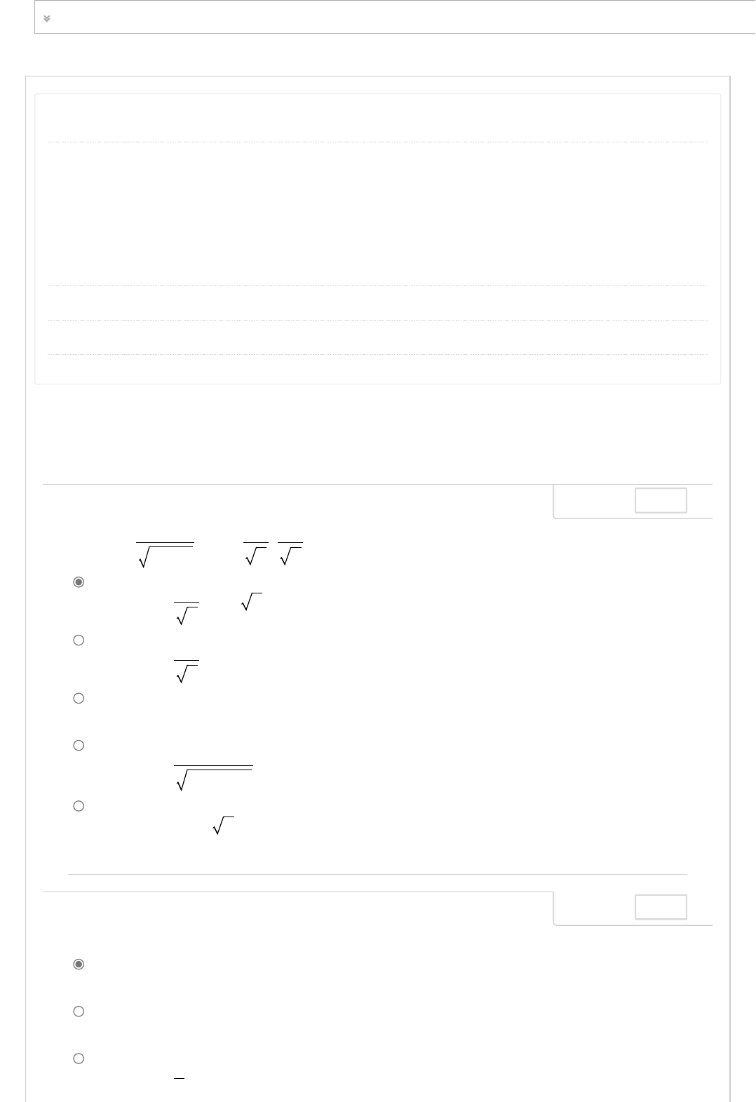 Fazer teste: Semana 6 - Atividade Avaliativa Informações do teste Descrição Instruções Olá, estudante! 1. Para responder a esta atividade, selecione a(s) alternativa(s) que você considerar correta(s); 2. Após selecionar a resposta correta em todas as questões, vá até o fim da página e pressione “Enviar teste”. 3. A cada tentativa, você receberá um novo conjunto de questões diferentes para que você responda e tente alcançar melhores resultados. Pronto! Sua atividade já está registrada no AVA. Várias tentativas Este teste permite 3 tentativas. Esta é a tentativa número 1. Forçar conclusão Este teste pode ser salvo e retomado posteriormente. Suas respostas foram salvas automaticamente. Seja f (x ) = 1 1− 2x 2 ,x ∈ ⎡ ⎢ ⎣ ⎤ ⎥ ⎦ − 1 2 , 1 2 . Determine a integral indefinida de f (x ) . a. ∫ f (x ) dx = 1 2 arcsin( 2x ) + c b. ∫ f (x ) dx = 1 2 arcsin(x ) + c c. ∫ f (x ) dx = arcsin( 2x ) + c d. ∫ f (x ) dx = 2x ( )1− 2x 2 3 + c e. ∫ f (x ) dx = arcsin( 2x ) + c PERGUNTA 1 1,25 pontos Salva Seja f (x ) =x 2cos(x ) . Determine a integral indefinida de f (x ) . a. ∫ f (x ) dx = ( )x 2− 2 sin (x ) + 2xcos(x ) + c b. ∫ f (x ) dx = 2xcos(x ) − x 2sin (x ) + c c. ∫ f (x ) dx = 1 3 x 3sin (x ) + c PERGUNTA 2 1,25 pontos Salva Estado de Conclusão da Pergunta: d. ∫ f (x ) dx = − 2xsin (x ) + c e. ∫ f (x ) dx = ( )2− x 2 sin (x ) + 2xcos(x ) + c Seja f (x ) = sin (x ) 2− cos(x ) Determine a integral indefinida de f (x ) . a. ∫ f (x ) dx = 2 2− cos(x ) + c b. ∫ f (x ) dx = 2cot(x ) 2− cos(x ) + c c. ∫ f (x ) dx = sin2(x ) 4− 2cos(x ) + c d. ∫ f (x ) dx = − 2 2− cos(x ) + c e. ∫ f (x ) dx = sin (x ) 2− cos(x ) + c PERGUNTA 3 1,25 pontos Salva Frações parciais é uma técnica usada para simplificar e decompor uma função racional, que é uma razão de dois polinômios, em uma soma de frações mais simples. A ideia por trás das frações parciais é expressar uma fração com um denominador que pode ser fatorado em fatores mais simples, como uma soma de frações, cada uma com um denominador mais simples. Para fazer isso, começamos fatorando o denominador da função racional em fatores irredutíveis. Então, para cada fator, escrevemos uma fração parcial com um numerador de grau menor que o denominador. A forma da fração parcial depende do grau do fator no denominador. Essa técnica pode ser útil para integrar frações racionais, uma vez que obtemos uma soma de funções mais simples. Utilizando as frações parciais encontre ∫ 1 x 2− 16 dx . a. ⎛ ⎜ ⎜ ⎜ ⎜ ⎝ ⎞ ⎟ ⎟ ⎟ ⎟ ⎠ 1 x 2− 16 − 3 2 + C b. ln(x 2− 16) 2x + C c. ln( 4− x ) − ln(x + 4) + C d. 1 8 ( ln(x 2− 16) − ln( 16− x 2) ) + C e 1 PERGUNTA 4 1,25 pontos Salva e. 1 8 ( ln( 4− x ) − ln(x + 4) ) + C Em alguns casos, temos que calcular a integral de funções compostas, como y = sen (x ² ) , onde temos a mistura da função f (x ) = sen x e g (x ) =x ² , que ao descrever a função f °g = f ( g (x ) ) = sen (x ² ) . Há outros casos onde temos uma função dentro da outra, a questão é como calcular a primitiva para esse tipo de função. Após análise do problema apresentado, avalie as asserções a seguir e a relação proposta entre elas. I. Para calcular a integral de cosseno 1 3 é necessário fazer a mudança de variável u = X 3 e substituir dx por du . PORQUE II. Ao mudar a variável da função, é necessário mudar toda a representação da integral, pois assim,facilita a aplicação das regras de primitivação e o cálculo da integral. a. as duas asserções são verdadeiras, e a segunda justifica a primeira. b. as duas asserções são verdadeiras, e a segunda não justifica a primeira. c. as duas asserções são falsas. d. a primeira asserção é falsa, e a segunda é verdadeira. e. a primeira asserção é verdadeira, e a segunda é falsa. PERGUNTA 5 1,25 pontos Salva A integração é uma ferramenta poderosa em matemática e usada em muitos campos, como física, engenharia, economia e estatística. Tem aplicações no cálculo de distâncias, nos volumes, no trabalho realizado e nas distribuições de probabilidade, entre outros. O processo de integração envolve encontrar uma função F(x) tal que F′(x) = f(x), em que F′(x) é a derivada de F(x). Isso é feito usando técnicas de integração, como substituição, integração por partes ou frações parciais. Com base no texto, assinale a alternativa que apresenta ∫sec (x ) tg (x ) dx . a. sec (x )+C b. sen (x )+C c. cotg (x )+C d.cos2(x ) cotg (x )+C e. tg2(x )+C PERGUNTA 6 1,25 pontos Salva PERGUNTA 7 1,25 pontos Salva Clique em Salvar e Enviar para salvar e enviar. Clique em Salvar todas as respostas para salvar todas as respostas. Sejam f (x ) e g (x ) funções deriváveis tais que o produto f (x ) g ' (x ) é integrável. Com respeito a integral indefinida desse produto f (x ) g ' (x ) , é correto afirmar que: a. ∫ f (x ) g ′(x ) dx = f ′(x ) g ′(x ) − ∫ f ′(x ) g (x ) dx b. Nenhuma das outras alternativas. c. ∫ f (x ) g ′(x ) dx = f (x ) g (x ) + ∫ f ′(x ) g (x ) dx d. ∫ f (x ) g ′(x ) dx = f (x ) g (x ) − ∫ f ′(x ) g (x ) dx e. ∫ f (x ) g ′(x ) dx = g (x ) ∫ f (x ) dx Aplicamos os conceitos relacionados às primitivas imediatas para resolver as integrais de funções compostas. Lembrando que funções compostas são aquelas em que uma função está dentro da outra. Por isso, é fundamental dominar as técnicas de primitivação e aprofundar os estudos realizando muitos exercícios. Considerando as informações apresentadas e o seu conhecimento sobre as técnicas de primitivação, identifique se são (V) verdadeiras ou (F) falsas as afirmativas a seguir. I. ( ) ∫ 1 x dx = ln x + k II. ( ) ∫ cos x dx = − sen x + k III. ( ) ∫ sen x dx = cos x + k a. F - V - F. b. V - V - V. c. V - F - F d. F - V - V. e. V - F - V. PERGUNTA 8 1,25 pontos Salva Salvar todas as res