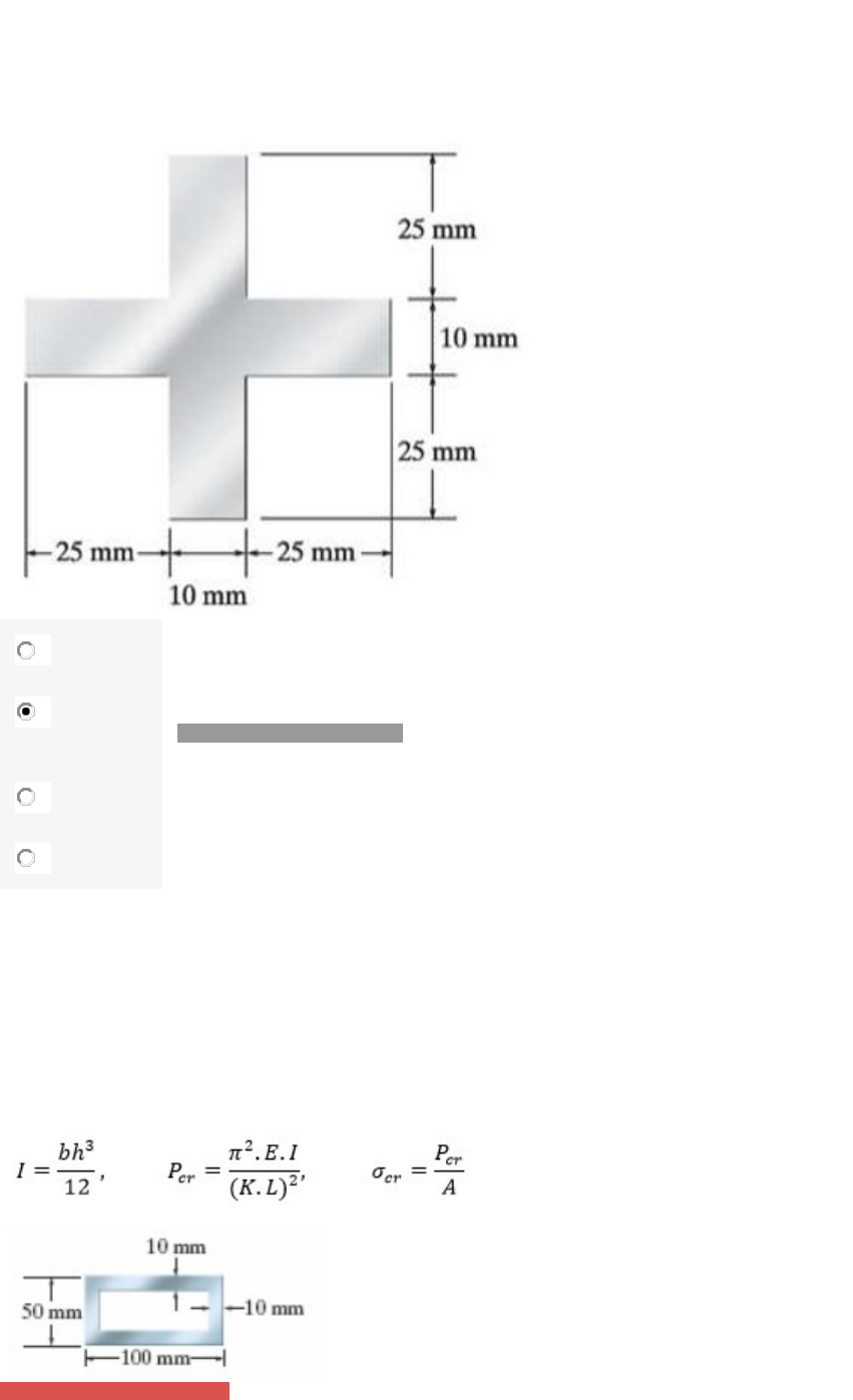 Questão 1/10 - Resistência dos Materiais Ler em voz alta Uma coluna de aço A-36 tem comprimento de 4 m e está presa por pinos em ambas extremidades. Se a área da seção transversal tiver as dimensões mostrada na figura, determine a carga crítica de flambagem. A Pcr = 27,8 kN B Pcr = 22,7 kN Você assinalou essa alternativa (B) C Pcr = 32,6 kN D Pcr = 18,1 kN Questão 2/10 - Resistência dos Materiais Ler em voz alta Uma coluna de aço A-36 tem comprimento de 5 m e está engastada em ambas as extremidades. Se a área da seção transversal tiver as dimensões mostradas na figura, determine a carga crítica de flambagem. A fórmula de Euler é válida? Dados: Eaço = 200 GPa; K = 0,5; tensão de escoamento = 250 MPa. Você não pontuou essa questão A Pcr = 136,05 kN. Sim B Pcr = 136,05 kN. Não C Pcr = 272,1 kN. Sim D Pcr = 272,1 kN. Não Você assinalou essa alternativa (D) Questão 3/10 - Resistência dos Materiais Ler em voz alta A barra de aço A-36 (E = 200 GPa) AB tem seção transversal quadrada. Supondo que esteja acoplada por pino nas extremidades, determinar a carga máxima admissível P que pode ser aplicada à estrutura. Usar fator de segurança 2 em relação à flambagem. A P = 40,286 kN B P = 51,951 kN C P = 30,391 kN Você assinalou essa alternativa (C) D P = 37,658 kN Questão 4/10 - Resistência dos Materiais Ler em voz alta Para o a liga de alumínio 1000-HI-4 que tem E = 70 GPa e tensão de escoamento de 55 MPa. Determine seu módulo de resiliência. A 712 kJ/m³ B 21,607 kJ/m³ Você assinalou essa alternativa (B) C 160,325 kJ/m³ D 39,286 kJ/m³ Questão 5/10 - Resistência dos Materiais Ler em voz alta Usando E=200GPa. Determine a energia de deformação na barra de aço ABC quando P=35,6 kN. A 17,014 J B 5,65 J C 11,723 J D 19,835 J Você assinalou essa alternativa (D) Questão 6/10 - Resistência dos Materiais Ler em voz alta A barra de aço AC da estrutura está acoplada por pino nas duas extremidades. Determine o fator de segurança em relação à flambagem em torno do eixo y-y devido à carga aplicada de 15 kN. Considere Eaço = 200 GPa e a tensão de escoamento do aço de 360 MPa. A FS = 2,56 B FS = 1,53 C FS = 1,24 Você assinalou essa alternativa (C) D FS = 1,88 Questão 7/10 - Resistência dos Materiais Ler em voz alta Uma coluna de aço tem comprimento de 9 m e está engastada em ambas as extremidades. Se a área da seção transversal tiver as dimensões mostradas na figura, determine a carga crítica. A fórmula de Euler é válida? Dados: Eaço = 200 GPa, tensão de escoamento = 250 MPa e K=0,5. A 750 kN, não B 700 kN, sim C 1200 kN, não D 1301 kN, sim Você assinalou essa alternativa (D) Questão 8/10 - Resistência dos Materiais Ler em voz alta Observe a viga e o carregamento mostrados. Use E=200GPa e I=13,4.10-6 m4. Determine a inclinação na extremidade A e a deflexão no ponto C para a viga mostrada. A Inclinação no ponto A é -0,0006814 rad e a deflexão no ponto C é -0,00570 m B Inclinação no ponto A é -0,007483 rad e a deflexão no ponto C é -0,005349 m Você assinalou essa alternativa (B) C Inclinação no ponto A é -0,00258 rad e a deflexão no ponto C é -0,00570 m D Inclinação no ponto A é -0,006814 rad e a deflexão no ponto C é -0,0005349 m Questão 9/10 - Resistência dos Materiais Ler em voz alta A figura abaixo mostra um diagrama tensão-número de ciclos, conhecido como diagrama S-N. Usando seus conhecimentos sobre falha de materiais devido à fadiga, assinale a alternativa CORRETA. A Suportar uma carga por muito tempo pode levar à deformação permanente e posterior falha por fadiga B Quando peças sujeitas a carregamentos cíclicos falham por fadiga, a ruptura ocorre a uma tensão menor do que a de escoamento do material Você assinalou essa alternativa (B) C O limite de tensão à fadiga é um valor bem definido para todos os materiais D O valor do limite à fadiga é determinado em um diagrama S-N como a mínima tensão a que o elemento pode resistir quando submetido a um determinado número de ciclos de carregamento Questão 10/10 - Resistência dos Materiais Ler em voz alta Duas barras circulares maciças estão conectadas em B e tem o módulo de elasticidade 200 GPa. Se a carga axial for de 50 kN determine a energia de deformação para o conjunto. A 3,18 Nm B 1,59 Nm C 7,58 Nm D 4,77 Nm Você assinalou essa alternativa (D) Questão 1/10 - Resistência dos Materiais Ler em voz alta A barra de aço A-36 (E = 200 GPa) AB tem seção transversal quadrada. Supondo que esteja acoplada por pino nas extremidades, determinar a carga máxima admissível P que pode ser aplicada à estrutura. Usar fator de segurança 2 em relação à flambagem. A P = 40,286 kN B P = 51,951 kN C P = 30,391 kN Você assinalou essa alternativa (C) D P = 37,658 kN Questão 2/10 - Resistência dos Materiais Ler em voz alta A figura abaixo mostra um diagrama tensão-número de ciclos, conhecido como diagrama S-N. Usando seus conhecimentos sobre falha de materiais devido à fadiga, assinale a alternativa CORRETA. A Suportar uma carga por muito tempo pode levar à deformação permanente e posterior falha por fadiga B Quando peças sujeitas a carregamentos cíclicos falham por fadiga, a ruptura ocorre a uma tensão menor do que a de escoamento do material Você assinalou essa alternativa (B) C O limite de tensão à fadiga é um valor bem definido para todos os materiais D O valor do limite à fadiga é determinado em um diagrama S-N como a mínima tensão a que o elemento pode resistir quando submetido a um determinado número de ciclos de carregamento Questão 3/10 - Resistência dos Materiais Ler em voz alta A linha elástica nada mais é do que o diagrama de deflexão de um elemento, essa deflexão é no centroide das seções transversais do elemento. Essa deformação, que pode ser vista em alguns exemplos na Figura 1, vai depender de alguns fatores, com reações de apoio e carregamento. Se o material for homogêneo e estiver na fa