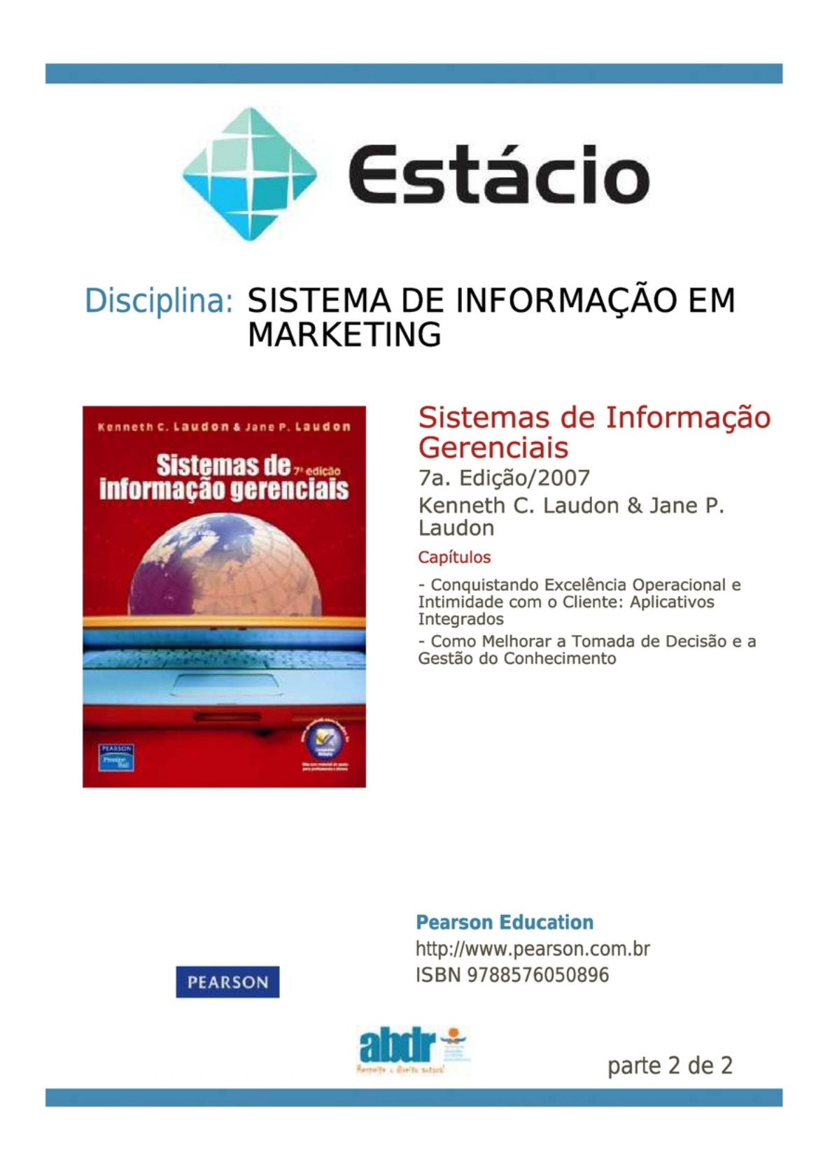 Estácio Disciplina: SISTEMA DE INFORMAÇÃO EM MARKETING Kenneth Laudon & Jane P. Laudon Sistemas de Informação Gerenciais Sistemas de edição informação gerenciais 7a. Kenneth C. Laudon & Jane P. Laudon Capítulos - Conquistando Excelência Operacional e Intimidade com o Cliente: Aplicativos Integrados - Como Melhorar a Tomada de Decisão e a Gestão do Conhecimento PEARSON Pearson Education http://www.pearson.com.br PEARSON ISBN 9788576050896 abdr parte 2 de 2DO PROFESSOR 0 Capítulo Conquistando excelência operacional e intimidade com cliente: aplicativos 8 integrados OBJETIVOS DE ESTUDO Ao terminar este capítulo, você será capaz de: 1. Demonstrar como os sistemas integrados ajudam a conquistar a excelência operacional, ao integrar e coordenar diversas funções e processos de negócios da empresa. 2. Demonstrar como os sistemas de gerenciamento da cadeia de suprimento coordenam o planejamento, a produção e a logística com os fornecedores. 3. Demonstrar como os sistemas de gerenciamento do relacionamento com o cliente conquistam a intimidade com cliente ao integrar todas as informações do cliente e torná-las disponíveis para todos na empresa. 4. Avaliar os desafios e novas oportunidades trazidos pelas aplicações integradas. 240 Sistemas de Informação Gerencials Kenneth C. Laudon & Jane P. LaudonPLANO DO CAPÍTULO Caso de abertura A Whirlpool conserta sua cadeia de suprimentos 8.1 Sistemas integrados 8.2 Sistemas de gerenciamento da cadeia de suprimentos 8.3 Sistemas de gerenciamento do relacionamento com o cliente 8.4 Aplicações integradas: novas oportunidades e desafios Estudo de caso: resolvendo problemas organizacionais - o dilema da cadeia de suprimentos da Philip Morris International A WHIRLPOOL CONSERTA SUA CADEIA DE SUPRIMENTOS A Whirlpool, com sede em Benton Harbor, Michigan, é o fabri- cante de eletrodomésticos número um dos Estados Unidos, produzindo lavadoras, seca- doras, geladeiras, fogões e muitos outros produtos sob marcas como Whirlpool, Kitchen Aid, Roper e Speed Queen. Com aproximadamente 50 centros de fabricação e pesquisa em todo o mundo, a Whirlpool mantém 68 mil funcionários. A empresa cresceu tanto devido a aquisições e à expansão geográfica que seus velhos sistemas de gerenciamento da cadeia de suprimentos chegaram ao limite. Em 2000, o de cadeia de suprimentos da Whirlpool se tornou o que os ven- dedores chamavam de 'dificultador de vendas'. Embora o estoque de bens acabados fosse altíssimo, a porcentagem de vezes que os produtos estavam disponíveis quando os clientes precisavam deles era 87 por cento uma taxa inaceitavelmente baixa. A equipe dizia com sarcasmo que, das quatro principais fabricantes de eletrodomésticos norte-americanas, a Whirlpool ficava em quinto lugar em termos de desempenho. Naquela época, os sistemas que a Whirlpool usava para gerenciar sua cadeia de supri- mentos na América do Norte consistiam em antiquados sistemas feitos sob medida para pro- gramação da produção e planejamento da distribuição; um software de previsão de demanda da i2 Technologies que havia sido instalado em 1997; e o software de planejamento de recursos empresariais (ERP) R3, da SAP, para contabilidade e processamento de pedidos. Além de ultrapassados, os sistemas desenvolvidos internamente não estavam bem integrados nem ao sistema ERP, nem entre si mesmos. Tampouco estavam integrados aos sistemas dos principais fornecedores de peças e matérias-primas, muito menos aos sistemas dos clientes de atacado. Em os sistemas de gerenciamento de cadeia de suprimentos da Whirlpool eram imprecisos, e só conseguiam equilibrar prioridades e limitações por meio de lentos e incômodos procedimentos manuais. Em 2001, a Whirlpool deu início a uma remodelação completa de seus sistemas de cadeia de suprimentos em âmbito mundial. As empresas industriais normalmente pensam em suas cadeias de suprimentos como algo que se origina nos fornecedores. A administra- ção da Whirlpool decidiu, contudo, que sua solução de cadeia de suprimentos deveria focar atendimento ao cliente. Uma solução de primeira classe, capaz de superar o desempenho dos melhores concorrentes em todos os aspectos, custaria 85 milhões de dólares um preço alto demais. Os administradores optaram, então, por soluções alternativas por meio das quais a empresa poderia equiparar e em alguns pontos superar a concorrência a 241 de Gerencials Laudon242 Parte III: Principais aplicações de sistemas para a era digital um custo mínimo. A Whirlpool implantou um sistema de planejamento e programação prévia (advanced planning and scheduling APS) que incluía uma de software de otimização e integração de cadeia de suprimentos da i2 Technologies. Essas ferramentas consistiam em um Planejador de Cadeia de Suprimentos para Programação Mestre, Planejamento de Distribuição e Planejamento de Estoque. Esses três módulos foram implantados em três fases entre 2001 e 2002. Em 2002, a Whirlpool instalou um sistema colaborativo de planejamento, previsão e reposição (Collaborative Planning, Forecasting and Replenishment CPFR), uma ferramenta baseada na Web para compartilhar e combi- nar as previsões de vendas da Whirlpool e seus principais parceiros de vendas Sears, Roebuck and Co., Lowe's e Best Buy. Antes mesmo de estar finalizado, o projeto de cadeia de suprimentos da Whirlpool já havia produzido melhorias impressionantes no atendimento ao cliente e reduzido os custos de cadeia de suprimentos. o APS aumentou a dis- ponibilidade na América do Norte para 97 por cento e, ao mesmo tempo, reduziu os estoques de produtos acabados em mais de 20 por cento, assim como os custos de frete e armazém em 5 por cento. o CPFR, por sua vez, cortou pela metade o número de erros de previsão. Fontes: Gary H. Anthes, "Supply chain Computerworld, 06 jun. 2005, www.whirlpool.com acessado em 08 jun. 2005; e Reuben E. Slone, "Leading a supply chain Harvard Business Review, out. 20