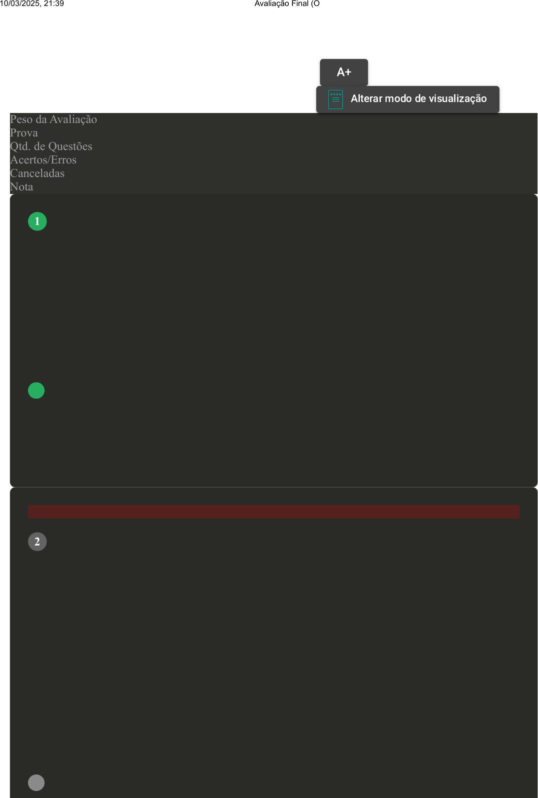 Prova Impressa GABARITO | Avaliação Final (Objetiva) - Individual (Cod.:986945) Peso da Avaliação 4,00 Prova 88517309 Qtd. de Questões 10 Acertos/Erros 8/1 Canceladas 1 Nota 9,00 [Laboratório Virtual — Manutenção de Máquinas Agrícolas Antes das Operações] As máquinas agrícolas são consideradas aliadas de quem trabalha no campo, e a manutenção é garantia de longevidade e lucro. Investir em tratores e implementos, como colheitadeiras, semeadoras ou pulverizadores requer um alto valor, assim é preciso cuidar muito bem para que os problemas mecânicos não atrapalhem o seu desempenho e operação. Assinale a alternativa correta em relação à manutenção das máquinas agrícolas: A Diminui a vida útil da máquina. B Prejudica o aproveitamento da máquina. C Garante o funcionamento correto das máquinas. D Aumenta o custo de operação. E Prejudica a qualidade das operações. Atenção: Esta questão foi cancelada, porém a pontuação foi considerada. O marco inicial da regulamentação da atividade aeroagrícola foi obtido pelo Decreto-Lei nº 917, de 1969, e pelo Decreto Regulamentador nº 86.765, de 1981, além de portarias complementares, emitidas pelo Ministério da Agricultura, Pecuária e Abastecimento, das quais podemos destacar a Instrução Normativa nº 2, de 2008, que manifesta as normas técnicas e de trabalho da aviação agrícola. Com base nos principais aspectos normativos e da legislação para a avaliação agrícola, analise as afirmativas a seguir: I- Os aviões agrícolas devem ter sua operação acompanhada, em terra, por um técnico em agropecuária habilitado por um curso de especialização (Curso de Executor em Aviação Agrícola - CEAA). II- As aplicações devem respeitar as distâncias: 500 metros de povoações, cidades, vilas, bairros e mananciais de captação de água para abastecimento de populações. III- Os pilotos devem ter habilitação técnica comum, sem necessidade de serem capacitados em um Curso de Formação de Piloto Agrícola (CAVAG) e habilitados pela ANAC. IV- Somente produtos fitossanitários com registro nos órgãos competentes e sob prescrição agronômica podem ser aplicados por aeronaves agrícolas. Assinale a alternativa CORRETA: A As afirmativas II e III estão corretas. VOLTAR A+ Alterar modo de visualização 1 2 10/03/2025, 21:39 Avaliação Final (Objetiva) - Individual about:blank 1/5 B Somente a afirmativa IV está correta. C As afirmativas I, II e IV estão corretas. D Somente a afirmativa I está correta. Resistência ao avanço ou arrasto é a força que se opõe ao movimento da aeronave. É a resistência do ar à progressão do movimento e se opõe à tração produzida pelo motopropulsor. Essa força depende de alguns fatores, como a forma do corpo da aeronave, sua rugosidade e o efeito resultante da pressão entre a parte inferior e superior da asa. Sobre os tipos de arrastos, associe os itens, utilizando o código a seguir: I- Arrasto de atrito. II- Arrastro de forma. III- Arrastro induzido. ( ) Relacionado à diferença de pressão entre a parte superior e inferior da asa. ( ) Relacionado à área na qual o ar colide frontalmente, quando ocorre a chamada deflexão, ou seja, o desvio do ar pelo corpo físico da aeronave. ( ) Relacionado às características da superfície da aeronave, sendo ela lisa ou áspera. Assinale a alternativa que apresenta a sequência CORRETA: A ( ) I - III - II. B ( ) II -I - III. C ( ) III - II - I. D ( ) I - II - III. Atualmente, a pulverização é utilizada para a aplicação e distribuição de produtos agroquímicos, nutrientes ou fertilizantes de maneira geral. Ela pode ser feita por terra ou por via aérea, sendo por terra a mais utilizada na produção vegetal. Assinale a alternativa INCORRETA com relação aos pulverizadores: A O pulverizador também possibilita a distribuição de fertilizantes, perfazendo no atual sistema agrícola uma ferramenta fundamental de produção. B Os pulverizadores podem ser manuais, elétricos ou a combustíveis, sendo mais utilizados em culturas de maior extensão aqueles com motores movidos por combustíveis fósseis, principalmente óleo diesel. C A escolha de um pulverizador deve considerar inicialmente a cultura ou culturas vegetais que serão alvos do uso do equipamento e a área a ser trabalhada. Revisar Conteúdo do Livro 3 4 10/03/2025, 21:39 Avaliação Final (Objetiva) - Individual about:blank 2/5 D O objetivo da pulverização é distribuir o produto na quantidade incorreta e no local indesejado, auxiliando na infestação de pragas e doenças, insetos e outras espécies indesejadas. Na produção de carne são consumidas 78 calorias de combustível fóssil para se produzir 1 caloria de proteína de carne. Logo, a produção de proteína de carne requer 39 vezes mais energia que a soja, demonstrando que a cadeia alimentar do ser humano depende de recursos energéticos como os combustíveis fósseis e seus derivados (MEDEIROS, 2010, p. 45). Sobre o consumo de energia na produção de carne, avalie as seguintes asserções e a relação proposta entre elas: I- Os índices elevados do consumo de energia na produção de carne estão centrados principalmente na produção da ração consumida pelos animais. PORQUE II- Passa pelo processo de cultivo, preparo de solo, semeadura, tratos culturais, colheita, transporte e armazenagem, além de todo o processo de industrialização da carne posterior ao abate. Assinale a alternativa CORRETA: FONTE: MEDEIROS, L. F. S. Avaliação da energia contida nos principais sistemas agrícolas e industriais da região médio norte do Estado de Mato Grosso - 2010. 2011. Dissertação (Mestrado em Economia) - Programa de Pós-Graduação em Agronegócios e Desenvolvimento Regional, Universidade Federal de Mato Grosso, Cuiabá. A As asserções I e II são proposições falsas. B A asserção I é uma proposição falsa, e a II é uma proposição verdadeira. C As asserções I e II são pr