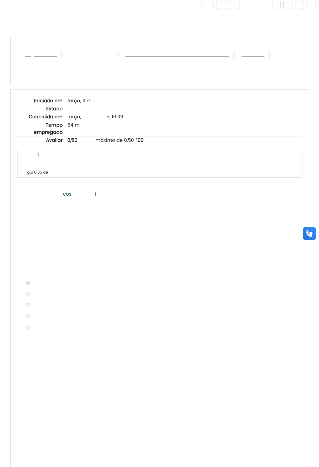 Página inicial Minhas disciplinas 2025/1 - CONTABILIDADE DE AGRONEGÓCIOS UNIDADE I Avaliação - Unidade I Iniciado em terça, 11 mar 2025, 15:44 Estado Finalizada Concluída em terça, 11 mar 2025, 16:39 Tempo empregado 54 minutos 25 segundos Avaliar 0,50 de um máximo de 0,50(100%) Questão 1 Correto Atingiu 0,05 de 0,05 Os ativos biológicos são definidos pela NBC TG 29 (R2) – ATIVO BIOLÓGICO E PRODUTO AGRÍCOLA como “um animal e/ou uma planta, vivos”. A mesma Norma define produção agrícola como “produto colhido de ativo biológico da entidade”. O ponto de colheita ou abate é o momento em que o ativo em questão passará a estar sob o escopo da NBC TG 16 (R1) – ESTOQUES, deixando de estar sob o escopo da NBC TG 29 (R2) – ATIVO BIOLÓGICO E PRODUTO AGRÍCOLA. Esse ponto é, portanto, o último em que o elemento será mensurado de acordo com o critério previsto na NBC TG 29 (R2). Considerando-se o que dispõe a NBC TG 29 (R2) – ATIVO BIOLÓGICO E PRODUTO AGRÍCOLA e atendidos os requisitos de reconhecimento, o produto agrícola colhido de ativos biológicos da entidade deve ser mensurado: a. obrigatoriamente, ao valor justo, menos a despesa de venda. b. alternativamente, ao custo ou ao Valor Realizável Líquido, dos dois o menor. c. alternativamente, ao custo ou ao Valor Reavaliado, dos dois o maior. d. obrigatoriamente, ao custo histórico acrescentando tratos culturais. e. obrigatoriamente, ao custo menos a exaustão. Tamanho da fonte A- A A+ Cor do site R A A A 11/03/2025, 16:47 Avaliação - Unidade I: Revisão da tentativa https://ambienteonline.uninga.br/mod/quiz/review.php?attempt=3483576&cmid=871356 1/7 https://ambienteonline.uninga.br/ https://ambienteonline.uninga.br/course/view.php?id=31223 https://ambienteonline.uninga.br/course/view.php?id=31223§ion=2 https://ambienteonline.uninga.br/mod/quiz/view.php?id=871356 Questão 2 Correto Atingiu 0,05 de 0,05 Questão 3 Correto Atingiu 0,05 de 0,05 Sobre a definição de empresas rurais, assinale a alternativa que não representa uma empresa rural. a. São aquelas que exploram a capacidade produtiva do solo por meio de cultivo de terra, criação de animais e transformação de produtos agrícolas. b. São todas as empresas que realizam melhoramento genético de plantas e animais, não estando vinculadas diretamente com a terra. c. São as empresas familiares que atuam fora da zona urbana. d. São aquelas que exploram a capacidade produtiva na atividade agroindustrial. e. São todas as empresas sem fins lucrativos que exercem atividade agrícola. Uma companhia tem como objeto social a produção e comercialização de cana de açúcar. Para tanto, constam em seu balanço patrimonial algumas lavouras de cana de açúcar registradas no grupo Ativos Biológicos. Em seu último exercício social, a companhia divulgou que aplicou, de maneira consistente, as seguintes políticas contábeis: I. A cana colhida foi mensurada ao valor justo menos as despesas de venda no ponto da colheita e reconhecida nos Estoques de Produtos Agrícolas (Ativo Circulante). II. Os estoques de adubos, fertilizantes e defensivos agrícolas foram avaliados pelo custo de aquisição, haja vista que o valor de custo é menor que o valor realizável líquido. III. As lavouras de cana de açúcar foram mensuradas pelo valor justo, utilizando a abordagem de preços de mercado dessa commodity, deduzido das despesas com vendas e custos a incorrer, a partir da pré-colheita. Considerando-se apenas as informações apresentadas, é correto afirmar que essa companhia atendeu ao que dispõem as normas NBC TG 29 (R2) – ATIVO BIOLÓGICO E PRODUTO AGRÍCOLA e NBC TG 16 (R2) – ESTOQUES no que consta em: a. I e III, apenas. b. II, apenas. c. I, II e III. d. I, apenas. e. Nenhuma das alternativas. Tamanho da fonte A- A A+ Cor do site R A A A 11/03/2025, 16:47 Avaliação - Unidade I: Revisão da tentativa https://ambienteonline.uninga.br/mod/quiz/review.php?attempt=3483576&cmid=871356 2/7 Questão 4 Correto Atingiu 0,05 de 0,05 Questão 5 Correto Atingiu 0,05 de 0,05 Questão 6 Correto Atingiu 0,05 de 0,05 Existem empresas que diversificam suas culturas agrícolas e apresentam colheitas em períodos diferentes no ano. Por exemplo, uma empresa pode cultivar simultaneamente as culturas de milho, soja e cana de açúcar, trigo e eucalipto. Assim, numa atividade agrícola, com diversas culturas agrícolas em períodos de plantio e colheitas diferentes, para determinar o início e término do exercício social, deve-se tomar como base: a. O tamanho da empresa. b. A compra de insumos agrícolas. c. A quantidade de sócios que compõem a empresa. d. A cultura que emprega maior complexidade de insumos. e. A cultura com maior representatividade econômica. Uma prefeitura de um município brasileiro fez a doação de uma propriedade agrícola para a JABORANDI S/A, desde que a empresa contratasse mão de obra local para trabalhar na propriedade agrícola. A empresa JABORANDI S/A é uma empresa experiente no ramo de agronegócio, que iniciou na propriedade agrícola doada pela prefeitura a criação de animais, tais como: carneiros, gado de leite, porcos e a exploração agrícola de plantação de árvores, plantação de algodão, árvore frutífera e seringueira. Em referência ao texto, considerando a norma contábil NBC TG 29 (R2) – ATIVO BIOLÓGICO E PRODUTO AGRÍCOLA, durante a fase de crescimento e desenvolvimento (transformação biológica), são considerados ativos biológicos: a. A salsicha e o presunto, feitos com a carne dos porcos. b. O algodão vendido nas farmácias, advindo do algodão. c. As geleias doces que são fabricadas com as frutas colhidas. d. O látex e a borracha, que são extraídos das seringueiras. e. Os próprios porcos, durante sua fase de engorda. A empresa rural, seja familiar ou patronal, é integrada por um conjunto de recursos, denominados fatores da produção, onde são exercidas as atividades rurais com a finalidade d