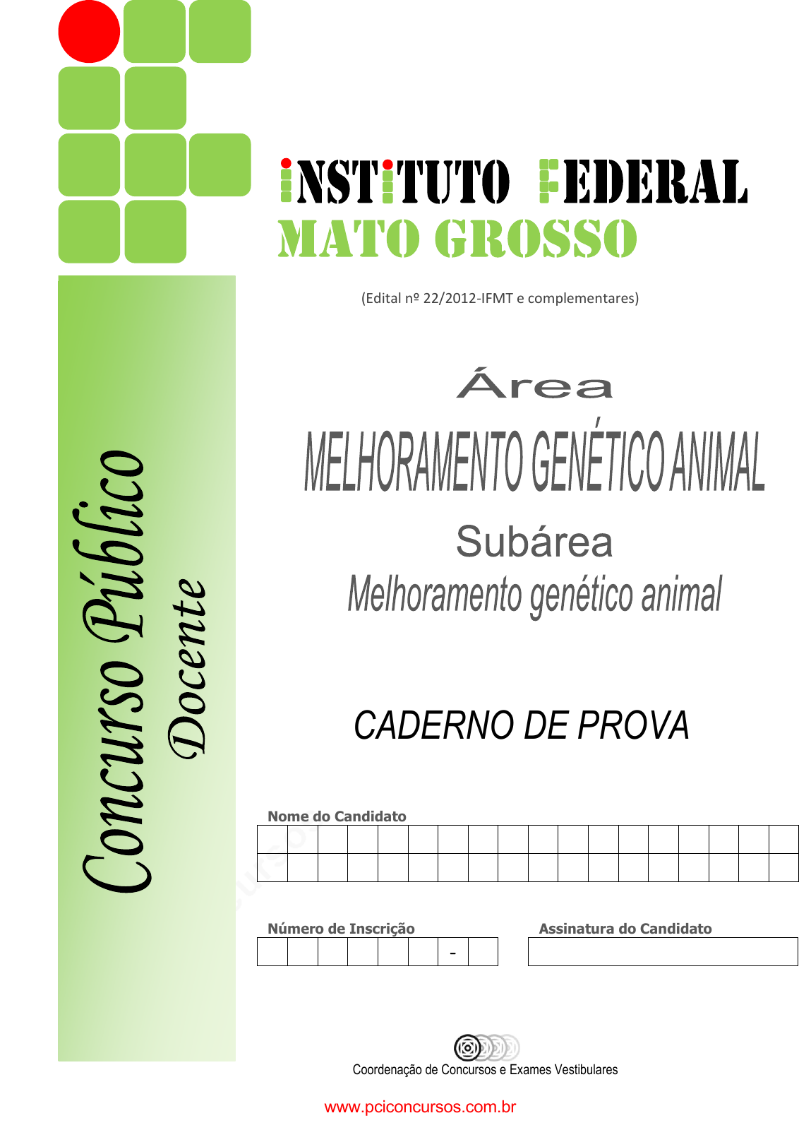 pcimarkpci MDAwMDowMDAwOjAwMDA6MDAwMDowMDAwOmZmZmY6YjExZTo4Y2M1:VHVlLCAxMSBNYXIgMjAyNSAxNzoxNTozOSAtMDMwMA== www.pciconcursos.com.br (Edital nº 22/2012-IFMT e complementares) Nome do Candidato Número de Inscrição Assinatura do Candidato - Coordenação de Concursos e Exames Vestibulares CADERNO DE PROVA www.pciconcursos.com.br pcimarkpci MDAwMDowMDAwOjAwMDA6MDAwMDowMDAwOmZmZmY6YjExZTo4Y2M1:VHVlLCAxMSBNYXIgMjAyNSAxNzoxNTozOSAtMDMwMA== www.pciconcursos.com.br Instruções LEIA COM ATENÇÃO 1. Este Caderno de Prova, com páginas numeradas de 1 a 12, é constituído de uma Prova Objetiva com 40 (quarenta) questões de múltipla escolha, cada uma com quatro alternativas, assim distribuídas: 01 a 10 – Língua Portuguesa 11 a 20 – Fundamentos de Educação e Legislação 21 a 40 – Conhecimentos Específicos 2. Caso o Caderno de Prova esteja incompleto ou tenha qualquer defeito de impressão, solicite ao fiscal que o substitua. 3. Sobre a Marcação do Cartão de Respostas As respostas das questões da Prova Objetiva devem ser, obrigatoriamente, transcritas com caneta esferográfica de tinta preta não porosa para o Cartão de Respostas, que será o único documento válido para correção. Não haverá substituição do Cartão de Respostas por erro do candidato. 3.1. Para cada questão existe apenas uma alternativa que a responde acertadamente. Para a marcação da alternativa escolhida no CARTÃO DE RESPOSTAS, pinte completamente o círculo correspondente. Exemplo: Suponha que para determinada questão a alternativa C seja a escolhida. N.º da Questão A B C D 3.2. Será invalidada a questão em que houver mais de uma marcação, marcação rasurada ou emendada, ou não houver marcação. 3.3. Não rasure nem amasse o CARTÃO DE RESPOSTAS. 4. Todos os espaços em branco, neste caderno, podem ser utilizados para rascunho. 5. A duração da prova é 4 (quatro) horas, já incluído o tempo destinado ao preenchimento do CARTÃO DE RESPOSTAS. 6. Será permitida a saída de candidatos da sala de prova somente após decorridas 2:30 h (duas horas e trinta minutos) do início da Prova Objetiva. 7. O candidato que insistir em sair da sala de prova antes de transcorridas 2:30 h (duas horas e trinta minutos) do início da Prova Objetiva deverá assinar Termo de Ocorrência declarando desistência do Concurso. 8. Antes de se retirar da sala de prova, o candidato deverá, obrigatoriamente, entregar ao fiscal este Caderno de Prova e o Cartão de Respostas. Este Caderno de Prova poderá ser levado pelo candidato somente na última meia hora de prova. 9. É vedado ao candidato copiar as marcações feitas no Cartão de Respostas. www.pciconcursos.com.br pcimarkpci MDAwMDowMDAwOjAwMDA6MDAwMDowMDAwOmZmZmY6YjExZTo4Y2M1:VHVlLCAxMSBNYXIgMjAyNSAxNzoxNTozOSAtMDMwMA== www.pciconcursos.com.br 1/12 – Docente: MELHORAMENTO GENÉTICO ANIMAL/Melhoramento genético animal LÍNGUA PORTUGUESA INSTRUÇÃO: Leia o artigo abaixo e responda às questões de 01 a 05. Mundo que vai 1 5 10 15 20 Não é todo dia que se assiste a uma página virada na história do mundo. O modesto estado americano de Indiana (modesto em relação à federação a que pertence) começará a virá-la a partir do início do próximo ano letivo, em setembro, quando suas escolas deixarão de ensinar obrigatoriamente a letra de mão aos alunos. Já há algum tempo corre nos Estados Unidos o debate sobre a utilidade de ensiná-la. O tempo aí empregado seria mais bem aproveitado em disciplinas hoje bem mais pertinentes, a começar pelo manejo do teclado do computador. Mas Indiana é o primeiro estado a tornar a medida oficial, por meio de instrução às escolas. Obrigatório será o ensino do teclado. A letra de mão, que também atende pelo bonito nome de cursiva, com origem em “correr” e “corrente”, terá ensino facultativo. Ela hoje corre bem menos, coitada, e é bem menos corrente que os caracteres do computador. O traçado cursivo, como até os chimpanzés saberiam prever, foi atropelado impiedosamente pela eletrônica. Que as crianças precisam desde cedo familiarizar-se com o computador é ponto pacífico. Discutível é se o abandono do cursivo trará perdas às novas gerações. Especialistas acenam com possível involução na capacidade motora e na coordenação entre olho e mão. Outros perguntam como as crianças de hoje assinarão os cheques que as esperam na vida adulta – se é que ainda haverá cheques, e se é que algum truque digital não virá substituir as assinaturas. A máquina de escrever já foi um golpe na letra de mão. A rigor, a imprensa de Gutemberg, muito antes já fora um golpe. Mas nenhum deles acertou em cheio. O computador sim, com seu avanço totalizante sobre a vida. A morte do cursivo pode resultar no fenômeno, inédito na história, de uma criança de hoje não conseguir ler o que o pai escreveu na escola, ou numa carta, ou num diário. Aqueles traçados redondos, argolas inclinadas para a direita como matagal ao vento, engatadas umas às outras, como vagões de trem, que diabos seriam? O cursivo difere bastante da letra de forma. O filho achará que o pai escrevia em árabe. A ilegibilidade de um texto em letra de mão não é ocorrência nova na história. Documentos do século XVI só os paleógrafos são capazes de decifrar. Mas sempre se passou um tempo considerável, até que uma maneira de escrever caducasse aos olhos dos vindouros. O que se desenha de inédito no horizonte é o fenômeno se dar no espaço de apenas uma geração. Os avanços tecnológicos têm ocorrido velozmente, mas corte tão nítido e abrupto, muro geracional intransponível, ainda estava por vir. É um mundo que vai embora. (TOLEDO, Roberto P. de. Revista Veja, 27/07/2011. Adaptado) Questão 01 Sobre o artigo, pode-se afirmar: [A] Discute as mudanças do ensino da escrita do inglês no estado americano de Indiana. [B] Enfatiza o debate sobre o ensino da letra maiúscula nos Estados Unidos. [C] Questiona se o aband