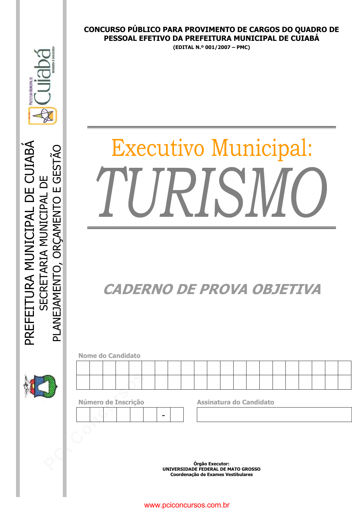 pcimarkpci MDAwMDowMDAwOjAwMDA6MDAwMDowMDAwOmZmZmY6YjViZjozZTlj:V2VkLCAxMiBNYXIgMjAyNSAyMzowOTo0OSAtMDMwMA== www.pciconcursos.com.br PR EF EI TU R A M U N IC IP AL D E CU IA BÁ SE CR ET AR IA M U N IC IP AL D E PL AN EJ AM EN TO , O RÇ AM EN TO E G ES TÃ O CONCURSO PÚBLICO PARA PROVIMENTO DE CARGOS DO QUADRO DE PESSOAL EFETIVO DA PREFEITURA MUNICIPAL DE CUIABÁ (EDITAL N.º 001/2007 – PMC) CADERNO DE PROVA OBJETIVA Nome do Candidato Número de Inscrição Assinatura do Candidato - Órgão Executor: UNIVERSIDADE FEDERAL DE MATO GROSSO Coordenação de Exames Vestibulares www.pciconcursos.com.br pcimarkpci MDAwMDowMDAwOjAwMDA6MDAwMDowMDAwOmZmZmY6YjViZjozZTlj:V2VkLCAxMiBNYXIgMjAyNSAyMzowOTo0OSAtMDMwMA== www.pciconcursos.com.br I N S T R U Ç Õ E S LEIA COM ATENÇÃO 1. Este Caderno de Prova, com páginas numeradas de 1 a 13, é constituído de 50 (cinqüenta) questões objetivas, cada uma com cinco alternativas, assim distribuídas: 01 a 10 – Língua Portuguesa 11 a 15 – Raciocínio Lógico 16 a 20 – Noções de Informática 21 a 50 – Conhecimentos Específicos 2. Caso o Caderno de Prova esteja incompleto ou tenha qualquer defeito de impressão, solicite ao fiscal que o substitua. 3. Sobre a Marcação da Folha de Respostas As respostas deverão ser, obrigatoriamente, transcritas com caneta esferográfica de tinta preta não porosa para a Folha de Respostas, que será o único documento válido para correção. Não haverá substituição da Folha de Respostas por erro do candidato. 3.1. Para cada questão existe apenas uma alternativa que a responde acertadamente. Para a marcação da alternativa escolhida na FOLHA DE RESPOSTAS, pinte completamente o campo correspondente. Exemplo: Suponha que para determinada questão a alternativa C seja a escolhida. N.º da Questão A B C D E 3.2. Será invalidada a questão em que houver mais de uma marcação, marcação rasurada ou emendada, ou não houver marcação. 3.3. Não rasure nem amasse a FOLHA DE RESPOSTAS. 4. A duração da prova é de quatro horas, já incluído o tempo destinado ao preenchimento da FOLHA DE RESPOSTAS e à coleta de impressão digital. 5. Todos os espaços em branco, neste caderno, podem ser utilizados para rascunho. 6. Será permitida a saída de candidatos da sala de prova somente após decorridas duas horas e trinta minutos do início da prova. Nesse caso, o candidato deverá entregar, obrigatoriamente, ao fiscal o Caderno de Prova e a Folha de Respostas. 7. O candidato que insistir em sair da sala de prova antes de transcorridas duas horas e trinta minutos do início da prova deverá assinar Termo de Ocorrência declarando desistência do Concurso. 8. Será permitida a saída de candidatos levando o Caderno de Prova somente após três horas e trinta minutos do início da prova. 9. É vedado ao candidato copiar as marcações feitas na Folha de Respostas. 10. Terminada a prova, o candidato deverá, obrigatoriamente, entregar ao fiscal a FOLHA DE RESPOSTAS. www.pciconcursos.com.br pcimarkpci MDAwMDowMDAwOjAwMDA6MDAwMDowMDAwOmZmZmY6YjViZjozZTlj:V2VkLCAxMiBNYXIgMjAyNSAyMzowOTo0OSAtMDMwMA== www.pciconcursos.com.br 1/13 – EXECUTIVO MUNICIPAL: Turismo LÍNGUA PORTUGUESA INSTRUÇÃO: Leia o texto de João Ubaldo Ribeiro para responder às questões de 01 a 10. Em defesa do padrão nacional 1 5 10 15 20 25 30 35 Não entendo nada de mulher, claro. Aliás, ninguém entende, nem mesmo Freud, que, num momento de aparente exasperação, perguntou o que as mulheres querem e morreu sem saber. Sou provocado a aventurar-me em terreno tão resvaladiço por causa das notícias, cada vez mais freqüentes, de moças que, na busca de atingir o padrão de beleza vigente, caem vítimas de anorexia nervosa e morrem. Ninguém gosta de saber desses acontecimentos tristes, motivados pela ânsia de identificação com o modelo hegemônico ou, mais patético ainda, pelo afã de ter sucesso numa carreira equivocadamente julgada fácil, mas dificílima e penosíssima, onde um número enorme de jovens se perde todos os anos. Mas, claro, só aparecem as lindas e bem sucedidas, cuja vida para seus admiradores é um mar de rosas de festas e glamour. E que padrão de beleza é esse, será mesmo, digamos, “natural”, será de fato o preferido por homens e mulheres que não estão comprometidos com o conhecido “Barbie look”? Quanto às mulheres, massacradas sem clemência por gostosas irretocáveis (na verdade retocadas pelo Photoshop), que não têm uma manchinha na pele, uma estriazinha escondida, uma celulitezinha e ostentam dotes de uma perfeição na verdade fictícia, não posso falar muito. Mas quanto aos homens posso, porque ouço a opinião de muitos deles e não só saudosistas do modelo violão (em inglês “hour-glass look”, aparência de ampulheta), mas jovens também. Em primeiro lugar, devo afirmar enfaticamente, não por demagogia ou qualquer interesse subalterno, mas em função de uma permanente pesquisa sociológica informal, existe vasto e devotado mercado para as gordinhas e até para as mais gordinhas do que as gordinhas. Mulher tem que ter cintura, violão ou ampulheta não interessa, mas é vital a formosa concavidade entre as costelas e as ancas. Creio mesmo que, consultada a opinião pública, tanto de homens como de mulheres, mesmo as descinturadas por uma malhação perversa, a maioria concordaria em que mulher tem que ter cintura, faz parte da figura feminina, é clássico, e até constituinte do doce mistério das mulheres. E há muitas gordinhas, sim senhor, mantidas no modelo violão. Está bem, violoncelo, mas com a cintura no lugar. E sei que as descinturadas, conscientemente ou não, também sabem disso, porque noto, entre as muito fotografadas, que elas procuram sempre posar curvando os quadris para um lado, fingindo ainda ter a cintura insensatamente perdida. Agora, para alegria dos violonófilos e cinturistas, chega evidência científica de que o padrão esquelético ou Barbie nunca esteve c