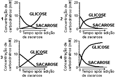 [A] 1328. Comparando-se o aparelho digestivo dos mamíferos herbívoros - como, por exemplo, a cabra - com o aparelho digestivo dos mamíferos carnívoros, observa- se geralmente a) presença de maior número de dentes e de rúmen. b) presença de dentes mais aplanados e de rúmen. c) presença de menor número de dentes e ausência de estômago. d) presença de dentes mais pontiagudos e de estômago. e) presença de dentes mais escuros e ausência de rúmen. [B] 1329. Um médico holandês observou, no final do século XIX, que galinhas alimentadas com arroz polido, ou descascado, apresentavam os sintomas de uma doença conhecida como beribéri, que era curada com a ingestão da película, ou casca, retirada dos grãos do arroz. A substância necessária em pequenas quantidades na dieta para evitar o beribéri, é a vitamina denominada: a) E b) C c) B1 d) A [C] 1340. O aumento de peso é considerado um fator determinante do aparecimento de hipertensão arterial em crianças e adolescentes. Todas as alternativas apresentam procedimentos recomendados para abaixar a pressão arterial, EXCETO a) Estimular o consumo de fibras vegetais nas refeições. b) Praticar atividades físicas regulares. c) Evitar o consumo diário de carnes vermelhas. d) Usar queijo curado em uma das refeições diárias. [D] 1341. Na produção de compotas, devem ser adotadas algumas medidas para evitar-se a contaminação do alimento por microrganismos. Todas as alternativas apresentam medidas que podem garantir a assepsia desse processo, EXCETO a) A adição de conservantes, para impedir o crescimento dos microrganismos. b) A manutenção do meio aquoso, para evitar o crescimento de bactérias. c) A fervura, para desinfecção dos recipientes em que os doces serão guardados. d) A retirada do ar no momento de se fechar o recipiente que contém o doce. [B] 1342. Tomando uma grande dose de vitamina A, uma pessoa pode suprir suas necessidades por vários dias; porém, se fizer o mesmo em relação à vitamina C, não terá o mesmo efeito, necessitando de reposições diárias dessa vitamina. Essa diferença na forma de administração se deve ao fato de a vitamina: a) A ser necessária em menor quantidade. b) A ser sintetizada no próprio organismo. c) A ser lipossolúvel e ficar armazenada no fígado. d) C ser mais importante para o organismo. e) C fornecer energia para as reações metabólicas. [C] 1343. A hemorragia decorrente da ingestão de trevo doce por bovinos e ovinos se deve ao dicumarol, substância presente nesse vegetal e que exerce ação antagonista à vitamina a) E b) B12 c) B1 d) K [D] 1344. A ingestão de alimentos gordurosos (frituras, por exemplo) provoca a secreção de bile, e esta promove o emulsionamento das gorduras, facilitando a ação da lipase. Marque a opção que contém o hormônio estimulante da secreção da bile e o órgão onde ele é produzido. a) Hormônio: secretina; Órgão: pâncreas; b) Hormônio: secretina; Órgão: fígado; c) Hormônio: colecistocinina; Órgão: vesícula; d) Hormônio: colecistocinina; Órgão: duodeno; [D] 1345. No nosso organismo, a falta de bile no intestino delgado dificulta a digestão, principalmente de: a) amido. b) gorduras. c) proteínas. d) vitaminas. e) enzimas. [B] 1346. Durante o processo de digestão de alimentos pelo homem, observa-se uma variação do pH ao longo do aparelho digestivo. Considerando essa variação, podemos dizer que o pH: a) na boca é ácido, no estômago é alcalino e é neutro no intestino. b) na boca e no estômago é ácido, tornando-se próximo ao neutro do intestino. c) na boca é alcalino, no estômago é neutro e no intestino ácido. d) na boca é próximo ao neutro, no estômago torna-se ácido e no intestino volta a ser alcalino. e) tende a apresentar uma tendência geral à acidificação. [D] 1347. VITAMINAS "Megadoses de desconfiança" Utilização de tratamento alternativos e práticas de terapia ortomolecular provocam polêmica entre médicos. Algumas vitaminas, entre elas o ácido ascórbico e o tocoferol ou vitamina E, são preconizadas em doses elevadas pelos defensores da chamada medicina ortomolecular, com o objetivo de prevenir uma série de doenças provocadas, segundo eles, por um acúmulo de radicais livres no organismo. A utilização com essa finalidade está baseada na seguinte propriedade química dos compostos citados: a) oxidante b) redutora c) detergente d) emulsionante [B] 1348. A invertase é a enzima que hidrolisa a sacarose em glicose e frutose. Incubou-se, em condições adequadas, essa enzima com sacarose, de tal forma que a concentração inicial, em milimoles por litro, do dissacarídeo fosse de 10mM. Observe os gráficos a seguir: Aquele que melhor representa a variação das concentrações, em função do tempo de incubação, da sacarose e da glicose, é o de número: a) 4 b) 3 c) 2 d) 1 [C] 1349. NÃO apresentam tubo digestivo completo: a) Platelmintos. b) Nematódeos. c) Moluscos. d) Anelídeos. e) Aracnídeos. [A] 1350. Uma pessoa cujas glândulas gástricas não estão produzindo ácido clorídrico, certamente terá dificuldades na digestão de a) amido. b) vegetais. c) açúcares. d) gorduras. ) proteínas. [E] 1351. A especificidade enzimática consiste na: a) energia de ativação da enzima b) vulnerabilidade da enzima de desnaturar-se a temperaturas altas c) exclusividade da enzima de somente atuar em seu substrato d) capacidade da enzima de "identificar" o pH específico que propicie a reação [C] 1352. A celíase é uma doença caracterizada pela intolerância ao glúten presente em trigo, centeio e aveia. Nas pessoas que apresentam essa doença, o glúten provoca a atrofia da mucosa que reveste internamente o intestino delgado, tornando-a lisa. Assinale a alternativa que descreve a(s) conseqüência(s) dessa lesão. a) Diarréia e emagrecimento, pois a superfície de absorção de nutrientes diminui. b) Diarréia por incapacidade de emulsionar e digerir lipídios. c) D