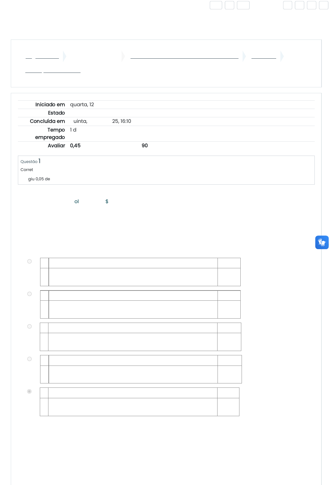 Página inicial Minhas disciplinas 2025/1 - CONTABILIDADE DE AGRONEGÓCIOS UNIDADE II Avaliação - Unidade II Iniciado em quarta, 12 mar 2025, 15:40 Estado Finalizada Concluída em quinta, 13 mar 2025, 16:10 Tempo empregado 1 dia Avaliar 0,45 de um máximo de 0,50(90%) Questão 1 Correto Atingiu 0,05 de 0,05 Uma empresa agrícola gastou R$200.000,00 em janeiro para o plantio da cultura temporária de milho, esperando que, para comercializar toda a produção dessa soja colhida, ela tenha que pagar R$ 50.000,00 de despesas com vendas. Em junho, mesmo que a soja não tenha sido colhida, a empresa agrícola calculou qual seria o valor justo de toda a colheita do milho, valendo R$ 2.000.000,00. O contador da empresa precisa realizar os registros contábeis sobre a mensuração da valoração do valor justo na contabilidade. Dessa forma, o contador realizou os seguintes lançamentos contábeis no Livro Diário da empresa rural: a. D Valor justo – Ativo biológico – Milho (Ativo Circulante – Estoques) 1.950.000 C Ajuste a Valor Justo – Ativos Biológicos - Milho (Contas de Resultado – Receitas) 1.950.000 b. D Valor justo – Ativo biológico – Milho (Ativo Circulante – Estoques) 1.800.000 C Ajuste a Valor Justo – Ativos Biológicos - Milho (Contas de Resultado – Receitas) 1.800.000 c. D Valor justo – Ativo biológico – Milho (Ativo Circulante – Estoques) 2.200.000 C Ajuste a Valor Justo – Ativos Biológicos - Milho (Contas de Resultado – Receitas) 2.200.000 d. D Valor justo – Ativo biológico – Milho (Ativo Circulante – Estoques) 2.000.000 C Ajuste a Valor Justo – Ativos Biológicos - Milho (Contas de Resultado – Receitas) 2.000.000 e. D Valor justo – Ativo biológico – Milho (Ativo Circulante – Estoques) 1.750.000 C Ajuste a Valor Justo – Ativos Biológicos - Milho (Contas de Resultado – Receitas) 1.750.000  Tamanho da fonte A- A A+ Cor do site R A A A 13/03/2025, 16:10 Avaliação - Unidade II: Revisão da tentativa https://ambienteonline.uninga.br/mod/quiz/review.php?attempt=3488172&cmid=871363 1/9 https://ambienteonline.uninga.br/ https://ambienteonline.uninga.br/course/view.php?id=31223 https://ambienteonline.uninga.br/course/view.php?id=31223§ion=3 https://ambienteonline.uninga.br/mod/quiz/view.php?id=871363 Questão 2 Correto Atingiu 0,05 de 0,05 O contador de uma fazenda agrícola do estado do Paraná organiza as bases de rateio para mensuração da depreciação dos bens do ativo imobilizado da seguinte forma: Maquinário agrícola com base na vida útil em horas. Imobilizados relacionados à manutenção da atividade administrativa com base na vida útil em anos. Organizando-se da seguinte forma: itens do imobilizado Valor imobilizado R$valor residual R$ Vida útil vida útil consumida (depreciação acumulada) imobilizado - maquinário agrícola caminhão R$ 150.000 R$ 7.500 15.000 horas 3000 horas tratores R$ 300.000 R$ 15.000 25.000 horas 5000 horas colheitadeira R$ 175.000 R$ 8.750 12.000 horas 2400 horas imobilizado - administração computadores e periféricos R$ 8.000 R$ 400 7 anos 2 anos caminhonete R$ 80.000 R$ 4.000 10 anos 3 anos sede da fazenda R$ 15.000 R$ 750 25 anos 4 anos Um novo analista contábil foi contratado pela fazenda e realizou as seguintes operações contábeis: I – Devido à colheitadeira ter trabalhado 400 horas na colheita do milho, o analista contábil apropriou o valor da depreciação da colheitadeira como despesa como depreciação na demonstração de resultado (DR) porque o milho ainda não foi vendido. II – Devido à administração trabalhar com a organização das atividades exercidas nas lavouras da fazenda, apropriou o valor da depreciação dos bens imobilizados da administração nos custos das lavouras conforme o tempo de plantio. III – Durante o ano agrícola, os tratores foram utilizados para trabalhar nas culturas de café, soja, milho, trigo e eucalipto. Dessa forma, o analista contábil determinou a quantidade de horas trabalhadas em cada cultura para realizar o cálculo da depreciação dos tratores proporcionalmente a cada cultura. IV – O analista contábil realiza o cálculo dos valores da depreciação de cada item imobilizado considerando suas respectivas bases de mensuração, resultando em: Caminhão (R$ 9,50/hora); Tratores (R$ 11,40/hora); Colheitadeira (R$ 13,85/hora); Computadores e periféricos (R$ 1.085,74/ano); Caminhonete (R$ 7.600,00/ano); Sede da fazenda (R$ 570,00/ano); Assinale a alternativa que contém todas as operações contábeis que foram realizadas de forma correta. a. I, III e IV. b. III e IV.  c. II, III e IV. d. II e III. e. I, II e III. Tamanho da fonte A- A A+ Cor do site R A A A 13/03/2025, 16:10 Avaliação - Unidade II: Revisão da tentativa https://ambienteonline.uninga.br/mod/quiz/review.php?attempt=3488172&cmid=871363 2/9 Questão 3 Correto Atingiu 0,05 de 0,05 Questão 4 Correto Atingiu 0,05 de 0,05 Questão 5 Correto Atingiu 0,05 de 0,05 No caso da atividade agrícola, as incertezas na economia, sazonalidades, safra, entressafra e perdas (produtos perecíveis), o produtor pode optar por armazenar o produto, armazenando na propriedade caso tenha estrutura adequada ou em armazém com contrato de terceiros. O entendimento contábil dos gastos relacionados à armazenagem deve ser classificado contabilmente como: a. despesas operacionais  b. ativos imobilizados c. perdas irrecuperáveis d. custos operacionais e. investimentos a curto prazo O Brasil possui participação significativa no comércio mundial de outras commodities, como feijão, algodão, frutas, açúcar, café, carne bovina, suína e frango. Dentro desse extensivo mercado de commodities globalmente ativo, é possível realizar uma inferência mais tempestiva sobre o valor justo. Dessa forma, qual fator é determinante para a mensuração do valor dos produtos agrícolas na atividade rural? a. O ponto de venda dos produtos agrícolas. b. preferencialmente no término da colheita das