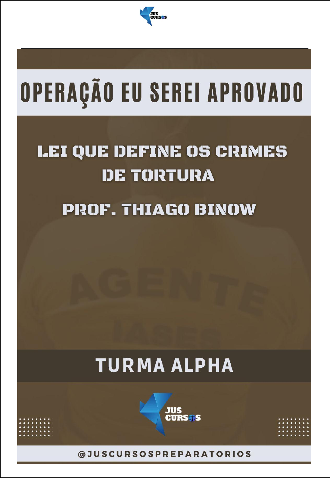 @juscursospreparatorios 1 @ @juscursospreparatorios 2 @ @juscursospreparatorios 3 @ LEI QUE DEFINE OS CRIMES DE TORTURA LEI 9.455, DE 07 DE ABRIL DE 1997 INTRODUÇÃO: Após a 2ª Grande Guerra nasce um movimento de repúdio à tortura. Aprovações de várias Convenções e Tratados contra a tortura (alguns ratificados pelo Brasil). No Brasil, após a CF/88, foi consagrado como direito fundamental do cidadão não ser submetido à tortura. (art.5ºIIICF). “Art.5ºIII,CF ninguém será submetido a tortura nem a tratamento desumano ou degradante;” Lei 8.069/90 – art. 233 (ECA): 1º diploma a definir crime de tortura (vítima apenas criança e adolescente). Lei 8.072/90: Equiparou tortura a crimes hediondos – prevê para a tortura as mesmas consequências de um crime hediondo. Lei 9.455/97: Definiu tortura no Brasil, revogando o art. 233 ECA (conceito extraído de tratados internacionais). Lei 12.847/13 (institui o Sistema Nacional de Prevenção e Combate à Tortura). “De início, cumpre esclarecer que o conceito de tortura, tomado a partir dos instrumentos de direito internacional, tem um viés estatal, implicando que o crime só poderia ser praticado por agente estatal (funcionário público) ou por um particular no exercício de função pública, consubstanciando, assim, crime próprio. A despeito disso, o legislador pátrio, ao tratar do tema na Lei n. 9.455/1997, foi além da concepção estabelecida nos instrumentos internacionais, na medida em que, ao menos no art. 1º, I, ampliou o conceito de tortura para além da violência perpetrada por servidor público ou por particular que lhe faça as vezes, dando ao tipo o tratamento de crime comum. A adoção de uma concepção mais ampla do tipo supracitado, tal como estabelecida na Lei n. 9.455/1997, encontra guarida na Convenção contra a Tortura e outros Tratamentos ou Penas Cruéis, Desumanos ou Degradantes, que ao tratar do conceito de tortura estabeleceu –, em seu art. 1º, II –, que: o presente artigo não será interpretado de maneira a restringir qualquer instrumento internacional ou legislação nacional que contenha ou possa conter dispositivos de alcance mais amplo” (REsp @juscursospreparatorios 4 @ 1.738.264-DF, Rel. Min. Sebastião Reis Júnior, por maioria, julgado em 23/08/2018, DJe 14/09/2018). CONVENÇÃO CONTRA A TORTURA E OUTROS TRATAMENTOS OU PENAS CRUEIS, DESUMANOS OU DEGRADANTES. Conceito de tortura - Para os fins da presente Convenção, o termo "tortura" designa qualquer ato pelo qual dores ou sofrimentos agudos, físicos ou mentais, são infligidos intencionalmente a uma pessoa a fim de obter, dela ou de uma terceira pessoa, informações ou confissões; de castigá-la por ato que ela ou uma terceira pessoa tenha cometido ou seja suspeita de ter cometido; de intimidar ou coagir esta pessoa ou outras pessoas; ou por qualquer motivo baseado em discriminação de qualquer natureza; quando tais dores ou sofrimentos são infligidos por um funcionário público ou outra pessoa no exercício de funções publicas, ou por sua instigação, ou com o seu consentimento ou aquiescência. Não se considerara como tortura as dores ou sofrimentos que sejam consequência unicamente de sanções legitimas, ou que sejam inerentes a tais sanções ou delas decorram. (Art. 1° da Convenção Contra a Tortura e Outros Tratamentos ou Penas Cruéis, Desumanos ou Degradantes). CONSTITUIÇÃO FEDERAL Art. 5º, inciso III - ninguém será submetido a tortura nem a tratamento desumano ou degradante; Art. 5º, XLIII - a lei considerará crimes inafiançáveis e insuscetíveis de graça ou anistia a prática da tortura, o tráfico ilícito de entorpecentes e drogas afins, o terrorismo e os definidos como crimes hediondos, por eles respondendo os mandantes, os executores e os que, podendo evitá-los, se omitirem; As hipóteses de IMPRESCRITIBILIDADE estão previstas no art. 5º, XLII e XLIV da CF/88: XLII - a prática do racismo constitui crime inafiançável e imprescritível, sujeito à pena de reclusão, nos termos da lei; XLIV - constitui crime inafiançável e imprescritível a ação de grupos armados, civis ou militares, contra a ordem constitucional e o Estado Democrático; BEM JURÍDICO TUTELADO O bem protegido pela norma é a dignidade humana, a integridade física e psíquica e até a vida das pessoas. @juscursospreparatorios 5 @ O bem protegido pela norma é a dignidade humana, a integridade física e psíquica e até a vida das pessoas. Trata-se de um crime pluriofensivo. SUJEITO ATIVO A maioria da doutrina entende que o delito de tortura é crime comum, já que a lei não previu tal qualidade especial. Em algumas figuras típicas, pode ser crime próprio, ou seja, praticado por funcionário público. SUJEITO PASSIVO - Qualquer pessoa. TIPO OBJETIVO Art. 1º Constitui crime de tortura: I - constranger alguém com emprego de violência ou grave ameaça, causando-lhe sofrimento físico ou mental: a) com o fim de obter informação, declaração ou confissão da vítima ou de terceira pessoa; b) para provocar ação ou omissão de natureza criminosa; c) em razão de discriminação racial ou religiosa; Núcleo - CONSTRANGER - forçar, obrigar pela força, coagir, compelir. • COM EMPREGO DE VIOLÊNCIA - vis corporalis - violência física sobre o corpo da vítima , para afastar sua resistência. • OU GRAVE AMEAÇA - vis compulsiva - violência moral, exercida sobre o psiquismo da vítima, viciando sua vontade @juscursospreparatorios 6 @ Elemento normativo do tipo: “causando-lhe sofrimento físico ou mental” TIPO SUBJETIVO: Dolo - vontade livre e consciente de infligir sofrimento físico ou mental na vítima, através de violência ou grave ameaça. O ESPECIAL FIM DE AGIR, segundo boa parte da doutrina, é exigido nas três figuras típicas, que se classificam como crimes de intenção ou de tendência interna transcendente, em que o elemento subjetivo não se esgota no dolo, é necessária uma finalidade u