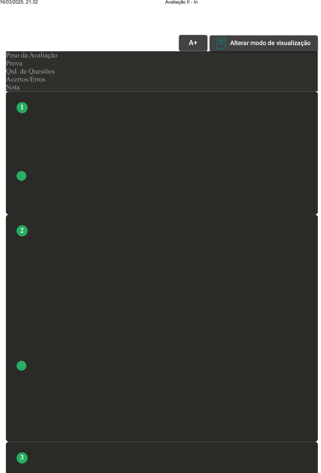 Prova Impressa GABARITO | Avaliação II - Individual (Cod.:991600) Peso da Avaliação 2,00 Prova 86100436 Qtd. de Questões 10 Acertos/Erros 9/1 Nota 9,00 O modelo totalitarista trata-se de um regime que, por sua própria natureza, não reconhece os princípios democráticos e, por isso, consequentemente estabelece "monopólio" de poder por parte do governante e de seu grupo. O totalitarismo possui três correntes. Quais são elas? A Autoritarismo, Nazismo e Fascismo. B Marxismo, Nazismo e Stalinismo. C Nazismo, Fascismo e Stalinismo. D Neofascismo, Nazismo e Autoritarismo. A ideia de monarquia remete a noções de único líder e de sistemas hereditários ou eletivos de governo. Não podemos precisar data e local que iniciou o primeiro governo com esse formato. Contudo, alguns elementos ligados à forma como os grupos humanos se organizaram ao longo da história nos dão pistas para identificar as primeiras experiências com regimes monárquicos. Considerando essas primeiras experiências, analise as sentenças a seguir: I- Entre os nômades haviam líderes com habilidades ligadas à dinâmica social do período, caracterizados como monarcas. II- A agricultura e o surgimento das primeiras cidades levaram a transformações sociais no sentido de relações de poder para além dos grupos familiares. III- Os responsáveis pelo excedente da agricultura passaram a acumular riquezas e a transmiti-las através de herança. IV- A monarquia é um regime de governo que tem início com o feudalismo, sendo substituído com a instituição das repúblicas a partir do século XX. Assinale a alternativa CORRETA: A As sentenças II e III estão corretas. B As sentenças I, III e IV estão corretas. C As sentenças I e IV estão corretas. D As sentenças II, III e IV estão corretas. O Estado, do pondo de vista fenomenológico, é apenas uma forma de organizar o poder. Nesse sentido, o poder é algo intrínseco e constitutivo do Estado, de modo que não há Estado sem poder e VOLTAR A+ Alterar modo de visualização 1 2 3 16/03/2025, 21:32 Avaliação II - Individual about:blank 1/5 não há poder que perdure sem a organização de um Estado. Thomas Hobbes (1588-1679) defendia o princípio do poder indivisível, concentrado na pessoa do monarca, estando relacionado à função vital de manutenção da ordem e da integridade social em momentos críticos, em que não se pode deliberar e democratizar funções vitais de comando. Significa que, na prática, em muitas situações, um poder dividido significa um poder fragilizado. A partir do exposto, classifique V para as sentenças verdadeiras e F para as falsas: ( ) O Estado Liberal está comprometido com poder centralizado nas mãos do mercado. ( ) O Estado Socialista está fundamentado na perspectiva hobbesiana, pois afirma a necessidade do poder concentrado em uma classe. ( ) O Estado Absolutista é uma reposta à fragmentação do poder e às intermináveis disputa entre o clero, a nobreza e as camadas mais baixas. ( ) Estado Democrático não é um modelo, mas é o único capaz de permitir que todas as pessoas, segmentos e ideologias tenham seus direitos representados. Assinale a alternativa que apresenta a sequência CORRETA: A F - F - V - V. B V - V - F - F. C V - F - V - F. D F - V - F - V. A palavra Monarquia, etimologicamente, vem do grego monarkhía, que significa um único líder, similar ao que provém do latim monarchìa, que faz referência a um único soberano. Geralmente, essa palavra nos remete a um sistema hereditário de governo. A Monarquia apresenta três principais características. Quais são elas? A Vitaliciedade; Ilimitabilidade; e Aristocracia. B Popularidade; Vitaliciedade; e Flexibilidade. C Hereditariedade; Vitaliciedade; e Popularidade. D Hereditariedade; Vitaliciedade; e Ilimitabilidade do poder. Diferentemente da ordem social, instituída por normas artificias criadas, a ordem natural é uma ordem de necessidades e funciona a partir de leis insubstituíveis. É importante salientar que todas as instituições humanas primitivas guardam em si uma relação de espelhamento ou dependência com a ordem natural ou da natureza. A partir do exposto, avalie as asserções a seguir e a relação proposta entre elas: I- A monarquia é um modelo primitivo natural de concentração do poder. PORQUE II- O totalitarismo é um modelo artificial e arbitrário de concentração de poder. Assinale a alternativa CORRETA: 4 5 16/03/2025, 21:32 Avaliação II - Individual about:blank 2/5 A As duas proposições são asserções falsas. B A primeira proposição é uma asserção falsa, e a segunda, uma proposição verdadeira. C As duas proposições são asserções verdadeiras. D A primeira proposição é uma asserção verdadeira, e a segunda, uma proposição falsa. Dentre as diversas formas e modelos do Estado moderno, está a forma totalitária. A marca desse modelo é o domínio quase que absoluto do chefe de governo ou partido político sobre uma nação. Num regime totalitário, ocorre um embrutecimento das relações entre o Estado e o cidadão. Isto é, emprega-se a força bruta como método de convencimento ou de eliminação de opositores. Na história recente, o totalitarismo se apresentou em três correntes: fascismo, nazismo e stalinismo. A respeito das características do Estado totalitário, classifique V para as sentenças verdadeiras e F para as falsas: ( ) O regime totalitário se fundamenta numa mistura de culto cego à personalidade, ideologia autoritária, cujo resultado é a censura e o controle social, cultural, político imposto de cima para baixo. ( ) O regime totalitário é internacionalista por princípio, buscando relações com diversos outros grupos de poder em outros países. ( ) O regime totalitário sempre busca um inimigo, oferecendo a sua população um alvo para o descontentamento, gerando profunda insegurança em opositores e na população em geral. ( ) O regime totalitário se consolida com o assist