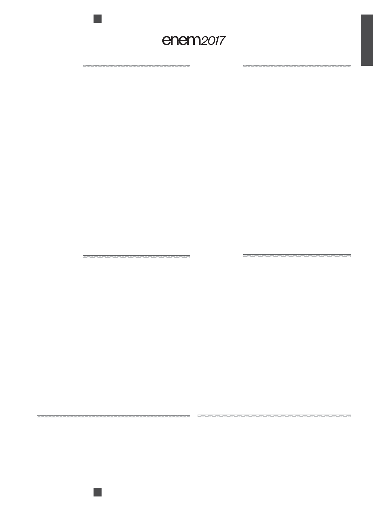CH - 1º dia | Caderno 2 - AMARELO - Página 23 QUESTÃO 56 O fenômeno da mobilidade populacional vem, desde as últimas décadas do século XX, apresentando só no Brasil como também em outras partes do mundo. Esses novos processos se materializam, entre outros aspectos, na dimensão interna, pelo redirecionamento detrimento dos grandes centros urbanos; pelos deslocamentos de curta duração e a distâncias menores; pelos movimentos pendulares, que passam a assumir maior relevância nas estratégias de sobrevivência, não mais restritos aos grandes aglomerados urbanos. OLIVEIRA, L. A. P.; OLIVEIRA, A. T. R. no Brasil. Rio de Janeiro: IBGE, 2011 (adaptado). no período apontado no texto, tem como causa a A descapitalização do setor primário. B ampliação da economia informal. C tributação da área residencial citadina. D desconcentração da atividade industrial. E saturação da empregabilidade no setor terciário. QUESTÃO 57 A participação da mulher no processo de decisão política ainda é extremamente limitada em praticamente todos os países, independentemente do regime econômico e social e da estrutura institucional vigente em cada um deles. É fato público e notório, além de empiricamente comprovado, que as mulheres estão em geral sub-representadas nos órgãos do poder, pois a proporção não corresponde jamais ao peso relativo dessa parte da população. Mulheres públicas: participação política e poder. Rio de Janeiro: Letra Capital, 2002. No âmbito do Poder Legislativo brasileiro, a tentativa de reverter esse quadro de sub-representação tem envolvido a implementação, pelo Estado, de A leis de combate à violência doméstica. B cotas de gênero nas candidaturas partidárias. C programas de mobilização política nas escolas. D propagandas de incentivo ao voto consciente. E QUESTÃO 58 Palestinos se agruparam em frente a aparelhos de televisão e telas montadas ao ar livre em Ramalah, na Cisjordânia, para acompanhar o voto da resolução que pedia o reconhecimento da chamada Palestina como um Estado observador não membro da Organização das Nações Unidas (ONU). O objetivo era esperar pelo nascimento, ao menos formal, de um Estado palestino. Depois da aprovação da resolução, centenas de pessoas foram à praça da cidade com bandeiras palestinas, pelas ruas. Aprovada com 138 votos dos 193 da Assembleia-Geral, a resolução eleva o status do Estado palestino perante a organização. Palestinos comemoram elevação de status na ONU com bandeiras e fogos. Disponível em: http://folha.com. Acesso em: 4 dez. 2012 (adaptado). A mencionada resolução da ONU referendou o(a) A delimitação institucional das fronteiras territoriais. B aumento da qualidade de vida da população local. C implementação do tratado de paz com os israelenses. D apoio da comunidade internacional à demanda nacional. E equiparação da condição política com a dos demais países. QUESTÃO 59 da Mina (Nagô de Nação), de nome Luiza Mahin, pagã, que sempre recusou o batismo e a doutrina cristã. Minha mãe era baixa de estatura, magra, bonita, a cor era de um preto retinto e sem lustro, tinha os dentes alvíssimos como a neve, era muito altiva, geniosa, insofrida. Dava-se ao comércio — era quitandeira, muito laboriosa e, mais de uma vez, na Bahia, foi presa como suspeita de envolver-se em planos de insurreição de escravos, que não tiveram efeito. CHALHOUB, S.; PEREIRA, L. A. M. A história contada: capítulos de história social da literatura no Brasil. Rio de Janeiro: Nova Fronteira, 1998 (adaptado). Nesse trecho de suas memórias, Luiz Gama ressalta a importância dos(as) A laços de solidariedade familiar. B estratégias de resistência cultural. C mecanismos de hierarquização tribal. D instrumentos de dominação religiosa. E limites da concessão de alforria. *SA0275AM23*