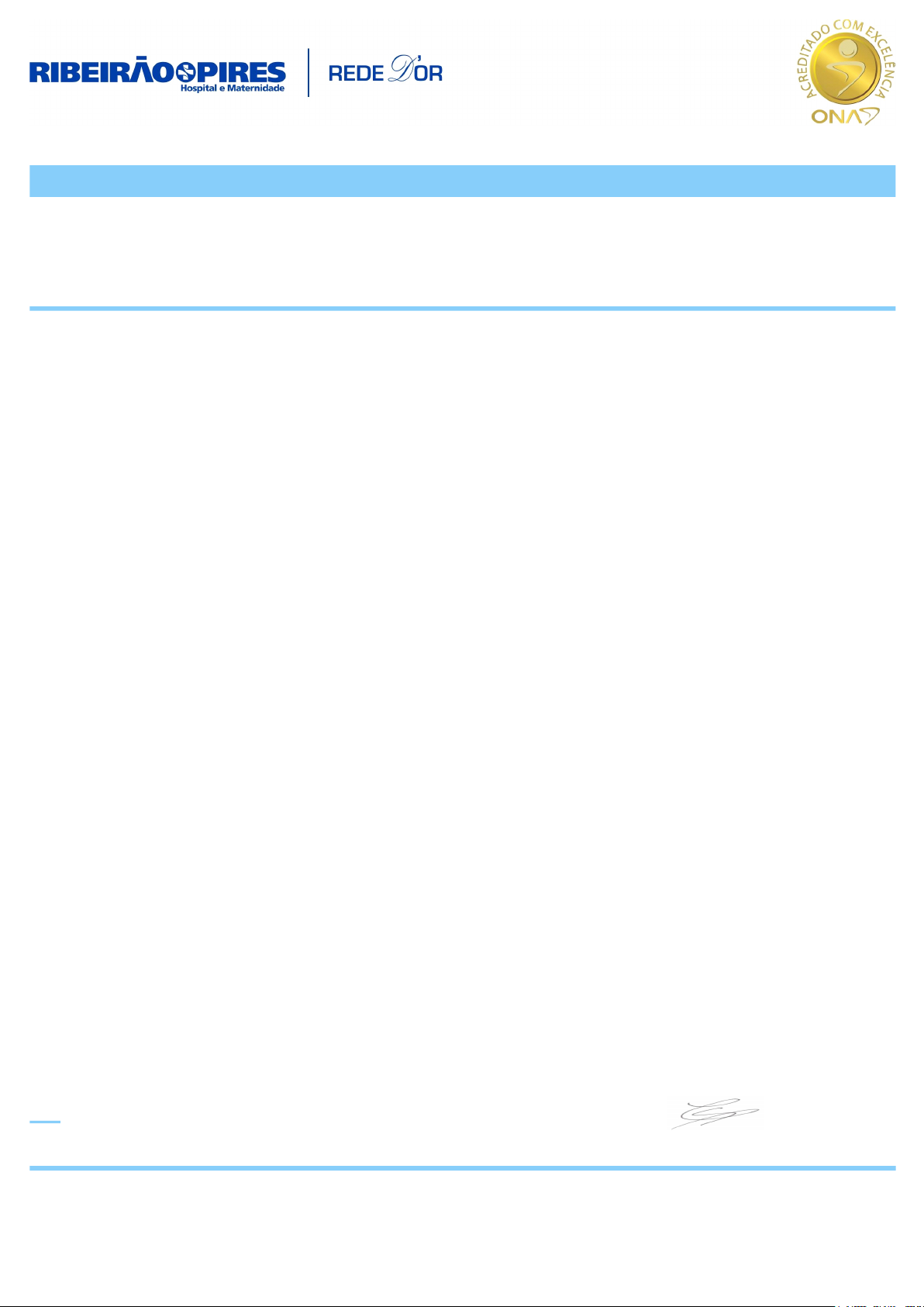 Exames de Análises Clínicas Paciente: 331960168 - LUIZ ALBERTO MACHADO GOIS MATHEUS RIGHI SANTANA SILVA / CRM- SP-190805 Nome Social: Solicitante: Data nasc: 11/10/1983 Sexo: MASCULINO Prontuário HIS: 92435353 Origem: HOSPITAL RIBEIRÃO PIRES Cadastro: Clínica:11/01/2025 LABORATORIO - HRP Pedido: Prescrição HIS: Quarto/Leito:32264093 LAB Emissão: 11/01/2025 21:17Registro HIS: 44454380 ASPARTATO AMINOTRANSFERASE (TGO/AST) Valor de referência Resultado: 56.0 U/L De 17 até 59 U/L Material: SORO Método : QUÍMICA SECA Hash laudo: F12466FCE6D4C5DDFD0831D01454413C7F70329BD05E12E760188EF56237D14B Coletado em(11/01/2025 09:06) Liberado em (11/01/2025 11:04) Liberação: Caroline Santiago Fernandes - CRBM-SP-37131 Visualize resultados de exames e faça agendamentos on-line na Área do Paciente Rede D’Or. Acesse: Caroline Santiago Fernandes - CRBM-SP-37131 www.rededorsaoluiz.com.br/paciente RESPONSÁVEL TÉCNICO Laboratório de Análises Clínicas - Rua Doutor Nicolau Assef, 52 - Centro Alto - Ribeirão Pires - CEP: 09424070 - Tel.: 55-11-48271000 www.rededorsaoluiz.com.br/paciente – CNPJ: 06047087009780 – CNES: 3580822 - Licença VISA: Observação Laboratório participante do Programa de Ensaio de Proficiência de Laboratório Clínico pela Controllab. Exames de laboratório são complementares e podem sofrer interferências pré-analíticas e analíticas por razões fisiológicas, patológicas, medicamentosas e metodológicas. A análise dos laudos e resultados exige cultura especializada e deve ser realizada pelo médico assistente. 1/2 Exames de Análises Clínicas Paciente: 331960168 - LUIZ ALBERTO MACHADO GOIS MATHEUS RIGHI SANTANA SILVA / CRM- SP-190805 Nome Social: Solicitante: Data nasc: 11/10/1983 Sexo: MASCULINO Prontuário HIS: 92435353 Origem: HOSPITAL RIBEIRÃO PIRES Cadastro: Clínica:11/01/2025 LABORATORIO - HRP Pedido: Prescrição HIS: Quarto/Leito:32264093 LAB Emissão: 11/01/2025 21:17Registro HIS: 44454380 LAUDO EVOLUTIVO RESULTADOS Hospital Ribeirão Pires 32264093ANALITOS VALORES DE REFERÊNCIA 11/01/2025 09:48 56.0 De 17 até 59 U/LTGO Valor de Referência: do resultado do pedido atual Resultado impresso na cor vermelha: resultado alterado (*): Resultado possui valor de referência diferente do atual Visualize resultados de exames e faça agendamentos on-line na Área do Paciente Rede D’Or. Acesse: Caroline Santiago Fernandes - CRBM-SP-37131 www.rededorsaoluiz.com.br/paciente RESPONSÁVEL TÉCNICO Laboratório de Análises Clínicas - Rua Doutor Nicolau Assef, 52 - Centro Alto - Ribeirão Pires - CEP: 09424070 - Tel.: 55-11-48271000 www.rededorsaoluiz.com.br/paciente – CNPJ: 06047087009780 – CNES: 3580822 - Licença VISA: Observação Laboratório participante do Programa de Ensaio de Proficiência de Laboratório Clínico pela Controllab. Exames de laboratório são complementares e podem sofrer interferências pré-analíticas e analíticas por razões fisiológicas, patológicas, medicamentosas e metodológicas. A análise dos laudos e resultados exige cultura especializada e deve ser realizada pelo médico assistente. 2/2