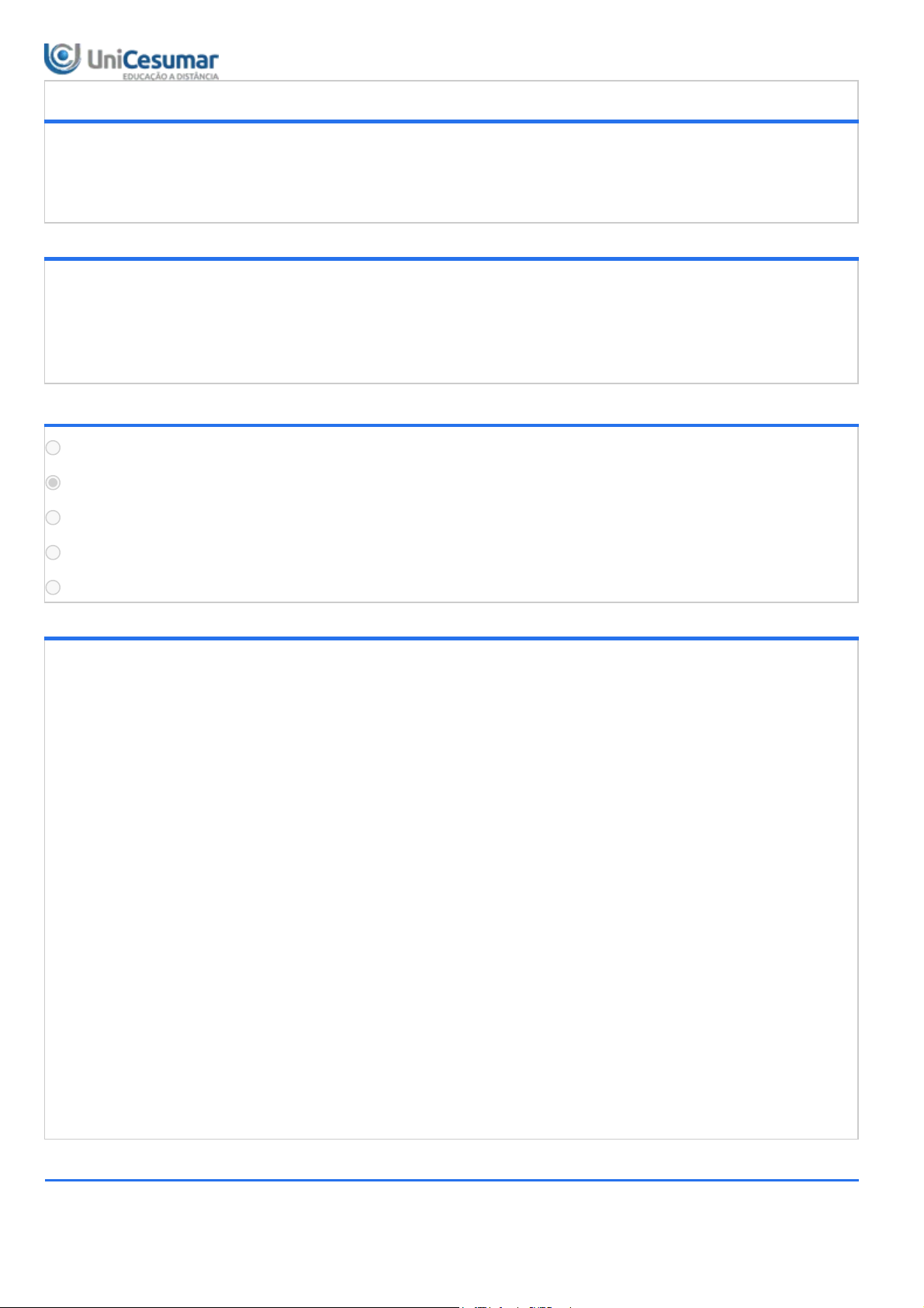 ATIVIDADE 2 - FUNDAMENTOS E ARQUITETURA DE COMPUTADORES - 51_2024 Período:03/03/2025 08:00 a 23/03/2025 23:59 (Horário de Brasília) Status:ABERTO Nota máxima:1,00 Gabarito:Gabarito será liberado no dia 24/03/2025 00:00 (Horário de Brasília) Nota obtida: 1ª QUESTÃO A notação posicional é um conceito fundamental na Arquitetura e Organização de Computadores, pois é a base para a representação de números em diversos sistemas numéricos, como decimal, binário, octal e hexadecimal. Nesse sistema, o valor de um dígito depende da posição que ele ocupa no número. Com base no exposto, qual é o valor do dígito "5" na representação decimal do número "753"? ALTERNATIVAS 5. 50. 500. 5.000. 0,05. 2ª QUESTÃO Os periféricos incluem todos os dispositivos que complementam o computador real. Uma distinção é feita entre dispositivos de entrada e saída: Dispositivos de entrada: teclado, mouse, scanner, câmera, tablet gráfico, microfone etc. Dispositivos de saída: impressoras, plotters, monitores e alto-falantes externos. Vários periféricos são dispositivos de saída e entrada ao mesmo tempo: pendrive, discos rígidos externos, unidades externas para CD/DVD, fone de ouvido etc. Sobre o exposto, analise as afirmativas a seguir: I. Do ponto de vista do PC, um dispositivo de saída é um dispositivo periférico para a saída de dados do computador. A saída refere-se ao processo de transporte de informações da CPU do computador para o mundo exterior. II. Um dispositivo de saída de um computador é capaz de receber informações ou dados de um computador e fornecê-los em formato de texto, visual ou áudio. O computador gerencia esses dispositivos através de um sistema operacional. III. O teclado, por exemplo, é um dispositivo de entrada; o computador recebe informações através de teclas. Uma impressora é um dispositivo de saída; o computador passa informações para a impressora. IV. Um armazenamento externo é um dispositivo de entrada e saída; o computador pode ler um arquivo de uma unidade de armazenamento ou escrever um arquivo para um disquete ou disco rígido. É correto o que se afirma em: ALTERNATIVAS 13/03/2025, 22:40 Unicesumar - Ensino a Distância about:blank 1/6 I e II, apenas. III e IV, apenas. I, II e III, apenas. II, III e IV, apenas. I, II, III e IV. 3ª QUESTÃO A álgebra booleana é essencial para a simplificação de expressões lógicas e para o entendimento do funcionamento dos circuitos digitais. Em relação às regras e propriedades da álgebra booleana, considere as afirmações a seguir: A propriedade comutativa da adição e da multiplicação estabelece que a ordem das variáveis não altera o resultado das operações. Ou seja, A + B = B + A e A . B = B . A. A propriedade associativa afirma que o agrupamento de variáveis em uma expressão lógica não afeta o resultado final. Isso significa que (A + B) + C = A + (B + C) e (A . B) . C = A . (B . C). A propriedade distributiva define que uma operação pode ser distribuída em relação a outra, de forma que A . (B + C) = (A . B) + (A . C) e A + (B . C) = (A + B) . (A + C). A propriedade de identidade estabelece que a presença de 0 ou 1 nas operações AND e OR não altera o valor da expressão. Ou seja, A . 1 = A, A + 0 = A, A . 0 = 0 e A + 1 = 1. A propriedade de complementação afirma que a operação lógica de um valor e seu complemento sempre resulta em 0 para AND e 1 para OR. Ou seja, A . ~A = 0 e A + ~A = 1. Fonte: NOEL, Andre A. Fundamentos e Arquitetura de Computadores. Maringá-Pr – UniCesumar, 2023 Com base nas afirmações acima, assinale a alternativa correta: ALTERNATIVAS Todas as propriedades listadas são aplicáveis apenas para expressões envolvendo duas variáveis. A propriedade de complementação afirma que a operação AND de uma variável e seu complemento resulta sempre em 1. A propriedade associativa permite a reordenação de variáveis em qualquer tipo de expressão lógica, sem afetar o resultado. A propriedade de identidade é irrelevante na simplificação de expressões lógicas, pois as variáveis 0 e 1 não afetam os resultados. A propriedade distributiva é fundamental para a simplificação de expressões lógicas, pois permite a reorganização das variáveis em termos de AND e OR. 4ª QUESTÃO A representação binária é um conceito fundamental na Arquitetura e Organização de Computadores, pois os computadores utilizam o sistema binário para representar informações. Nesse sistema de numeração posicional, os números são representados em base 2, utilizando apenas dois símbolos: 0 e 1. Com base no exposto, qual é a representação binária do número decimal 14? ALTERNATIVAS 13/03/2025, 22:40 Unicesumar - Ensino a Distância about:blank 2/6 1001. 1110. 1010. 1101. 1111. 5ª QUESTÃO A Unidade Central de Processamento ou CPU (Central Processing Unit), também conhecida como processador, é a parte de um sistema computacional, que realiza as instruções de um programa de computador, para executar a aritmética básica, lógica e a entrada e saída de dados. A CPU tem papel parecido ao cérebro no computador. O termo vem sendo usado desde o início de 1960. A forma, desenho e implementação mudaram drasticamente desde os primeiros exemplos, porém o seu funcionamento fundamental permanece o mesmo. Fonte: https://bityli.com/4Y17M. Acesso em: 12 fev. 2023. Sobre o funcionamento dos processadores, analise as afirmativas a seguir: I. O processador executa instruções e mais instruções. Cada instrução é executada dentro de um ciclo, que pode ser resumido em buscar-decodificar-executar. II. Dentro do processador há um dispositivo chamado relógio (termo em inglês clock) que gera pulsos cuja duração é chamada ciclo. III. A unidade de medida utilizada pelo clock é chamada de Megahertz (Mz), a qual 1 Mz significa 1 ciclo por segundo, 100 Mz significa 1000 ciclos por segundo. IV. As operações que ultrapassam o tempo do pulso do 
