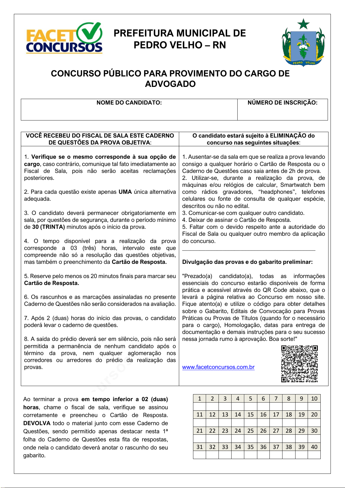 pcimarkpci MDAwMDowMDAwOjAwMDA6MDAwMDowMDAwOmZmZmY6OGE3YToxZjRj:VHVlLCAxOCBNYXIgMjAyNSAxMTozODoxOCAtMDMwMA== www.pciconcursos.com.br 1 PREFEITURA MUNICIPAL DE PEDRO VELHO – RN CONCURSO PÚBLICO PARA PROVIMENTO DO CARGO DE ADVOGADO NOME DO CANDIDATO: NÚMERO DE INSCRIÇÃO: VOCÊ RECEBEU DO FISCAL DE SALA ESTE CADERNO DE QUESTÕES DA PROVA OBJETIVA: O candidato estará sujeito à ELIMINAÇÃO do concurso nas seguintes situações: 1. Verifique se o mesmo corresponde à sua opção de cargo, caso contrário, comunique tal fato imediatamente ao Fiscal de Sala, pois não serão aceitas reclamações posteriores. 2. Para cada questão existe apenas UMA única alternativa adequada. 3. O candidato deverá permanecer obrigatoriamente em sala, por questões de segurança, durante o período mínimo de 30 (TRINTA) minutos após o início da prova. 4. O tempo disponível para a realização da prova corresponde a 03 (três) horas, intervalo este que compreende não só a resolução das questões objetivas, mas também o preenchimento da Cartão de Resposta. 5. Reserve pelo menos os 20 minutos finais para marcar seu Cartão de Resposta. 6. Os rascunhos e as marcações assinaladas no presente Caderno de Questões não serão considerados na avaliação. 7. Após 2 (duas) horas do início das provas, o candidato poderá levar o caderno de questões. 8. A saída do prédio deverá ser em silêncio, pois não será permitida a permanência de nenhum candidato após o término da prova, nem qualquer aglomeração nos corredores ou arredores do prédio da realização das provas. 1. Ausentar-se da sala em que se realiza a prova levando consigo a qualquer horário o Cartão de Resposta ou o Caderno de Questões caso saia antes de 2h de prova. 2. Utilizar-se, durante a realização da prova, de máquinas e/ou relógios de calcular, Smartwatch bem como rádios gravadores, “headphones”, telefones celulares ou fonte de consulta de qualquer espécie, descritos ou não no edital. 3. Comunicar-se com qualquer outro candidato. 4. Deixar de assinar o Cartão de Resposta. 5. Faltar com o devido respeito ante a autoridade do Fiscal de Sala ou qualquer outro membro da aplicação do concurso. ______________________________________________ Divulgação das provas e do gabarito preliminar: "Prezado(a) candidato(a), todas as informações essenciais do concurso estarão disponíveis de forma prática e acessível através do QR Code abaixo, que o levará a página relativa ao Concurso em nosso site. Fique atento(a) e utilize o código para obter detalhes sobre o Gabarito, Editais de Convocação para Provas Práticas ou Provas de Títulos (quando for o necessário para o cargo), Homologação, datas para entrega de documentação e demais instruções para o seu sucesso nessa jornada rumo à aprovação. Boa sorte!" www.facetconcursos.com.br 1 2 3 4 5 6 7 8 9 10 11 12 13 14 15 16 17 18 19 20 21 22 23 24 25 26 27 28 29 30 31 32 33 34 35 36 37 38 39 40 Ao terminar a prova em tempo inferior a 02 (duas) horas, chame o fiscal de sala, verifique se assinou corretamente e preencheu o Cartão de Resposta. DEVOLVA todo o material junto com esse Caderno de Questões, sendo permitido apenas destacar nesta 1ª folha do Caderno de Questões esta fita de respostas, onde nela o candidato deverá anotar o rascunho do seu gabarito. pcimarkpci MDAwMDowMDAwOjAwMDA6MDAwMDowMDAwOmZmZmY6OGE3YToxZjRj:VHVlLCAxOCBNYXIgMjAyNSAxMTozODoxOCAtMDMwMA== www.pciconcursos.com.br 2 CONCURSO PÚBLICO PREFEITURA MUNICIPAL DE PEDRO VELHO - RN ADVOGADO LÍNGUA PORTUGUESA 1. Leia o texto a seguir: Estudo realizado com 800 pares de gêmeos indica que DNA é o fator que mais influencia no bem-estar de uma pessoa – não o que ela vive durante a vida. O que mais influi na felicidade de uma pessoa? As experiências que ela tem durante a vida? Ou características previamente escritas em seu código genético? Essa discussão, que mobiliza a ciência há décadas, acaba de ser desequilibrada a favor de um lado: o DNA. Foi o que concluiu um estudo feito pela Universidade de Edimburgo, na Escócia, que analisou 837 pares de gêmeos. Cada par de gêmeos havia sido criado na mesma casa, pelos mesmos pais, e por isso teve experiências parecidas na vida. Metade dos gêmeos era univitelina, ou seja, com DNA idêntico, e a outra metade bivitelina, com DNA diferente. O objetivo do estudo foi comparar univitelinos e bivitelinos, e com isso identificar a influência do DNA sobre determinadas características do ser humano – inclusive de quem não é gêmeo. Os voluntários responderam a questionários que mediam vários aspectos do bem-estar psicológico, como o grau de autonomia da pessoa e sua capacidade de ter relacionamentos saudáveis. Os gêmeos univitelinos, de DNA igual, tiveram pontuação mais parecida que os bivitelinos – que têm DNA diferentes, mas cresceram no mesmo ambiente. Ou seja: na prática, o DNA influencia mais que o ambiente no grau de felicidade da pessoa. "Houve influências genéticas substanciais em todos os componentes", diz o psicólogo Timothy Bates, autor do estudo. "Já os efeitos do ambiente foram insignificantes". Em suma: cada pessoa tende a um nível natural de felicidade, que já vem programado no seu código genético. Lembre-se disso na próxima vez em que você estiver muito feliz – ou infeliz. Fonte: Superinteressante, Julho/2012. Após efetuar a leitura do texto, é correto afirmar que: I. O estudo realizado com gêmeos univitelinos e bivitelinos sugere que as experiências de vida têm um impacto significativo e indispensável no bem-estar psicológico dos indivíduos. II. A pesquisa conclui que a genética exerce uma influência preponderante sobre o grau de felicidade, em comparação ao ambiente em que a pessoa é criada. III. Os gêmeos univitelinos apresentaram pontuações de bem-estar psicológico mais similares entre si do que os gêmeos bivitelinos. IV. O estudo desconsidera a influência do ambiente na forma