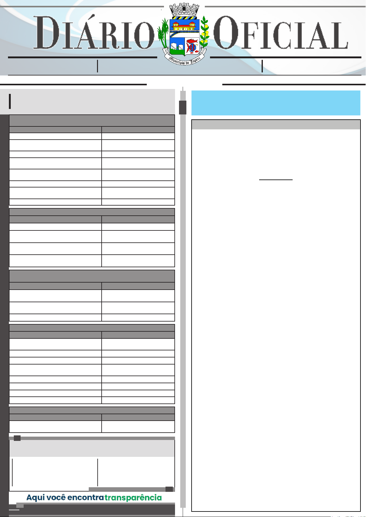 DO MUNICÍPIO DE JAPERI PODER EXECUTIVO PODER LEGISLATIVO DOJ (DIÁRIO OFICIAL DO MUNICÍPIO DE JAPERI) CRIADO PELA LEI 911 DE 10 DE JANEIRO DE 2001 www.japeri.rj.gov.br SEGUNDA-FEIRA, 17 DE MARÇO DE 2025 ANO XXIII - NÚMERO 5.814 PREFEITA: Fernanda Machado Ontiveros VICE PREFEITO: Carlos Roberto Januario DESENVOLVIMENTO PARA A GOVERNANÇA E MODERNIZAÇÃO DOS SERVIÇOS PÚBLICOS: SECRETARIA SECRETÁRIO GOVERNO WALLACE PAZ DE ARAGÃO CONTROLADORIA GERAL MARCELO ALVES HENRIQUE PINTO MOREIRA PROCURADORIA GERAL ELISABETE VALENTIM SILVA PLANEJAMENTO, ORÇAMENTO E GESTÃO DE RECURSOS ANDRÉA GUIMARÃES DE SOUZA FAZENDA PEDRO LUIZ DE CASTRO CARVALHO NETTO COMUNICAÇÃO ROGÉRIO SANT’ANA DA SILVA PROJETOS ESPECIAIS E CAPTAÇÃO DE RECURSOS ANDREIA CRISTINA RODRIGUES DE BRITO ADMINISTRAÇÃO TALITA DA SILVA CARDOSO DESENVOLVIMENTO URBANO E INFRAESTRUTURA: SECRETARIA SECRETÁRIO URBANISMO E HABITAÇÃO JOSÉ ÁUREO BASTOS VALENÇA OBRAS CRISTIANO DO NASCIMENTO ALVES SERVIÇOS PÚBLICOS ALESSANDRA GUIMARÃES DE SOUZA FERREIRA MOBILIDADE URBANA MARCELO DAMASCENO DE OLIVEIRA DESENVOLVIMENTO ECONÔMICO E SUSTENTABILIDADE AMBIENTAL: SECRETARIA SECRETÁRIO TRABALHO, RENDA, DESENVOLVIMENTO ECONÔMICO E TURISMO ALEX FERREIRA DOS SANTOS MEIO AMBIENTE E DESENVOLVIMENTO SUSTENTÁVEL MEIRE LUCY FONSECA MENEZES DOS SANTOS AGRICULTURA E PESCA JOSÉ MAURÍCIO DA SILVA DESENVOLVIMENTO SOCIAL INCLUSIVO: SECRETARIA SECRETÁRIO EDUCAÇÃO CAROLINE MACHADO ONTIVEROS CESPEDES SAÚDE ROBERTO PONTES ASSISTÊNCIA SOCIAL WALTER TRAJANO ALVES DIREITOS HUMANOS, PESSOAS COM DEFICIÊNCIA, MULHER E CIDADANIA LUIZ HENRIQUE PEREIRA XAVIER CULTURA DANIELLA MOREIRA BELIAGO ESPORTE E LAZER JANIEL CASTRO DE OLIVEIRA SEGURANÇA PÚBLICA LEONARDO RODRIGUES NEVES DEFESA CIVIL ZIEL PAVANI DE MESQUITA AUTARQUIAS E FUNDAÇÕES SECRETARIA SECRETÁRIO INSTITUTO DE PREVIDÊNCIA DOS SERVIDORES PÚBLICOS ANA CARMEM DE OLIVEIRA REIS CÂMARA MUNICIPAL DE JAPERI - 2025/2026 Vereadores: - ABNER SAMPAIO FERREIRA MADEIRA - CHARLES GONÇALVES SOARES - DANIELA DE CARVALHO BARROS - JOSÉ CARLOS DE SOUZA - LEANDRO DOS SANTOS MOURA - MARCOS VINICIUS SOUZA DA SILVA - MARLON DOS REIS SANTOS - MATEUS COUTINHO FERRAZ - ROGERIO GOMES CASTRO - WALLACE GOMES DOS SANTOS - YGOR PEREIRA BRAZ RIO PUBLICIDADE PRODUÇÕES Atos da Prefeita Poder Executivo DECRETO Nº. 3.625 DE 12 DE MARÇO DE 2025 “Abre Crédito Suplementar às dotações do orçamento vigente e dá provi- dências correlatas”. A PREFEITA MUNICIPAL DE JAPERI, no uso de suas atribuições cons- titucionais e com base na Lei nº 1604 de 06 de Novembro de 2024 (orça- mento vigente), que autoriza a abertura de novos Créditos Suplementares, D E C R E T A: Art. 1º - Fica aberto um Crédito Suplementar no valor de R$ 1.256.500,00 (um milhão e duzentos e cinquenta e seis mil e quinhentos reais) em favor das seguintes unidades orçamentárias: Procuradoria Geral Atividade – 00.09.01.04.122.0007.2014 3.1.90.91.99 – Outras Sentenças Judiciais .................................................. ..................................................................(ficha 304)............R$ 100.000,00 Secretaria Municipal de Urbanismo e Habitação Atividade – 00.18.01.15.451.0042.1054 4.4.90.51.99 – Outras Obras e Instalações ................................................... ..................................................................(ficha 634).........R$ 1.150.000,00 Secretaria Municipal de Direitos Humanos, Pessoa Com Deficiência, Mulher e Cidadania Atividade – 00.34.01.14.422.0182.2558 3.3.90.39.99 – Outros Serviços de Terceiros – Pessoa Jurídica ................... ..................................................................(ficha 921)................R$ 6.500,00 Total Geral ........................................................................R$ 1.256.500,00 Art. 2º. – Os recursos para atender ao Crédito Suplementar advirão das anulações parciais de acordo como inciso III, do parágrafo 1º no Art. 43º da Lei 4.320 de 17 de Março de 1964, das seguintes dotações: Procuradoria Geral Atividade – 00.09.01.04.122.0007.2014 3.3.90.91.99 – Outros Tipos de Sentenças Judiciais .................................... ..................................................................(ficha 320)............R$ 100.000,00 Secretaria Municipal de Obras Atividade – 00.06.01.15.451.0004.1011 4.4.90.51.99 – Outras Obras e Instalações ........................................ ...............................................................................(ficha 112)........R$ 1.150.000,00 Secretaria Municipal de Direitos Humanos, Pessoa Com Deficiência, Mulher e Cidadania Atividade – 00.34.01.04.122.0181.2557 4.4.90.52.99 – Outros Materiais Permanentes ............................................. ..................................................................(ficha 918)................R$ 6.500,00 Total Geral ........................................................................R$ 1.256.500,00 Art. 3º - Este decreto entra em vigor na data de sua publicação, revoga- das as disposições em contrário. Japeri, 12 de Março de 2025. FERNANDA MACHADO ONTIVEROS PREFEITA ANO XXIII - NÚMERO 5.814 - SEGUNDA-FEIRA, 17 DE MARÇO DE 2025 DO MUNICÍPIO DE JAPERI2 DECRETO N.º3626 DE 17 DE MARÇO DE 2025 DECLARA DE UTILIDADE PÚBLICA, PARA OS FINS DE DESA- PROPRIAÇÃO, OS IMÓVEIS QUE MENCIONA PARA CONSTRU- ÇÃO DE ESPAÇOS DE RECREAÇÃO E LAZER NO BAIRRO DE SANTA AMÉLIA – JAPERI. A PREFEITA DO MUNICÍPIO DE JAPERI, no uso das atribuições que lhe são conferidas por lei, e CONSIDERANDO que é direito social o lazer, sendo dever do Poder Públi- co incentiva- lo como forma de promoção social, nos termos do artigo 6°, caput e artigo 217, §3º da CRFB/1988; CONSIDERANDO que o Poder Público Municipal, no intuito de melhor atender à população japeriense, pretende aconstrução deespaços de la- zere recreação pública no bairro de Santa Amélia - Japeri; 