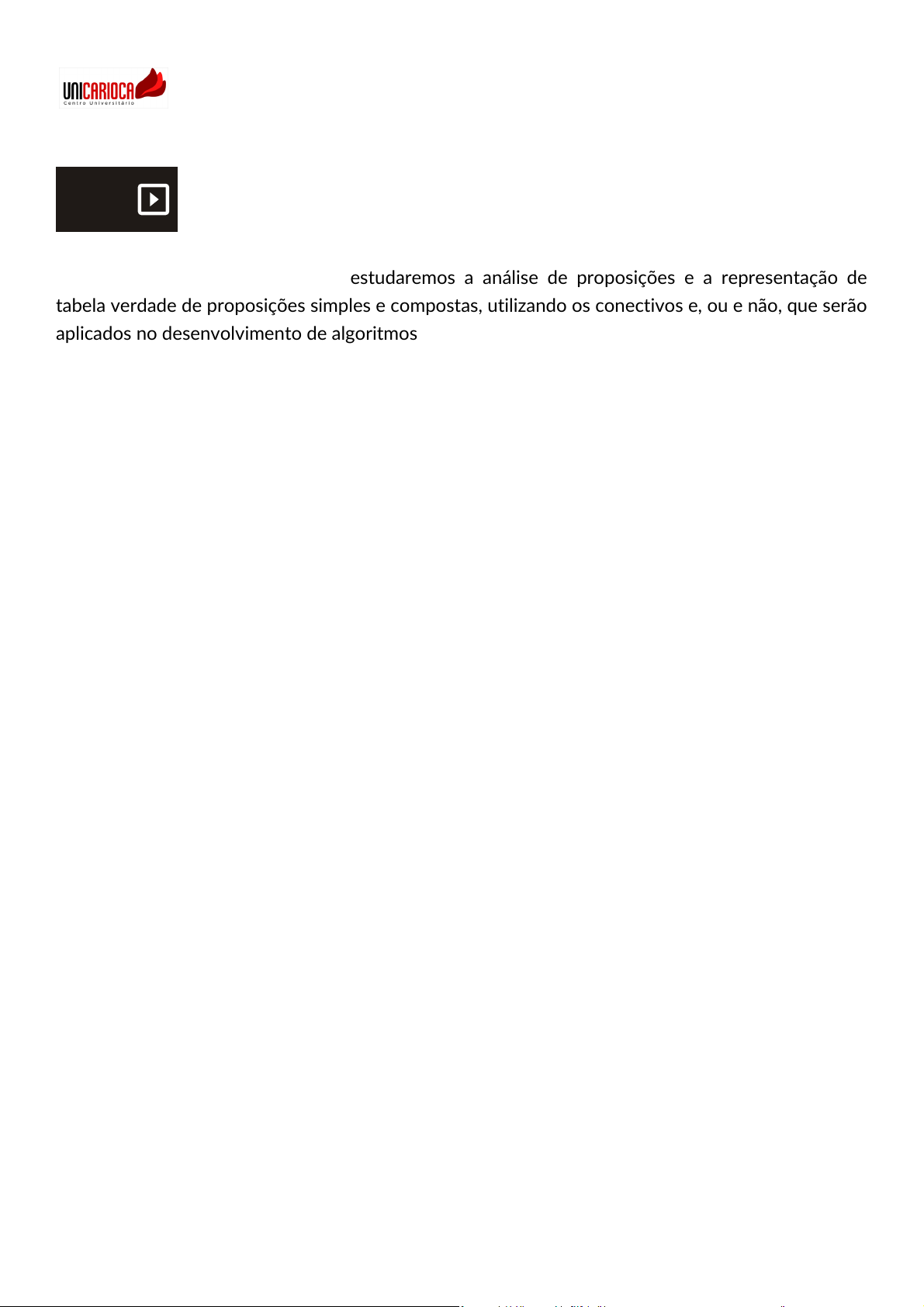 Aprendizagem. No capítulo selecionado, serão apresentados a tabela verdade e os operadores