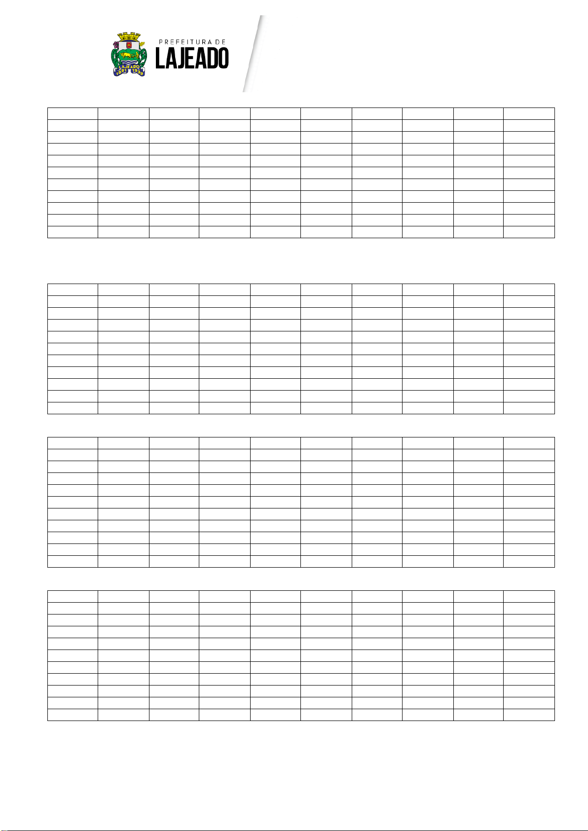 Secretaria Municipal de Administração CONCURSO PÚBLICO Nº 01/2018 Rua Cel. Júlio May, 242, Centro de Lajeado Telefone: (51) 3982-1000 – Site: www.lajeado.rs.gov.br Página 2 de 9 Execução: Legalle Concursos e Soluções Integradas Ltda. 1.1.2.3. Motorista de Ambulância Questão Gabarito Questão Gabarito Questão Gabarito Questão Gabarito Questão Gabarito 1 A 11 C 21 B 31 X 41 B 2 C 12 A 22 D 32 E 42 A 3 C 13 C 23 E 33 A 43 D 4 E 14 A 24 D 34 E 44 E 5 A 15 A 25 B 35 A 45 C 6 B 16 B 26 D 36 D 46 D 7 X 17 A 27 E 37 E 47 E 8 D 18 A 28 A 38 D 48 D 9 A 19 B 29 B 39 B 49 E 10 C 20 C 30 B 40 E 50 C 1.1.3. ENSINO MÉDIO 1.1.3.1. Agente Administrativo de Saúde Questão Gabarito Questão Gabarito Questão Gabarito Questão Gabarito Questão Gabarito 1 B 11 A 21 D 31 E 41 D 2 C 12 A 22 E 32 C 42 A 3 A 13 E 23 C 33 A 43 B 4 B 14 E 24 A 34 C 44 D 5 A 15 E 25 E 35 D 45 E 6 C 16 B 26 A 36 C 46 A 7 X 17 E 27 D 37 B 47 D 8 B 18 D 28 B 38 A 48 C 9 E 19 B 29 A 39 A 49 A 10 B 20 A 30 B 40 B 50 E 1.1.3.2. Agente Socioeducativo Questão Gabarito Questão Gabarito Questão Gabarito Questão Gabarito Questão Gabarito 1 B 11 A 21 D 31 E 41 D 2 C 12 A 22 E 32 D 42 E 3 A 13 E 23 C 33 A 43 E 4 B 14 E 24 A 34 E 44 E 5 A 15 E 25 E 35 E 45 E 6 C 16 B 26 A 36 E 46 A 7 X 17 E 27 D 37 E 47 C 8 B 18 D 28 B 38 B 48 D 9 E 19 B 29 A 39 D 49 E 10 B 20 A 30 B 40 D 50 B 1.1.3.3. Auxiliar de Administração Questão Gabarito Questão Gabarito Questão Gabarito Questão Gabarito Questão Gabarito 1 A 11 C 21 B 31 A 41 C 2 C 12 D 22 C 32 D 42 C 3 A 13 C 23 E 33 A 43 E 4 C 14 A 24 B 34 C 44 A 5 D 15 X 25 D 35 C 45 E 6 D 16 B 26 B 36 B 46 E 7 A 17 B 27 E 37 D 47 E 8 C 18 C 28 D 38 D 48 E 9 D 19 C 29 D 39 E 49 D 10 A 20 C 30 E 40 C 50 C