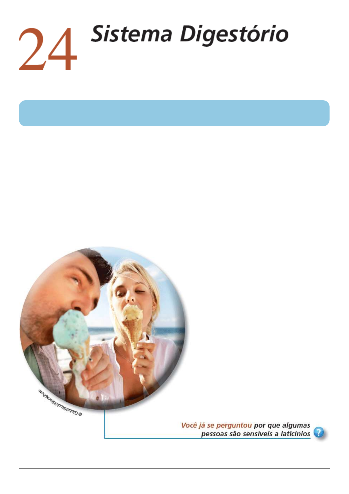 24.1 Sistema digestório e homeostasia O sistema digestório contribui para a homeostasia ao fragmentar os alimentos em substâncias que podem ser absorvidas e utilizadas pelas células do corpo. Também absorve água, vitaminas e minerais, e elimina escórias metabólicas do corpo. Os alimentos que consumimos contêm inúmeros nutrientes, que são utilizados para formar novos tecidos corporais e reparar tecidos danificados. A comida também é vital para a vida, porque é a nossa única fonte de energia química. No entanto, a maioria dos alimentos que consumimos são compostos por moléculas que são grandes demais para serem usadas pelas células do corpo. Portanto, os alimentos precisam ser clivados em moléculas que sejam pequenas o suficiente para entrar nas células, em um processo conhecido como digestão. Os órgãos envolvidos na fragmentação dos alimentos – coletivamente chamados sistema digestório – são o foco deste capítulo. Tal como o sistema respiratório, o sistema digestório é um sistema tubular. Ele se estende da boca ao ânus, forma uma grande área de superfície em contato com o ambiente externo, e apresenta correlação significativa com o sistema circulatório. A combinação da ampla exposição ambiental com a estreita associação com os vasos sanguíneos é essencial para o processamento do alimento que nós comemos. A especialidade médica que aborda a estrutura, a função, o diagnóstico e o tratamento das doenças do sistema digestório é chamada gastrenterologia. A especialidade médica que lida com o diagnóstico e tratamento das doenças do reto e do ânus é chamada proctologia. Aspectos gerais do sistema digestório • • 1. 2. 3. 4. 5. 6. OBJETIVOS Identificar os órgãos do sistema digestório Descrever os processos básicos realizados pelo sistema digestório. Dois grupos de órgãos compõem o sistema digestório (Figura 24.1): o canal alimentar1 e os órgãos digestórios acessórios. O canal alimentar é um tubo contínuo que se prolonga da boca ao ânus ao longo das cavidades torácica e abdominopélvica. Os órgãos do canal alimentar incluem a boca, a maior parte da faringe, o esôfago, o estômago, o intestino delgado e o intestino grosso. O comprimento do canal alimentar é de aproximadamente 5 a 7 m em uma pessoa viva em decorrência do tônus dos músculos da parede do canal alimentar). No cadáver, é mais longo (aproximadamente 7 a 9 m), por causa da perda do tônus muscular após a morte. Os órgãos digestórios acessórios incluem os dentes, a língua, as glândulas salivares, o fígado, a vesícula biliar e o pâncreas. Os dentes ajudam na fragmentação física dos alimentos, e a língua auxilia na mastigação e na deglutição. Os outros órgãos digestórios acessórios, no entanto, nunca entram em contato direto com os alimentos. Eles produzem ou armazenam secreções que fluem para o canal alimentar por meio de ductos; as secreções ajudam na decomposição química dos alimentos. O canal alimentar contém o alimento desde o momento em que ele é consumido até quando é digerido e absorvido ou eliminado. Contrações musculares na parede do canal alimentar fragmentam fisicamente os alimentos, agitandoos e impulsionandoos desde o esôfago até o ânus. As contrações também ajudam a dissolver os alimentos, misturandoos com os líquidos secretados no canal alimentar. As enzimas secretadas pelos órgãos digestórios acessórios e as células que revestem o canal alimentar fragmentam os alimentos quimicamente. FUNÇÕES DO SISTEMA DIGESTÓRIO Ingestão: colocação dos alimentos na cavidade oral. Secreção: liberação de água, ácido, tampões e enzimas para o lúmen do canal alimentar. Mistura e propulsão: agitação e movimento dos alimentos ao longo do canal alimentar. Digestão: fragmentação mecânica e química dos alimentos. Absorção: passagem dos produtos digeridos do canal alimentar para o sangue e linfa. Defecação: eliminação das fezes do canal alimentar. Figura 24.1 Órgãos do sistema digestório. Os órgãos do canal alimentar são a boca, a faringe, o esôfago, o estômago, o intestino delgado e o intestino grosso. Os órgãos digestórios acessórios incluem os dentes, a língua, as glândulas salivares, o fígado, a vesícula biliar e o pâncreas e estão indicados em vermelho. 1. 2. 3. 4. 5. 6. 1. 2. 3. Quais estruturas do sistema digestório secretam enzimas digestórias? Em geral, o sistema digestório executa seis processos básicos: Ingestão. Este processo envolve colocar os alimentos e líquidos na cavidade oral. Secreção. Diariamente, as células nas paredes do canal alimentar e nos órgãos digestórios acessórios secretam um total de aproximadamente 7 ℓ de água, ácido, tampões e enzimas para o lúmen do canal alimentar. Mistura e propulsão. Contração e relaxamento alternados do músculo liso das paredes do canal alimentar misturam os alimentos e secreções e movemnos em direção ao ânus. Esta capacidade do canal alimentar de misturar e mover o material ao longo do seu comprimento é chamada motilidade. Digestão. Processos mecânicos e químicos fragmentam os alimentos ingeridos em pequenas moléculas. Na digestão mecânica, os dentes cortam e trituram os alimentos antes de eles serem engolidos; em seguida, os músculos lisos do estômago e do intestino delgado agitam o alimento para ajudar ainda mais no processo. Como resultado, as moléculas do alimento são dissolvidas e bem misturadas às enzimas digestórias. Na digestão química, as grandes moléculas de carboidratos, lipídios, proteínas e ácidos nucleicos dos alimentos são clivadas em moléculas menores por meio da hidrólise (ver Figura 2.15). As enzimas digestórias produzidas pelas glândulas salivares, língua, estômago, pâncreas e intestino delgado catalisam essas reações catabólicas. Poucas substâncias dos alimentos podem ser absorvidas sem digestão química. Estas incluem as vitaminas, 