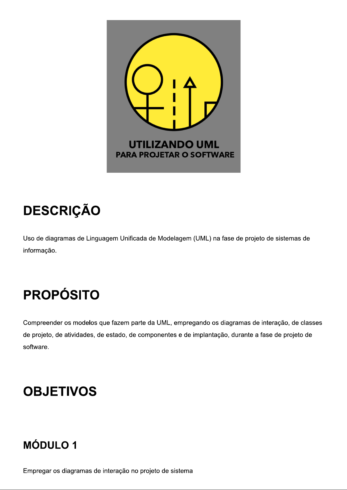 UTILIZANDO UML PARA PROJETAR SOFTWARE DESCRIÇÃO Uso de diagramas de Linguagem Unificada de Modelagem (UML) na fase de projeto de sistemas de informação. PROPÓSITO Compreender os modelos que fazem parte da UML, empregando os diagramas de interação, de classes de projeto, de atividades, de estado, de componentes e de implantação, durante a fase de projeto de software. OBJETIVOS MÓDULO 1 Empregar os diagramas de interação no projeto de sistemaMÓDULO 2 Revisar o diagrama de classes da análise no projeto de sistema MÓDULO 3 Empregar os diagramas de estado e de atividades no projeto de sistema MÓDULO 4 Empregar os diagramas de componentes e de implantação PREPARAÇÃO Antes de iniciar o conteúdo, é indicado que seja instalado em seu computador um programa que lhe permita elaborar modelos, sob a forma de diagramas da UML (Linguagem Unificada de Modelagem). Nossa sugestão inicial é o Astah Free Student License e será necessário usar seu e-mail institucional para ativar a licença. Preencha os dados do formulário no site do software, envie e aguarde a liberação de sua licença em seu e-mail. Ao recebê-la, siga as instruções e instale o produto em seu computador. Sugestões de links adicionais de programas livres para modelagem de sistemas em UML (UML Tools) podem ser encontradas em buscas na internet. INTRODUÇÃO A modelagem de um software pode, de fato, determinar a quantidade de problemas que terão que ser tratados durante o desenvolvimento. Softwares de sucesso, que têm sua implantação quase sem nenhum tipo de erro, certamente contaram com um bom processo de modelagem durante seu desenvolvimento. Ou seja, um bom produto de software é sempre concebido por um bom processo de desenvolvimento, iniciado com a modelagem do sistema.processo de desenvolvimento conta com diversos métodos e técnicas para que o produto tenha a melhor qualidade possível, sendo a modelagem uma das técnicas utilizadas. Modelar algo é construir uma representação abstrata de um artefato do mundo real. A modelagem conta com diversas regras e diretrizes que têm que ser respeitadas para se construir um modelo de qualidade para o software. Todas as funcionalidades implementadas pelo software, assim como todos os elementos de dados que utilize e as regras que devem ser seguidas, precisam ser pensadas, discutidas e estruturadas antes do início de sua construção, de modo que haja um completo entendimento de todo esse universo, não só por parte dos usuários, mas também dos Saber identificar cada característica do software durante seu projeto é importante para que venha de fato atender às necessidades dos usuários e cumprir com todas as regras a serem executadas por ele. Vamos entender como construir os diagramas ao longo da etapa de projeto (ou design) de software. Nesta parte do desenvolvimento, alguns outros diagramas já terão sido construídos e precisam ser respeitadas suas regras e definições. Para isso, vamos ver as técnicas de concepção e de modelagem desses diagramas, assim como seus atributos e modelos. Por fim, vamos apresentar e discutir como aplicá-los. MÓDULO 1 Objetivo: Empregar os diagramas de interação no projeto de sistema LIGANDO os PONTOS Como podemos transmitir para a equipe de desenvolvimento uma visão bem consolidada do fluxo de execução? Se você fosse responsável por essa tarefa, saberia fazer isso? Vamos entender melhor essa questão a seguir. Após a definição do descritivo de um caso de uso, devemos expressar o fluxo de execução de forma gráfica, contendo os atores e objetos participantes, segundo a sequência lógica de mensagens que são trocadas entre os envolvidos. Certamente, estamos nos referindo ao diagrama de sequência, que constitui o guia gráfico mais completo para a equipe de desenvolvimento no que se refere à programação do sistema. Cabe destacar que existe o diagrama de comunicação, que possui a mesma semântica e diferente Apesar de o diagrama de sequência oferecer, inicialmente, uma transposição direta do fluxo de execução descrito no caso de uso, aqui devem ser considerados elementos estruturais, como apresença de controladores e classes do tipo DAO (Data Access Object), levando ao acréscimo de objetos relacionados à arquitetura adotada. Este é um diagrama menos conceitual e muito mais próximo da implementação, que envolve elementos tecnológicos não considerados na análise inicial do negócio. Considerando o descritivo de caso de uso da busca de títulos em um sistema de streaming, dentro de uma arquitetura MVC (Model, View e Controller), teríamos, além do cliente que interage com o sistema, uma tela de busca, um controlador para as solicitações efetuadas e uma classe DAO para acesso ao banco. Teríamos ainda a entidade para representação de um registro, transportada em coleções entre as camadas da arquitetura. O processo é iniciado com o usuário digitando os valores e clicando no botão de busca, que, segundo a arquitetura, deverá enviar uma mensagem para o controlador com o texto parcial a ser encontrado. Aqui, já temos alguns pontos a considerar, como o uso de spring ou EJB (Enterprise Java Beans) e a adoção de um Session Bean como controlador padrão para este último. Analisando a próxima camada, o controlador deve comunicar-se com o DAO, que terá como responsabilidade a execução do comando SQL e o mapeamento objeto-relacional, com os registros convertidos em entidades. Novamente, o uso de frameworks pode modificar o diagrama, como na adoção do JPA (Java Persistence Architecture), onde as entidades são anotadas, para que o mapeamento seja automatizado. Além disso, precisamos de um EntityManager para efetuar as ações de consulta e persistência. O diagrama descrito pode ser observado a seguir: sd Sequence Diagram0 EntityManager TelaBusca 1 > 1.1 buscar(texto) 1.1.1: TituloDAO 1.1.2: findTitulo(texto) > 1.1.2.1.1 Query 1.1.2.2 > List > 1.1.2.3 > List > 1.1.3 > List exib