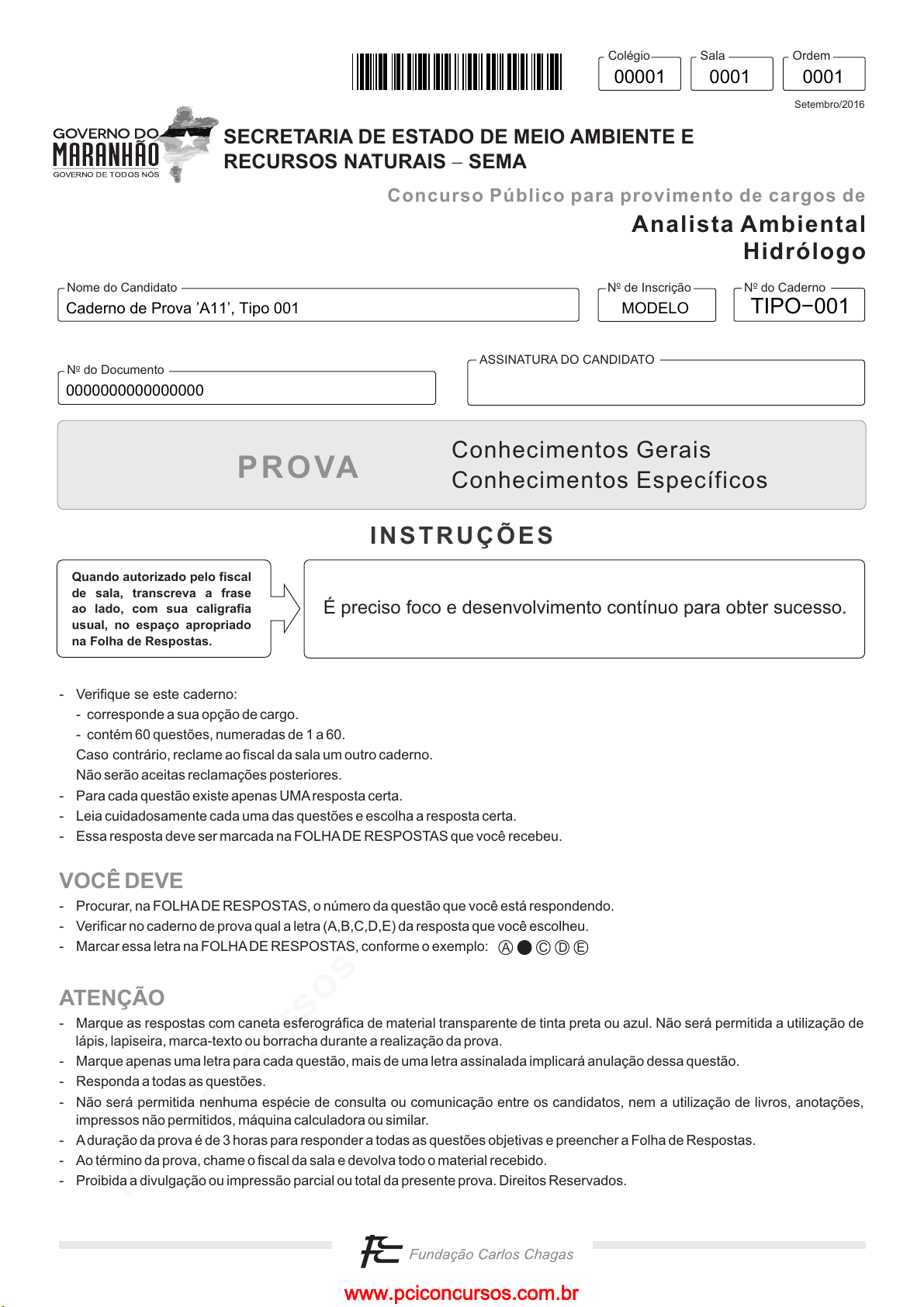 pcimarkpci MDAwMDowMDAwOjAwMDA6MDAwMDowMDAwOmZmZmY6OTU0ZTpiYjFk:V2VkLCAxOSBNYXIgMjAyNSAwMDozMzozOCAtMDMwMA== www.pciconcursos.com.br N do CadernooN de Inscriçãoo ASSINATURA DO CANDIDATO N do Documentoo Nome do Candidato Analista Ambiental Hidrólogo Concurso Público para provimento de cargos de Setembro/2016 Colégio Sala Ordem SECRETARIA DE ESTADO DE MEIO AMBIENTE E RECURSOS NATURAIS SEMA� Quando autorizado pelo fiscal de sala, transcreva a frase ao lado, com sua caligrafia usual, no espaço apropriado na Folha de Respostas. INSTRUÇÕES PROVA É preciso foco e desenvolvimento contínuo para obter sucesso. A C D E - Verifique se este caderno: - corresponde a sua opção de cargo. - contém 60 questões, numeradas de 1 a 60. Caso contrário, reclame ao fiscal da sala um outro caderno. Não serão aceitas reclamações posteriores. - Para cada questão existe apenas UMAresposta certa. - Leia cuidadosamente cada uma das questões e escolha a resposta certa. - Essa resposta deve ser marcada na FOLHADE RESPOSTAS que você recebeu. - Procurar, na FOLHADE RESPOSTAS, o número da questão que você está respondendo. - Verificar no caderno de prova qual a letra (A,B,C,D,E) da resposta que você escolheu. - Marcar essa letra na FOLHADE RESPOSTAS, conforme o exemplo: - Marque as respostas com caneta esferográfica de material transparente de tinta preta ou azul. Não será permitida a utilização de lápis, lapiseira, marca-texto ou borracha durante a realização da prova. - Marque apenas uma letra para cada questão, mais de uma letra assinalada implicará anulação dessa questão. - Responda a todas as questões. - Não será permitida nenhuma espécie de consulta ou comunicação entre os candidatos, nem a utilização de livros, anotações, impressos não permitidos, máquina calculadora ou similar. - Aduração da prova é de 3 horas para responder a todas as questões objetivas e preencher a Folha de Respostas. - Ao término da prova, chame o fiscal da sala e devolva todo o material recebido. - Proibida a divulgação ou impressão parcial ou total da presente prova. Direitos Reservados. VOCÊ DEVE ATENÇÃO Conhecimentos Gerais Conhecimentos Específicos Caderno de Prova ’A11’, Tipo 001 MODELO 0000000000000000 TIPO−001 00001 0001 0001 www.pciconcursos.com.br pcimarkpci MDAwMDowMDAwOjAwMDA6MDAwMDowMDAwOmZmZmY6OTU0ZTpiYjFk:V2VkLCAxOSBNYXIgMjAyNSAwMDozMzozOCAtMDMwMA== www.pciconcursos.com.br 2 SEMAD-Conhecimentos Gerais2 CONHECIMENTOS GERAIS Língua Portuguesa Atenção: Para responder às questões de números 1 a 7, considere o texto abaixo. A maioria das pessoas pensa que vai se aposentar cedo e desfrutar da vida, mas um estudo sugere que estamos fadados a nos aposentar cada vez mais tarde se quisermos manter um padrão de vida razoável. Em 2009, pesquisadores publicaram um estudo na revista Lancet e afirmaram que metade das pessoas nascidas após o ano 2000 vai viver mais de 100 anos e três quartos vão comemorar seus 75 anos. Até 2007 acreditávamos que a expectativa de vida das pessoas não passaria de 85 anos. Foi quando os japoneses ultrapassaram a expectativa para 86 anos. Na verdade, a expectativa de vida nos países desenvolvidos sobe linearmente desde 1840, indicando que ainda não atingimos um limite para o tempo de vida máximo para um ser humano. No início do século XX, as melhorias no controle das doenças infecciosas promoveram um aumento na sobrevida dos humanos, principalmente das crianças. E, depois da Segunda Guerra Mundial, os avanços da medicina no tratamento das enfermidades cardiovasculares e do câncer promoveram um ganho para os adultos. Em 1950, a chance de alguém sobreviver dos 80 aos 90 anos era de 10%; atualmente excede os 50%. O que agora vai promover uma sobrevida mais longa e com mais qualidade será a mudança de hábitos. A Dinamarca era em 1950 um dos países com a mais longa expectativa de vida. Porém, em 1980 havia despencado para a 20 a posição, devido ao tabagismo. O controle da ingestão de sal e açúcar, e a redução dos vícios como cigarro e álcool, além de atividade física, vão determinar uma nova onda do aumento de expectativa de vida. A própria qualidade de vida, medida por anos de saúde plena, deve mudar para melhor nas próximas décadas. O próximo problema a ser enfrentado é a falta de dinheiro para as últimas décadas de vida: estamos nos aposentando muito cedo e o que juntamos não será o suficiente. Precisamos guardar 10% do salário anual e nos aposentar aos 80 anos para que a independência econômica acompanhe a independência física na aposentadoria. Os pesquisadores propõem que a idade de aposentadoria seja alongada e que os sexagenários mudem seu raciocínio: em vez de pensar na aposentadoria, que passem a mirar uma promoção. (Adaptado de: TUMA, Rogério. Disponível em: http://www.cartacapital.com.br/revista/911/o-contribuinte-secular) 1. Infere-se corretamente do texto: (A) O aumento da expectativa de vida no século XXI resulta de importantes avanços da medicina, seja com o desenvolvi- mento de vacinas para controlar infecções, como com o aprimoramento das técnicas para tratar as doenças cardiovascu- lares. (B) Países economicamente ultradesenvolvidos como a Dinamarca exibem não apenas as mais altas expectativas de vida, como também uma melhora constante na qualidade de vida de seus habitantes. (C) Ainda que esteja previsto um aumento na qualidade de vida dos idosos nas próximas décadas, existe o risco de que a saúde física dos aposentados não esteja acompanhada de independência financeira. (D) Para não sofrer com a perda da saúde física nas últimas décadas da vida, os aposentados devem criar estratégias cognitivas para que possam usufruir de plenas opções de socialização e divertimento nesta fase. (E) Uma das causas da Segunda Guerra Mundial foi o aumento da longevidade da geração que a sucedeu, especialmente o da japonesa, que superou a meta estabelecida, o que