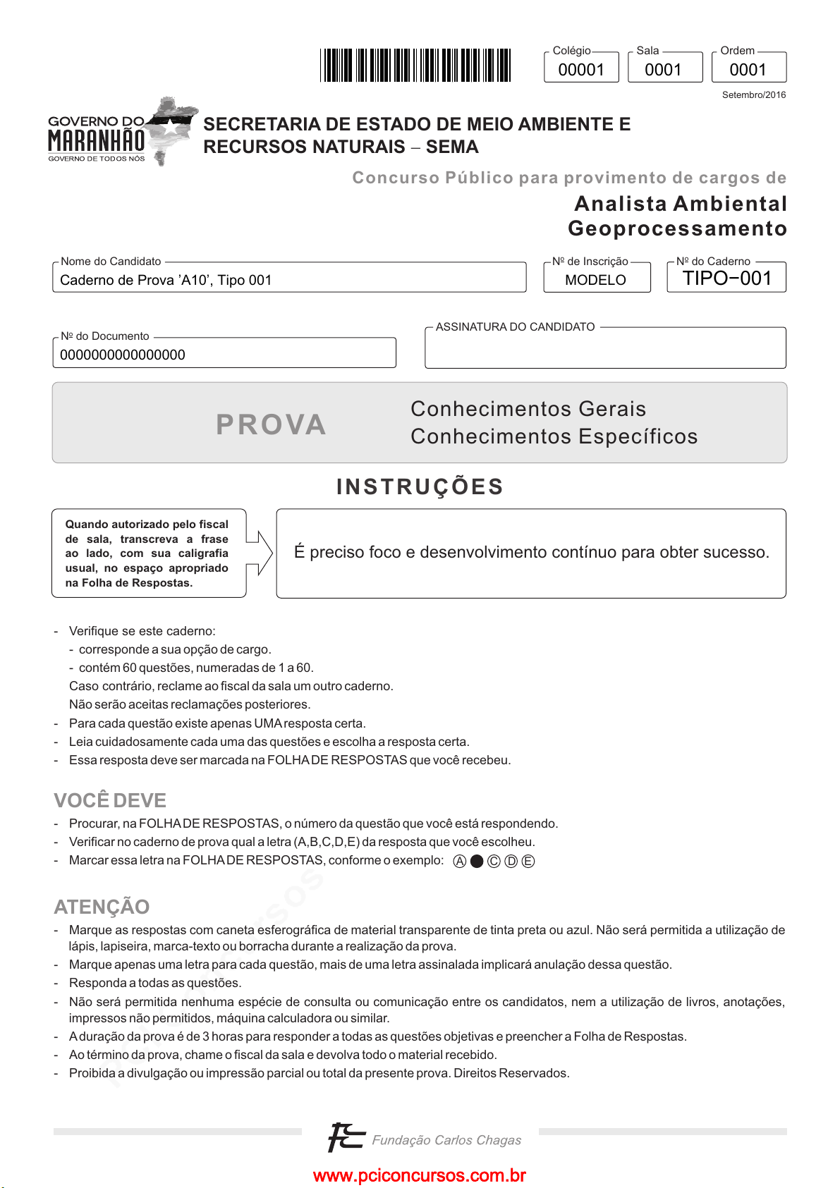 pcimarkpci MDAwMDowMDAwOjAwMDA6MDAwMDowMDAwOmZmZmY6OTU0ZTpiYjFk:V2VkLCAxOSBNYXIgMjAyNSAwMDozMzozMiAtMDMwMA== www.pciconcursos.com.br N do CadernooN de Inscriçãoo ASSINATURA DO CANDIDATO N do Documentoo Nome do Candidato Analista Ambiental Geoprocessamento Concurso Público para provimento de cargos de Setembro/2016 Colégio Sala Ordem SECRETARIA DE ESTADO DE MEIO AMBIENTE E RECURSOS NATURAIS SEMA� Quando autorizado pelo fiscal de sala, transcreva a frase ao lado, com sua caligrafia usual, no espaço apropriado na Folha de Respostas. INSTRUÇÕES PROVA É preciso foco e desenvolvimento contínuo para obter sucesso. A C D E - Verifique se este caderno: - corresponde a sua opção de cargo. - contém 60 questões, numeradas de 1 a 60. Caso contrário, reclame ao fiscal da sala um outro caderno. Não serão aceitas reclamações posteriores. - Para cada questão existe apenas UMAresposta certa. - Leia cuidadosamente cada uma das questões e escolha a resposta certa. - Essa resposta deve ser marcada na FOLHADE RESPOSTAS que você recebeu. - Procurar, na FOLHADE RESPOSTAS, o número da questão que você está respondendo. - Verificar no caderno de prova qual a letra (A,B,C,D,E) da resposta que você escolheu. - Marcar essa letra na FOLHADE RESPOSTAS, conforme o exemplo: - Marque as respostas com caneta esferográfica de material transparente de tinta preta ou azul. Não será permitida a utilização de lápis, lapiseira, marca-texto ou borracha durante a realização da prova. - Marque apenas uma letra para cada questão, mais de uma letra assinalada implicará anulação dessa questão. - Responda a todas as questões. - Não será permitida nenhuma espécie de consulta ou comunicação entre os candidatos, nem a utilização de livros, anotações, impressos não permitidos, máquina calculadora ou similar. - Aduração da prova é de 3 horas para responder a todas as questões objetivas e preencher a Folha de Respostas. - Ao término da prova, chame o fiscal da sala e devolva todo o material recebido. - Proibida a divulgação ou impressão parcial ou total da presente prova. Direitos Reservados. VOCÊ DEVE ATENÇÃO Conhecimentos Gerais Conhecimentos Específicos Caderno de Prova ’A10’, Tipo 001 MODELO 0000000000000000 TIPO−001 00001 0001 0001 www.pciconcursos.com.br pcimarkpci MDAwMDowMDAwOjAwMDA6MDAwMDowMDAwOmZmZmY6OTU0ZTpiYjFk:V2VkLCAxOSBNYXIgMjAyNSAwMDozMzozMiAtMDMwMA== www.pciconcursos.com.br 2 SEMAD-Conhecimentos Gerais2 CONHECIMENTOS GERAIS Língua Portuguesa Atenção: Para responder às questões de números 1 a 7, considere o texto abaixo. A maioria das pessoas pensa que vai se aposentar cedo e desfrutar da vida, mas um estudo sugere que estamos fadados a nos aposentar cada vez mais tarde se quisermos manter um padrão de vida razoável. Em 2009, pesquisadores publicaram um estudo na revista Lancet e afirmaram que metade das pessoas nascidas após o ano 2000 vai viver mais de 100 anos e três quartos vão comemorar seus 75 anos. Até 2007 acreditávamos que a expectativa de vida das pessoas não passaria de 85 anos. Foi quando os japoneses ultrapassaram a expectativa para 86 anos. Na verdade, a expectativa de vida nos países desenvolvidos sobe linearmente desde 1840, indicando que ainda não atingimos um limite para o tempo de vida máximo para um ser humano. No início do século XX, as melhorias no controle das doenças infecciosas promoveram um aumento na sobrevida dos humanos, principalmente das crianças. E, depois da Segunda Guerra Mundial, os avanços da medicina no tratamento das enfermidades cardiovasculares e do câncer promoveram um ganho para os adultos. Em 1950, a chance de alguém sobreviver dos 80 aos 90 anos era de 10%; atualmente excede os 50%. O que agora vai promover uma sobrevida mais longa e com mais qualidade será a mudança de hábitos. A Dinamarca era em 1950 um dos países com a mais longa expectativa de vida. Porém, em 1980 havia despencado para a 20 a posição, devido ao tabagismo. O controle da ingestão de sal e açúcar, e a redução dos vícios como cigarro e álcool, além de atividade física, vão determinar uma nova onda do aumento de expectativa de vida. A própria qualidade de vida, medida por anos de saúde plena, deve mudar para melhor nas próximas décadas. O próximo problema a ser enfrentado é a falta de dinheiro para as últimas décadas de vida: estamos nos aposentando muito cedo e o que juntamos não será o suficiente. Precisamos guardar 10% do salário anual e nos aposentar aos 80 anos para que a independência econômica acompanhe a independência física na aposentadoria. Os pesquisadores propõem que a idade de aposentadoria seja alongada e que os sexagenários mudem seu raciocínio: em vez de pensar na aposentadoria, que passem a mirar uma promoção. (Adaptado de: TUMA, Rogério. Disponível em: http://www.cartacapital.com.br/revista/911/o-contribuinte-secular) 1. Infere-se corretamente do texto: (A) O aumento da expectativa de vida no século XXI resulta de importantes avanços da medicina, seja com o desenvolvi- mento de vacinas para controlar infecções, como com o aprimoramento das técnicas para tratar as doenças cardiovascu- lares. (B) Países economicamente ultradesenvolvidos como a Dinamarca exibem não apenas as mais altas expectativas de vida, como também uma melhora constante na qualidade de vida de seus habitantes. (C) Ainda que esteja previsto um aumento na qualidade de vida dos idosos nas próximas décadas, existe o risco de que a saúde física dos aposentados não esteja acompanhada de independência financeira. (D) Para não sofrer com a perda da saúde física nas últimas décadas da vida, os aposentados devem criar estratégias cognitivas para que possam usufruir de plenas opções de socialização e divertimento nesta fase. (E) Uma das causas da Segunda Guerra Mundial foi o aumento da longevidade da geração que a sucedeu, especialmente o da japonesa, que superou a meta estabelecida,