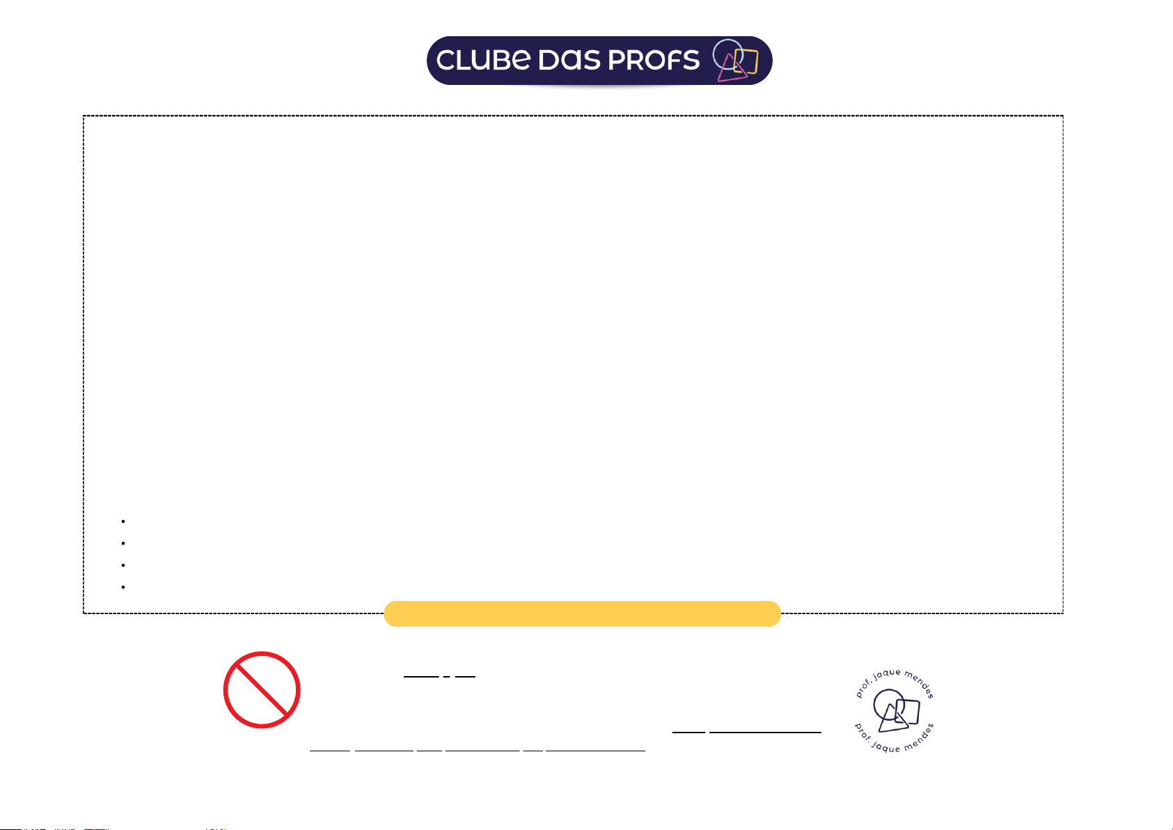 Stop da Interpretação Recursos inteligentes para aulas brilhantes. SEJA O EXEMPLO DE HONESTIDADE E INTEGRIDADE. Compartilhar esses materiais sem autorização é uma prática ilegal e antiética, comparável à corrupção! De acordo com a Lei nº 9.610, que regula os direitos autorais no Brasil, a violação desses direitos é crime. O artigo 184 estabelece que a pena para este crime é detenção, de 3 (três) meses a 1 (um) ano, ou multa. Aproveite seu recurso, torne o aprendizado mais envolvente e prático, economizando seu tempo na preparação das aulas! Passo a Passo de Aplicação: Entregue uma folha de "Stop" para cada aluno ou, se preferir, organize a turma em pequenos grupos e entregue uma folha por grupo. Explique brevemente as categorias, caso necessário. 1. Leia o texto escolhido em voz alta para a turma. 2. Explique que os alunos devem preencher as categorias na folha de "Stop" com base nas informações do texto (o objetivo é refletir e compreender, não competir por quem termina primeiro). 3. Estabeleça um tempo específico para que os alunos completem as categorias, como 3 minutos. Use um cronômetro para ajudar a manter o controle do tempo. 4. Após o tempo, peça para que os alunos troquem suas folhas com um colega ou grupo próximo para correção.5. Leia o gabarito das respostas corretas ou releia o texto destacando as respostas. Peça para que os alunos corrijam as folhas que receberam, comparando com as respostas corretas. 6. Conduza uma breve discussão sobre o que aprenderam com a atividade. Pergunte sobre as dificuldades encontradas e as estratégias que usaram para interpretar o texto. Benefícios da Atividade: Atenção e Concentração Interpretação de Texto Trabalho em Equipe Reflexão Crítica PERSONAGEM PRINCIPAL PERSONAGEM SECUNDÁRIO SENTIMENTO DO PERSONAGEM PRINCIPAL OBJETO IMPORTANTE LOCALIZAÇÃO PROBLEMA SOLUÇÃO Nome: Professor (a): Data: Turma: STOP DA INTERPRETAÇÃOSTOP DA INTERPRETAÇÃO Escute a leitura do texto atentamente e preencha as categorias com as informações corretas! Na biblioteca da escola, Mariana adorava passar suas tardes lendo. Um dia, ela percebeu que seu livro favorito havia desaparecido. Mariana ficou triste e começou a procurar por toda a biblioteca. O problema era que ela precisava devolver o livro no dia seguinte. Com a ajuda do bibliotecário, Sr. Carlos, eles procuraram em todas as prateleiras. Finalmente, encontraram o livro em uma seção errada. Mariana ficou aliviada e prometeu ser mais cuidadosa. O Mistério do Livro Desaparecido Personagem Principal: Mariana Personagem Secundário: Sr. Carlos Sentimento do Personagem Principal: Triste e/ou aliviada Objeto Importante: Livro Localização: Biblioteca Problema: Livro desaparecido Solução: Buscar em outras seções GABARITO: Lucas e seu melhor amigo, Tiago, decidiram passar o dia no parque. Lucas estava empolgado para brincar com seu novo avião de controle remoto. No entanto, o problema surgiu quando o avião ficou preso em uma árvore alta. Com a ajuda de um guarda do parque, eles conseguiram usar uma vara longa para soltar o avião. Lucas ficou feliz por ter seu brinquedo de volta e agradeceu ao guarda pela ajuda. A Aventura no Parque Personagem Principal: Lucas Personagem Secundário: Tiago ou guarda Sentimento do Personagem Principal: Empolgado ou feliz Objeto Importante: Avião de controle remoto Localização: Parque Problema: Avião preso na árvore Solução: Usar uma vara para soltar o avião GABARITO: Sofia estava se preparando para a grande corrida da escola. Ela estava nervosa porque queria muito ganhar. Durante a corrida, seu tênis desamarrou, e ela quase caiu. O problema era que ela estava perdendo tempo ao parar para amarrá-lo. Com a ajuda de sua amiga Ana, que estava assistindo, Sofia conseguiu amarrar o tênis rapidamente e voltou à corrida. Ela terminou em segundo lugar e ficou orgulhosa de si mesma por não desistir. O Desafio da Corrida Personagem Principal: Sofia Personagem Secundário: Ana Sentimento do Personagem Principal: Nervosa ou orgulhosa Objeto Importante: Tênis Localização: Escola Problema: Tênis desamarrou Solução: Amarrar o tênis GABARITO: Clara adorava passar as tardes no jardim da sua avó. Um dia, enquanto regava as plantas, ela encontrou uma chave dourada enterrada perto das roseiras. Curiosa, Clara começou a procurar pela fechadura que a chave poderia abrir. Após explorar o jardim inteiro, ela descobriu uma pequena porta escondida atrás de um arbusto. Ao abrir a porta, encontrou um baú cheio de cartas antigas e fotos da juventude de sua avó. Clara percebeu que havia descoberto um pedaço importante da história da sua família. O Segredo do Jardim Personagem Principal: Clara Personagem Secundário: Avó Sentimento do Personagem Principal: Curiosa ou emocionada Objeto Importante: Chave dourada ou baú Localização: Jardim da avó Problema: Encontrar a fechadura da chave Solução: Descobrir a porta escondida ou abrir o baú GABARITO: Pedro estava preocupado porque seu gato, Bolinha, não voltava para casa há dois dias. Ele decidiu procurar pelo bairro, perguntando aos vizinhos se alguém tinha visto seu gato. Durante a busca, Pedro encontrou pistas que o levaram até o parque. Lá, ele encontrou Bolinha preso em uma árvore, incapaz de descer. Com a ajuda de um amigo e uma escada, Pedro conseguiu resgatar Bolinha e levá-lo de volta para casa, aliviado por ter encontrado seu amigo peludo. O Mistério do Gato Desaparecido Personagem Principal: Pedro Personagem Secundário: Amigo de Pedro ou Bolinha Sentimento do Personagem Principal: Preocupado ou aliviado Objeto Importante: Escada Localização: Parque Problema: Gato desaparecido Solução: Encontrar o gato e o resgatar da árvore GABARITO: Ana estava triste porque achava que seus amigos tinham esquecido seu aniversário. Durante o dia, ninguém mencionou a data especial, o que a deixou ainda mais desanimada. No entanto, ao chegar em casa, Ana foi surp