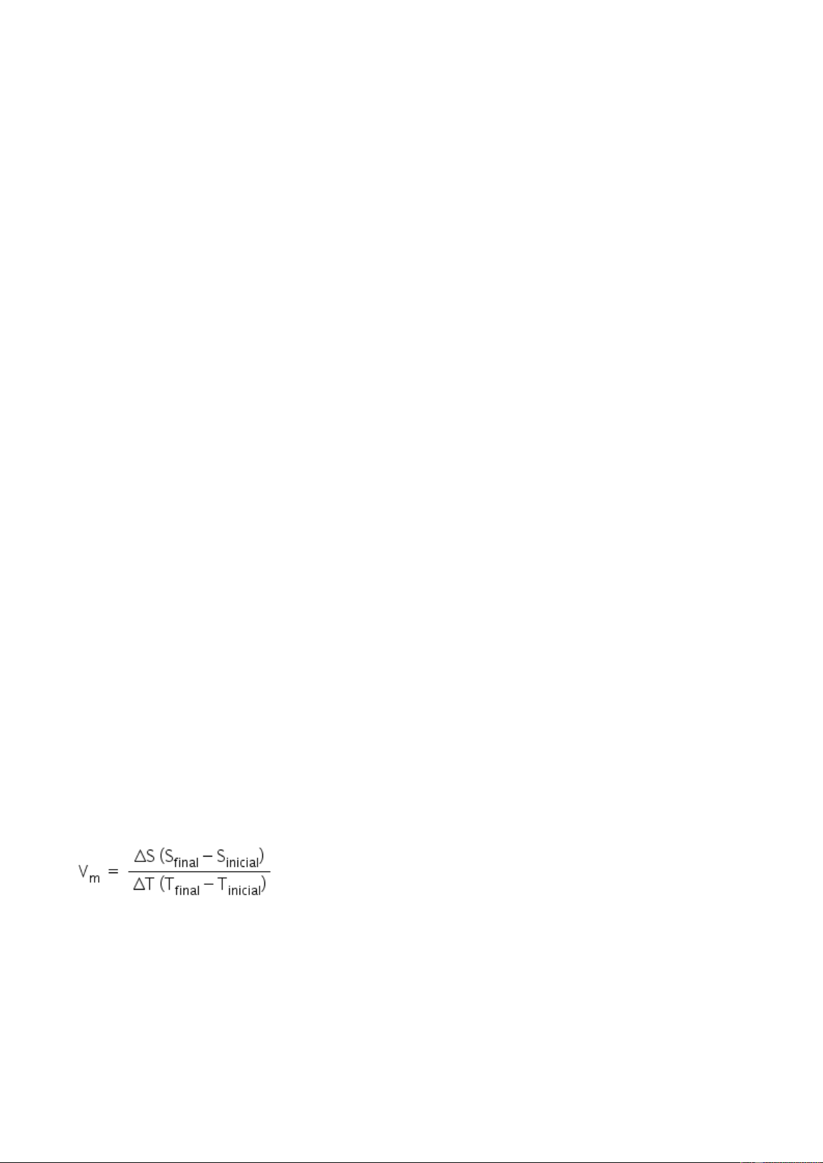 Cinemática • Estuda o movimento dos corpos em trajetórias retilíneas (linha reta) e trajetórias circulares sem levar em consideração o que os provocou. Tipos de cinemática: • Cinemática escalar: não considera a análise vetorial (direção e sentido) do movimento. (direção – determina é horizontal, vertical ou diagonal. sentido – indica para qual lado vai se locomover) • Cinemática vetorial: considera a análise vetorial do movimento. Conceitos fundamentais: • Referencial: determina se o objeto está em movimento ou repouso. • Movimento: mudança de posição. • Repouso: quando o somatório das forças atuantes sobre um corpo é nulo. • Trajetória: linha que determina a posição do objeto ao decorrer do tempo. • Deslocamento: distância entre início e o final da trajetória. • Ponto material: corpo (definido como tudo aquilo que é dotado de massa) cujas dimensões não interferem no estudo do movimento. • Corpo extenso: corpo cujas dimensões são importantes para o entender o movimento. Velocidade – é a rapidez com que um corpo se move. Aceleração – é a rapidez com que a velocidade muda (aumenta ou de diminui). Tipos de movimento: • Movimento retilíneo uniforme (MRU): os corpos se movimentam com velocidade constante em linha reta, a aceleração é nula. • Movimento retilíneo uniformemente variado (MRUV): aceleração constante e não nula em linha reta. • Movimento circular uniforme (MCU): os corpos se movimentam com velocidade constante em trajetória circular. • Movimento circular uniformemente variado (MCUV): aceleração constante em trajetória circular. Fórmulas da Cinemática → Velocidade média: Vm → velocidade média [m/s]. ∆S → deslocamento de posição [m]. Sf → posição final [m]. Si → posição inicial [m]. ∆t → variação de tempo [s]. tf → tempo final [s]. ti→ tempo inicial [s]. Exercícios: Questão 01 – Um ônibus parte às 15 h de São Paulo com destino ao Rio de Janeiro e previsão de chegada às 21 h. Calcule a velocidade média, em m/s dessa viagem com distância de 450 km? Km/h para m/s – divide o valor por 3,6 Questão 02 – Qual é a velocidade escalar média, em km/h, de uma pessoa que percorre a pé 1200 m em 20 min? Questão 03 – Uma pessoa, correndo, percorre 4,0 km com velocidade escalar média de 12 km/h. Qual o tempo do percurso em minutos? Questão 04 – Um carro mantém uma velocidade constante de 72,0 km/h. Em uma hora e dez minutos ele percorrerá qual distância?