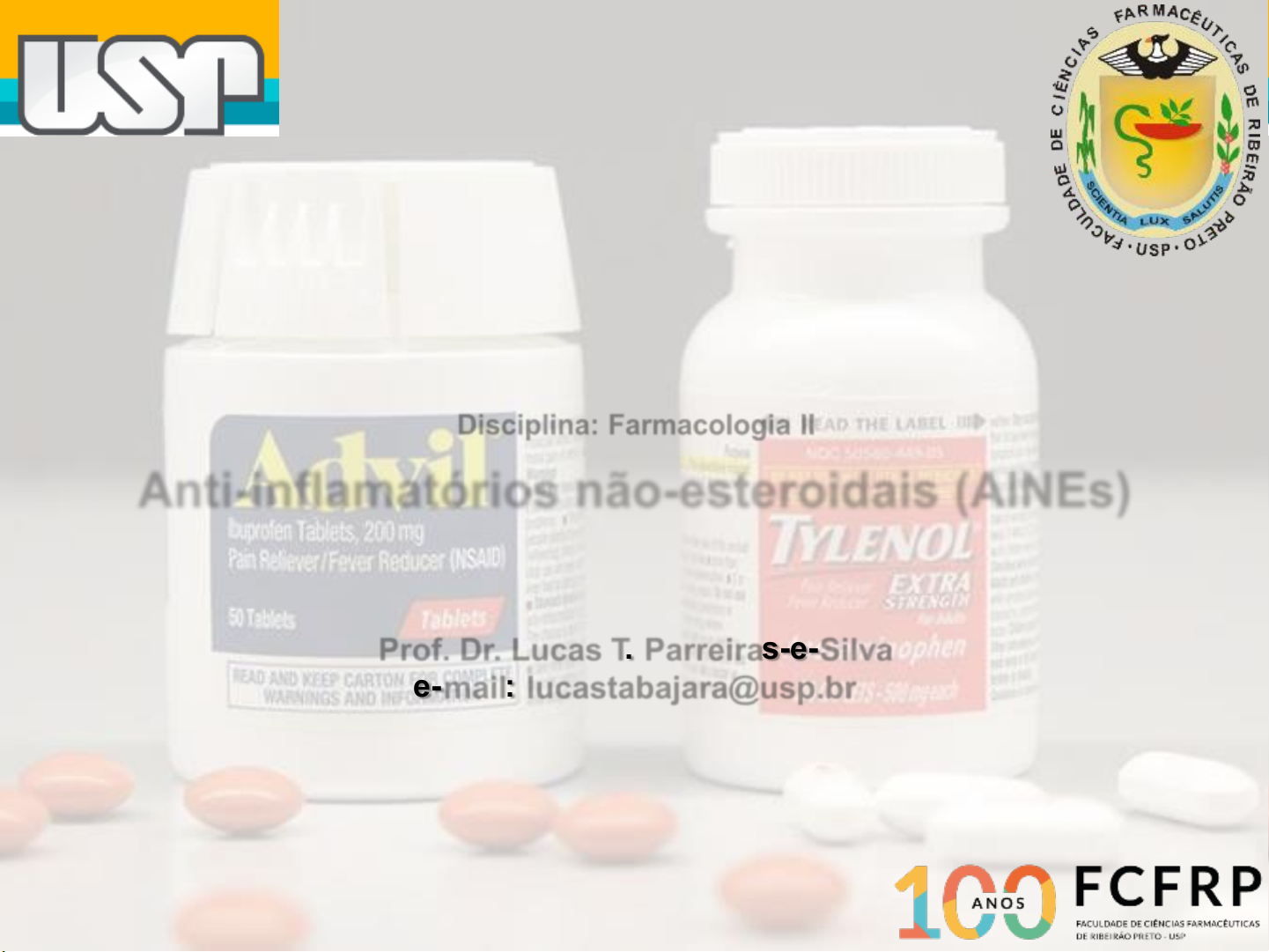 Anti-inflamatórios não-esteroidais (AINEs) Prof. Dr. Lucas T. Parreiras-e-Silva e-mail: lucastabajara@usp.br Setembro/2024 UNIVERSIDADE DE SÃO PAULO Faculdade de Ciências Farmacêuticas de Ribeirão Preto Departamento de Ciências BioMoleculares Laboratório de Farmacologia Molecular de GPCRs Bloco S – 3º andar – sala 086A Disciplina: Farmacologia II Anti-inflamatórios O que é inflamação? Inflamação: resposta ativa do organismo, que envolve componentes celulares e vasculares, visando eliminar ou neutralizar estímulos lesivos de maneira a devolver a homeostasia à área afetada. 3 ESTÍMULO LESIVO RESPOSTA INFLAMATÓRIA Agentes infecciosos Substâncias irritantesAgentes físicos Lesão térmica Isquemia 4 ESTÍMULO LESIVO RESPOSTA INFLAMATÓRIA Mediadores Agentes infecciosos Substâncias irritantesAgentes físicos Lesão térmica Isquemia Componentes dinâmicos da inflamação • Vasodilatação • Permeabilidade vascular • Migração celular Normal Inflamado Componentes dinâmicos da inflamação Aumento do fluxo sanguíneo local Marginalização de leucócitos • Histamina • Bradicinina • Prostaglandina • Óxido Nítrico Aumento de permeabilidade vascular: edema Retração das junções endoteliais: Venular Saída de proteínas para espaço extravascular, e consequente saida de líquido e células 8 • Aminas vasoativas • Bradicinina • Leucotrienos C4, D4, E4 • PAF Manifestações clínicas da inflamação 9 Inflamação Crônica (Artrite reumatóide) Inflamação Crônica (Artrite reumatóide) Antirreumáticos (Modificadores da doença) Antirreumáticos (Modificadores da doença) Anticitocinas e outros Pâncreas (Inibe liberação de Insulina) Músculo (Reduz a captação de aa e aumenta a proteólise) Fígado (Reduz a captação de glicose e aumenta gliconeogênese) Ossos (Reduz a formação de ossos) Tecido adiposo (Promove a quebra de gordura) Cortisol Sistema imune (Inibe o sistema; citocinas e PLA-2) betametasona Cortisol Anti-inflamatórios Esteroidais Tratamento da Gota Febuxostat Probenecida Lesinurad Antiinflamatórios não-esteroidais (AINEs) Mercado de $15 – 20 bilhões anuais Fármacos que possuem a capacidade de suprimir os sinais e sintomas da inflamação. Alguns destes fármacos além de possuírem efeitos anti-inflamatórios apresentam efeitos antipiréticos e analgésicos. Anti-inflamatórios Não-Esteroidais (AINEs; NSAIDs) • Efeito anti-inflamatório – modifica a reação inflamatória • Efeito analgésico – redução de certos tipos de dor • Efeito antipirético – diminui a resposta febril Ação primária – Inibição da COX Anti-inflamatórios Não-Esteroidais Prostaglandinas Histamina Bradicinina Óxido Nítrico AUMENTO DA PERMEABILIDADE VENULAR Aminas vasoativas C3a e C5a Bradicinina Leucotrienos C4, D4, E4 PAF QUIMIOTAXIA ATIVAÇÃO DE LEUCÓCITOS C5a Leucotrieno B4 Citocinas Mediadores da Inflamação 19 VASOLADILATAÇÃO VASOLADILATAÇÃO Prostaglandinas Histamina Bradicinina Óxido Nítrico AUMENTO DA PERMEABILIDADE VENULAR Aminas vasoativas C3a e C5a Bradicinina Leucotrienos C4, D4, E4 PAF QUIMIOTAXIA ATIVAÇÃO DE LEUCÓCITOS C5a Leucotrieno B4 Citocinas 20 Mediadores da Inflamação Quem são os Eicosanóides? • Família de substâncias endógenas que contém ácidos graxos insaturados, oxigenados com 20 átomos de carbono. • Derivados do ácido aracdônico liberados das membranas celulares pela ação, principalmente, da fosfolipase A2. Ex: prostaglandinas, tromboxanos e leucotrienos. Eicosanóides Síntese de Eicosanódes Síntese de Eicosanódes CysLT1 – montelucaste (Singulair®) COX está ancorada à membrana do RE e do núcleo COX não atravessa a membrana!! Características das cicloxigenases Isoformas COX-1 e COX-2 • Homologia de sequencia de 60% e estruturas tridimensionais quase superpostas. • Genes localizados em cromossomos diferentes. • Catalisam a mesma reação. • Diferem quanto ao perfil celular, genético, fisiológico, patológico e farmacológico. Características das cicloxigenases Localização das cicloxigenases • COX-1: - expressa em vários tecidos constitutivamente, principalmente epitélio gástrico e plaquetas. • COX-2: - expressão é induzida por citocinas, estresse de cisalhamento, fatores de crescimento e tumores. - expressão constitutiva geralmente baixa (SNC), apresenta funções fisiológicas em alguns tecidos (rins, endotélio e articulações). Ciclooxigenase: inserção do oxigênio molecular no C11 e no C15 do ácido araquidônico PGG2 Peroxidase: reduz o grupamento 15-hidroperoxi a 15- hidroxi PGH2 Biossíntese das Prostaglandinas Dupla ação da enzima ciclooxigenase Prostaglandina G2 (PGG2) Prostaglandina H2 (PGH2) Reação da COX Qual o cofator necessário para aceitar o oxigênio na segunda etapa (peroxidação)? Chandrasekharan & Simmons, Genome Biology, 2004 Prostaglandina G2 (PGG2) Prostaglandina H2 (PGH2) Prostaglandina H2 (PGH2) Prostaglandina D2 Prostaglandina E2 Prostaglandina F2α Prostaglandina I2 (Prostaciclina) Tromboxano A2 Cicloxigenase Prostaglandinas e TxA2 Sinalização de Prostaglandinas (receptores prostanóides) Sinalização de Prostaglandinas Vasodilatação Vasoconstrição Inibe agregação plaquetária promove agregação plaquetária Proteção gástrica ↑ quimiotaxiaTemperatura Contr musc liso (Parto) Cytotec® (misoprostol) ↓ quimiotaxia Inflamação Sensibilização (Dor) Contr musc liso (Parto) Cervidil® (dinoprostona) Inflamação Dor térmica Receptores prostanóides com alvos para fármacos Latanoprost e Bimatoprost (FP receptors): glaucoma; Epoprostenol e Iloprost (IP receptor): hipertensão arterial pulmonar (HAP). Age como vasodilatador e inibe agregação plaquetária. Doença arterial periférica, melhorando a microcirculação. Funções fisiológicas das prostaglandinas COX-1 COX-2 Efeitos inflamatórios das Prostaglandinas COX-2 Estudos independentes e simultâneos: - SIMMONS, 1991 e HERSCHMAN, 1991 