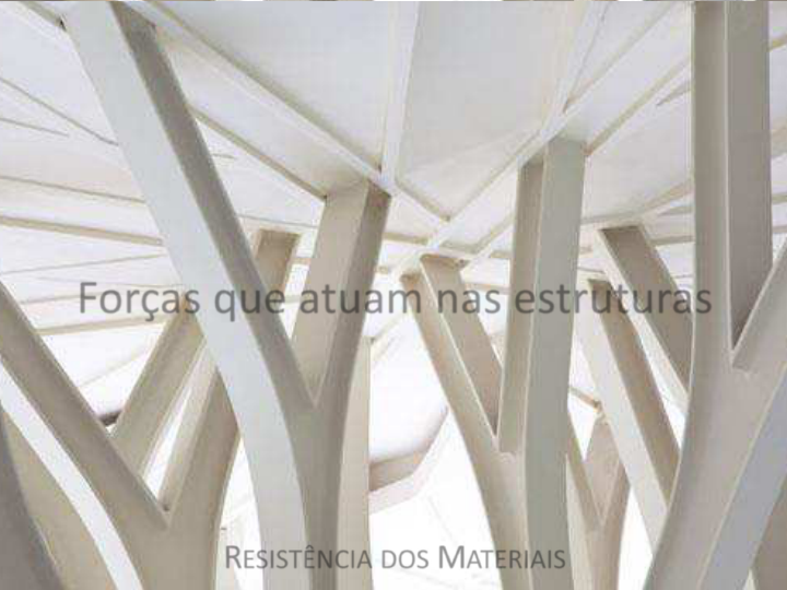 Forças que atuam nas estruturas RESISTÊNCIA DOS MATERIAIS Conceito de direção e sentido • Quando alguém anda por uma rua reta e, de repente, entra numa de suas travessas, o caminho que percorre muda bruscamente de direção. • Se, por outro lado, a rua pela qual caminha tiver uma curva, ao percorrer esta curva, a partir do seu início e em cada ponto da curva, a pessoa também estará mudando de direção. Conceito de direção e sentido • No caso anterior, quando se entra numa travessa, a mudança de direção, apesar de brusca, ocorre apenas uma vez; no caso da curva, ocorrem muitas mudanças de direções. • É sabido que, para se garantir que um objeto esteja em movimento, é necessário que esse movimento seja relacionado a um referencial. Conceito de direção e sentido • Por exemplo: quando duas pessoas andam lado a lado, com a mesma velocidade, e uma delas olha para a outra, ela a verá sempre ao seu lado, como se estivesse parada. • O mesmo não ocorre a uma terceira pessoa parada, que verá as duas primeiras afastando-se e, portanto, em movimento. Conceito de direção e sentido • No entanto, essa terceira pessoa, considerada parada, não o estará para uma quarta que a visse do espaço sideral. • Essa pessoa, dita parada, estaria em movimento junto com o planeta Terra. • Logo, a terceira pessoa pode ser considerada parada ou não, dependendo da referência que se tome. Conceito de direção e sentido • Como no conceito de movimento, o conceito de direção também exige um referencial. • Se não for levado em conta um referencial qualquer, direção será algo sem nexo. • A direção de uma rua ou estrada tem que ser definida em relação a alguma referência, como, por exemplo, a linha do equador, a agulha de uma bússola, ou outra qualquer. Conceito de direção e sentido • Pode-se escolher qualquer referencial para se definir a direção, mas, uma vez escolhido, esse referencial deve ser fixo e conhecido para que todos possam ter a mesma interpretação dos acontecimentos. • Define-se como direção de uma reta qualquer o ângulo que ela forma com outra reta bem conhecida, denominada referencial. Conceito de direção e sentido • A reta que vai do ponto de localização de uma pessoa ao polo magnético da terra, dada pela agulha de uma bússola, por exemplo, é um referencial bem definido e normalmente utilizado. • A direção do voo de um avião é definida pelo ângulo que sua rota forma com a direção dada pela bússola. Conceito de direção e sentido • Uma mesma direção ou rota, por exemplo, a rota entre São Paulo e Rio de Janeiro pode ser ocupada por um avião que vai de São Paulo para o Rio e outro que vai do Rio para São Paulo. • Os dois aviões estão indo na mesma direção mas em sentidos contrários. • Portanto, definida uma direção, para se caracterizar corretamente o movimento deve-se informar também o sentido Conceito de direção e sentido • É muito comum haver uma certa confusão nos conceitos de direção e sentido. • É comum ocorrer o engano de se dizer que determinado veículo está indo na direção de São Paulo para o Rio de Janeiro e o outro, que está na mesma estrada, mas em sentido contrário, dizer-se que está na direção contrária, o que é um erro grosseiro. • A direção é a mesma: São Paulo - Rio de Janeiro ou Rio de Janeiro – São Paulo; o que muda é o sentido. Conceito de força • Sempre que um corpo, com uma determinada massa, estiver em repouso e iniciar um movimento ou, ainda, quando já em movimento retilíneo (movendo-se sobre uma reta), com velocidade constante, tiver sua velocidade e/ou sua direção alterada, diz-se que a ele foi aplicada uma força. Portanto, a ideia de força está ligada às noções de massa, aceleração (alteração na velocidade), direção e sentido. Conceito de força • Matematicamente, define-se força como o produto: • Força é uma grandeza vetorial, porque para defini- la corretamente não é suficiente apenas quantificá-la, mas indicar, também, sua direção e sentido. Tipos de forças que atuam nas estruturas • Neste trabalho, já se definiu estrutura como o caminho das forças. Mas, que forças? É absolutamente necessário que as forças que atuam nas edificações sejam muito bem conhecidas, na sua intensidade, direção e sentido, para que a concepção estrutural seja coerente com o caminho que essas forças devem percorrer até o solo e para que os elementos estruturais sejam adequadamente dimensionados. Tipos de forças que atuam nas estruturas • As forças externas que atuam nas estruturas são denominadas cargas. • Algumas cargas atuam na estrutura durante toda a sua vida útil, enquanto outras ocorrem esporadicamente. • Denominam-se cargas permanentes as que ocorrem ao longo de toda a vida útil e cargas acidentais as que ocorrem eventualmente. Cargas permanentes • As cargas permanentes são cargas cuja intensidade, direção e sentido podem ser determinados com grande precisão, pois as cargas permanentes são devidas exclusivamente a forças gravitacionais, ou pesos. São exemplos de cargas permanentes: Cargas permanentes • O peso próprio da estrutura. Para determiná-Ia, basta o conhecimento das dimensões do elemento estrutural e do peso específico (peso/m²) do material de que é feito; • O peso dos revestimentos de pisos, como contrapisos, pisos cerâmicas, entre outros; Cargas permanentes • O peso das paredes. Para determiná-Ia, é necessário conhecer o peso específico do material de que é feita a parede e do seu revestimento (embaço, reboco, azulejo e outros); • O peso de revestimentos especiais, como placas de chumbo, nas paredes de salas de Raio X. Para determiná-Ia, é necessário o conhecimento das dimensões e do peso específico desses revestimentos. Cargas acidentais • As cargas acidentais são mais difíceis de ser determinadas com precisão e podem variar com o tipo de edi