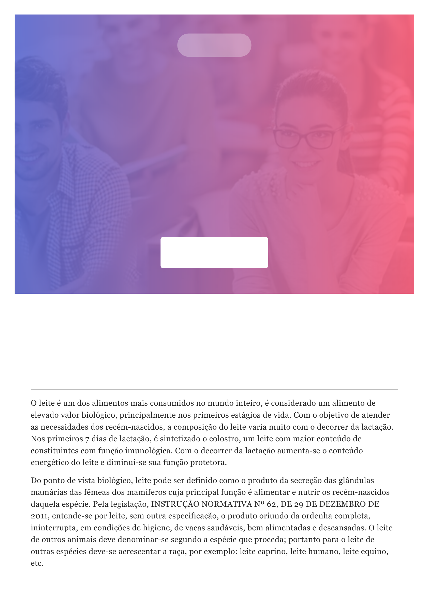 25/03/2020 Composição de Alimentos: Leite e produtos lácteos https://cead.uvv.br/graduacao/conteudo.php?aula=composicao-de-alimentos-leite-e-produtos-lacteos&dcp=composicao-dos-alimentos&topico=8 1/11 Lição 08 Composição de Alimentos: Leite e produtos lácteos Composição dos Alimentos Começar a aula 1. Leite: Conceitos e caracterização nutricional O leite é um dos alimentos mais consumidos no mundo inteiro, é considerado um alimento de elevado valor biológico, principalmente nos primeiros estágios de vida. Com o objetivo de atender as necessidades dos recém-nascidos, a composição do leite varia muito com o decorrer da lactação. Nos primeiros 7 dias de lactação, é sintetizado o colostro, um leite com maior conteúdo de constituintes com função imunológica. Com o decorrer da lactação aumenta-se o conteúdo energético do leite e diminui-se sua função protetora. Do ponto de vista biológico, leite pode ser definido como o produto da secreção das glândulas mamárias das fêmeas dos mamíferos cuja principal função é alimentar e nutrir os recém-nascidos daquela espécie. Pela legislação, INSTRUÇÃO NORMATIVA Nº 62, DE 29 DE DEZEMBRO DE 2011, entende-se por leite, sem outra especificação, o produto oriundo da ordenha completa, ininterrupta, em condições de higiene, de vacas saudáveis, bem alimentadas e descansadas. O leite de outros animais deve denominar-se segundo a espécie que proceda; portanto para o leite de outras espécies deve-se acrescentar a raça, por exemplo: leite caprino, leite humano, leite equino, etc. 25/03/2020 Composição de Alimentos: Leite e produtos lácteos https://cead.uvv.br/graduacao/conteudo.php?aula=composicao-de-alimentos-leite-e-produtos-lacteos&dcp=composicao-dos-alimentos&topico=8 2/11 O leite é composto de água, gordura, carboidratos, proteínas, sais minerais e vitaminas. Do ponto de vista físico-químico o leite é uma mistura homogênea de diferentes substâncias como água, proteínas globulares, lactose, gordura, sais minerais e vitaminas, no qual a gordura está na forma de emulsão com vitaminas lipossolúveis e algumas proteínas; caseínas e sais minerais encontram- se em suspensão; e a lactose, sais minerais, proteínas do soro e vitaminas hidrossolúveis formam uma solução verdadeira. As caseínas são os principais representantes das proteínas do leite e estão presentes no leite na forma de micelas, associadas a fosfatos e ao cálcio. Essa perfeita mistura das substâncias (carboidratos, gordura, proteínas e sais) presente no leite lhe confere sabor doce (característica conferida pela presença da lactose), ligeiramente salgado devida a presença de sais. Entretanto a composição do leite não é constante, mas sim, muito variada. Existem diversos fatores que podem afetar a composição do leite. Os mais importantes são: espécie animal, raça, alimentação do gado, estação do ano, estágio de lactação e algumas doenças. Algumas variações são referentes às fases de lactação, uma característica de cada espécie, como o colostro e o leite maduro, que possuem composição bem diferente. O colostro apresenta composição, cheiro e aparência diferente do leite maduro. A composição do leite do leite das diferentes espécies não é a mesma conforme pode-se observar na Tabela 1. Tabela 1: Composição centesimal do leite de diversas espécies. Cereal Umidade (%) CHO (%) PTN (%) LIP (%) Minerais (%) Ca (mg) Fe (mg) Vit. B1 (mg) Vit. B3 (mg) Humana 87,8 7,0 1,5 3,5 0,2 Equina 89,3 6,1 2,6 1,6 0,4 Bovina 87,0 4,8 3,5 4,0 0,7 120 0,3 0,45 0,9 Caprina 87,0 5,2 3,1 3,8 0,9 112 0,5 Ovelha 82,7 4,6 5,5 6,3 0,9 Búfala 82,0 5,2 4,0 8,0 0,8 Fonte: TACO 4ª edição; Walstra et al., (2006) CHO: Carboidrato; PTN: Proteína; LIP: Lipídio; FA: Fibra Alimentar; Ca: Cálcio; Fe: Ferro; Vit. B1: Vitamina B1 (tiamina); Vit. B3: Vitamina B3 (niacina) Tr: Traços O leite de diferentes espécies apresenta diferenças consideráveis em sua composição centesimal, influenciando assim no sabor do leite de cada espécie e na qualidade dos produtos obtidos no processamento do leite. Os diversos tipos de leite podem ser utilizados como matéria-prima para o processamento de diversos produtos como por exemplo: queijos, leites fermentados, manteiga, leite condensado, doce de leite, leite em pó, etc. A composição de ácidos graxos é um dos fatores que mais influenciam o sabor do leite conferindo as vezes sabor e odor forte característico como o caso do leite de cabra que possui elevada concentração de ácidos graxos caproico, caprílico e cáprico. 25/03/2020 Composição de Alimentos: Leite e produtos lácteos https://cead.uvv.br/graduacao/conteudo.php?aula=composicao-de-alimentos-leite-e-produtos-lacteos&dcp=composicao-dos-alimentos&topico=8 3/11 PARA REFLETIR: Existe algum alimento capaz de substituir nutricionalmente o leite da própria mãe para os filhotes? 2. Formação do leite O leite é formado a partir do sangue dos animais por filtração e síntese. O processo de formação acontece nas glândulas mamárias, no local denominado alvéolos. A formação do leite ocorre a partir do sangue com a filtração da água, enquanto os aminoácidos, ácidos graxos, açúcares e alguns minerais passam por processos bioquímicos de transformação no interior das glândulas mamárias, sintetizando as proteínas, a gordura, a lactose e os minerais. O leite fica armazenado nos alvéolos até o momento da ordenha. Na Figura 1 temos apresentado a biossíntese dos constituintes do leite (água, lipídeos, lactose, proteínas, imunoglobulinas, sais, etc) dentro do alvéolo luminar. Para que ocorra a coleta o animal dever receber estímulos positivos para a liberação do leite. Entre esses estímulos estão a sucção do bezerro ou a lavagem e massagem do úbere, e o odor dos alimentos. Ao ser comprimido os alvéolos liberam o leite para os canais no interior do úbere. Biossíntese e secreção do leite. h