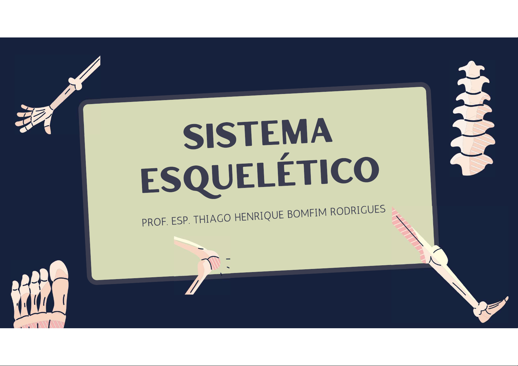 CONCEITO: OSTEOLOGIA É a parte da anatomia que estuda os ossos. Cada osso do nosso corpo é um órgão individual. CONCEITO: OSTEOLOGIA • Os ossos são peças rígidas de número, coloração e formas variáveis porém com origem estrutura e funções semelhantes. • Os ossos são constituídos por um tecido fundamental, o tecido ósseo, os quais quando reunidos formam o esqueleto, responsável por dar à forma do corpo humano. • São órgãos esbranquiçados e duros que se unem aos demais por articulações para formar o esqueleto do corpo. • E ainda desenvolve várias outras funções. OSSOS FUNÇÕES: ✔Proteção de alguns órgãos internos; ✔Sustentação; ✔Armazenamento de cálcio e fósforo; ✔Permitem deslocamento do corpo; ✔Produção de células sanguíneas (HEMATOPOIESE). OSSO: DIVISÃO DO ESQUELETO CRÂNIO TÓRAX E ABDOME FORMA O EIXO DO CORPO: CABEÇA E TRONCO MEMBRO SUPERIOR MEMBRO INFERIOR MEMBROS SUPERIORES E INFERIORES CINTURA ESCAPULAR OU TÓRACICA CINTURA PÉLVICA OSSO: Articulação Junção, união, ponto de encontro de 2 ou mais ossos. Ex: articulação do ombro, cotovelo, joelho. CLASSIFICAÇÃO DOS OSSOS (FORMA) Comprimento Largura Espessura Forma dos Ossos Epífise proximal Diáfise (Canal medular) Epífise distal Comprimento maior que a largura e a espessura. Ex: fêmur, úmero, rádio, fíbula, tíbia ESTRUTURA DE UM OSSO LONGO Comprimento e largura equivalentes porém maiores que a sua espessura. Ex: Ossos do crânio, escápula, osso do quadril Equivalência das três dimensões Ex: ossos do carpo e do metacarpo Morfologia complexa Morfologia complexa Ex: vértebras e osso temporal Uma ou mais cavidades, de volume Uma ou mais cavidades, de volume variável, revestidas por mucosa e contendo ar. Essas cavidades são chamadas sinus ou seio. Ossos que se desenvolvem na substância de certos tendões ou da cápsula fibrosa que envolve certas articulações. PATELA DIVIDIDA EM: ⮚ CRÂNIO ⮚ FACE OSSOS DA CABEÇA OSSO FRONTAL: Forma, essencialmente, a fronte (testa); o teto da cavidade nasal e as órbitas OSSO PARIETAIS: Os dois ossos parietais, direito e esquerdo, formam os lados e o teto do crânio e se articulam na linha mediana formando a sutura sagittal. Temporais: Direito e esquerdo, constituem as paredes laterais do crânio. OCCIPITAL: O osso occipital forma a parte posterior do crânio. Base do crânio; articula-se anteriormente com os ossos parietais. Em sua porção inferior há uma grande abertura, denominada forame magno, que dá passagem à continuação caudal do encéfalo. ESFENÓIDE LOCALIZADO NA PARTE INTERIOR - BASE DO CRÂNIO Maxilas: direita e esquerda, ocupam quase toda a face, formando o maxilar. Mandíbula: é um osso ímpar e móvel, articula-se com os temporais OSSOS DA FACE Zigomáticos: são duas massas ósseas salientes que formam as proeminências da face. Nasais: os ossos nasais, direito e esquerdo, articulam-se entre si no plano mediano OSSO LACRIMAL É o menor e mais frágil osso da face, está situado na porção anterior da parede medial da órbita. 1. FRONTAL 2. PARIETAL 3. TEMPORAL 4. OCCIPITAL 5. MANDÍBULA 7. LACRIMAL 8. ZIGOMÁTICO 9. MAXILA 6. NASAL OSSO: DIVISÃO DO ESQUELETO COLUNA VERTEBRAL E COSTELAS COLUNA VERTEBRAL 7 vértebras cervicais 12 vértebras torácicas 5 vértebras lombares 5 vértebras sacrais 4 vértebras coccígeas VERTEBRA COLUNA VERTEBRAL Discos intervertebrais Protegem as vértebras de impactos. Podem sofrer lesões diversas (não necessariamente simultâneas) que provocam dores fortes, de difícil tratamento. COSTELAS: junto com o esterno formam a caixa torácica. ⮚7 verdadeiras. ⮚3 falsas. ⮚2 flutuantes. Algumas costelas estão ligadas a coluna vertebral e ao ESTERNO e outras somente a coluna vertebral PRINCIPAIS OSSOS Manúbrio do esterno Esterno Caixa torácica Processo Xifóide Osso externo MANÚBRIO DO ESTERNO CORPO DO ESTERNO PROCESSO XIFÓIDE SÍNFISE XIFOESTERNAL SÍNFISE MANUBRIOSTERNAL OSSOS DOS MEMBROS SUPERIORES OSSOS QUE FORMA O OMBRO: ✔BRAÇO ✔ANTEBRAÇO ✔MÃO CLAVÍCULA OSSOS DOS MEMBROS SUPERIORES EXTREMIDADE ESTERNAL CORPO DA CLAVÍCULA EXTREMIDADE ACROMIAL ESCÁPULA PROCESSO CARACÓIDE ESPINHA ACRÔMIO CAVIDADE GLENOIDAL ARTICULAÇÃO DO ÚMERO ESCÁPULA - FACE DORSAL ÚMERO ÚMERO COLO ANATÔMICO FACE POSTERIOR CABEÇA DO ÚMERO EPICÔNDILO MEDIAL CÔNDILO DO ÚMERO TUBÉRCULO MENOR CORPO EPICÔNDILO LATERAL TUBÉRCULO MAIOR OSSO: DIVISÃO DO ESQUELETO RÁDIO E ULNA CABEÇA DA ULNA TUBEROSIDADE DA ULNA INCISURA TROCLEAR OLÉCRANO PROCESSO CORONÓIDE PROCESSO ESTILÓIDE INCISURA RADIAL ULNA PROCESSO ESTILÓIDECIRCUNFERÊNCIA ARTICULAR RÁDIO TUBÉRCULO DORSAL TUBEROSIDADE DO RÁDIO COLO DO RÁDIO CABEÇA DO RÁDIO PROCESSO ESTILÓIDE DO RÁDIO INCISURA ULNAR CORPO DO RÁDIO OSSO: DIVISÃO DO ESQUELETO OSSOS DA MÃO MEMBRO INFERIOR E CINTURA PÉLVICA FÍBULA TÍBIA PATELA FÊMUR FALANGES OSSOS DO QUADRIL OSSOS DO QUADRIL (cintura pélvica) SÍNFISE PÚBICA SACRO ARTICULAÇÃO SACROILÍACA OSSO DO QUADRIL ÍSQUIO PÚBIS ÍLIO EPICÔNDILO MEDIAL CÔNDILO LATERAL CABEÇA DO FÊMUR TROCANTER MAIOR COLO DO FÊMUR FACE PATELAR TROCANTER MENOR FÊMUR VISTA ANTERIOR CÔNDILO MEDIAL EPICÔNDILO LATERAL CÔNDILO LATERALCÔNDILO MEDIAL CABEÇA DO FÊMUR TROCANTER MAIOR LINHA ÁSPERA FOSSA INTERCONDILAR TROCANTER MENOR FÊMUR VISTA POSTERIOR ÁPICE FACES ARTICULARES PATELA BASE TUBEROSIDADE DA TÍBIA INSERÇÃO TENDÃO PATELAR MALÉOLO MEDIAL CÔNDILO MEDIAL BORDA ANTERIOR CÔNDILO LATERAL FORAME NUTRÍCIO EMINÊNCIA INTERCONDILAR CÔNDILO LATERAL TÍBIA CABEÇA DA FÍBULA MALÉOLO LATERAL ÁPICE DA CABEÇA DA FÍBULA FACE POSTERIOR COLO DA FÍBULA FORAME NUTRÍCIO CABEÇA DA FÍBULA FÍBULA MARGEM ANTERIOR FALANGE MÉDIA FALANGE DISTAL CUNEIFORME MEDIAL FALANGE PROXIMAL CUNEIFORME LATERAL METATARSO CUBÓIDE CALCÂNEO TÁLUS CALCÂNEO CUNEIFORME INTERMEDIO NAVICULAR Sistema Articular CONCEITO: • Faz parte das junções dos diferentes ossos do esqueleto humano. • As 