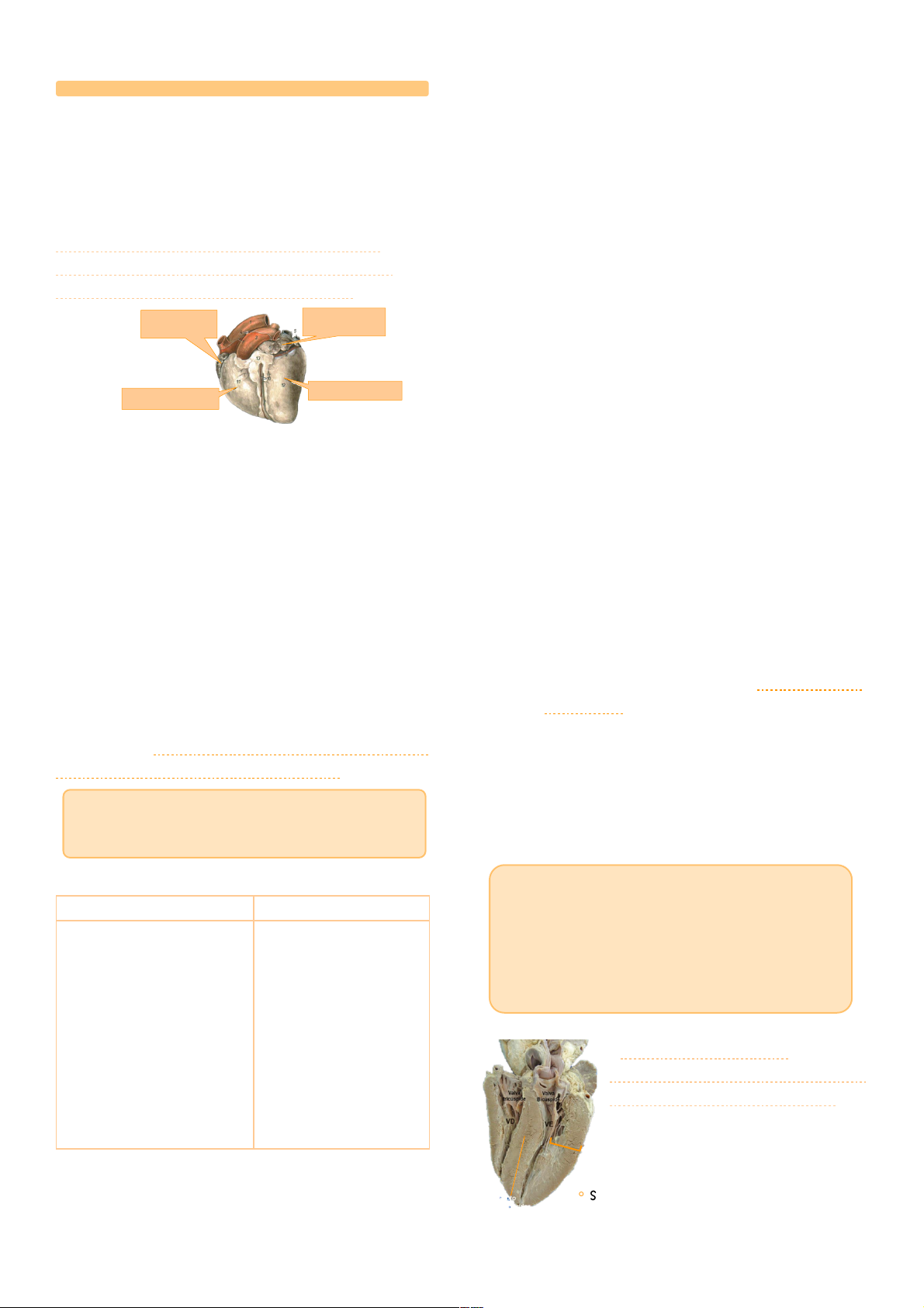 28 AGO 2024 ANATOMIA ANIMAL VISCERAL – PROF. PATRÍCIA BIANCA DETONI BARBOSA MED VET Sistema Cdiovascul ANGIOLOGIA O coração é uma bomba, que tem como função bombear o sangue para todo o corpo. Os movimentos de contração do coração vão ser chamados de SÍSTOLE e o relaxamento de DIÁSTOLE. O coração é dividido em 4 câmaras: átrio direito (AD), átrio esquerdo (AE), ventrículo direito (VD) e ventrículo esquerdo (VE) OBS: a sístole do átrio não acontece ao mesmo tempo que a sístole do ventrículo, porque se os dois contraem ao mesmo tempo, o sangue não tem para onde ir. Ou seja, o que acontece é, o relaxamento atrial, o átrio se enche de sangue, em seguida, contração atrial e relaxamento de ventrículo, para que assim, o ventrículo se encha de sangue. O coração é um músculo envolvido por membranas: • Externa, o pericárdio; • Interna, o endocárdio; • Intermediária, entre o pericárdio e o endocárdio, o miocárdio que é responsável pelas contrações involuntárias do coração. Veia X Artéria Funções: ⁃ Abastecer todo o corpo e tecidos com nutriente; ⁃ É o sangue que vai transportar oxigênio, glicose e proteína ⁃ Carregar hormônios - substâncias liberadas na corrente sanguínea sendo sistema cardiovascular responsável por levá-lo ao seu local de ação ⁃ Eliminar resíduos e metabólicos. – O 02 chega nas arteríolas e sairá pelos capilares para chegara nas células. Portanto, a célula vai absorver o 02 (usá-lo) e irá devolver C02. Logo esse C02 vai para o capilar e será direcionado para vênula, depois ira para as veias de médio calibre, veias de grande calibre, átrio direito e assim chegara no ventrículo direito que por fim vai para a A.troco pulmonar (ramificação em artéria tronco pulmonar esquerda e direita) ⁃ Controle da pressão arterial. – Nas paredes das grandes artérias temos sensores que detectam a pressão arterial e informam o sistema nervoso central se a pressão esta alta demais ou baixa demais, sendo o sistema cardiovascular responsável por regular essa pressão. ⁃ Participa da regulação corpórea Ex: quando você está correndo seu rosto fica vermelho, isso acontece porque ocorre o que chamamos de vasodilatação periférica, quando o sangue vai para periferia para trocar calor com o meio externo, assim resfriando o seu corpo – se você está fazendo energia, está tendo contração muscular e está gerando calor ⁃ Faz ajuste da homeostasia (ajuste em quadros de hemorragia, exercício e de postura). Caracteristicas do ventriculo esquerdo ◦ Parede mais espessa - miocárdio e o ápice cardíaco faz parte do ventrículo esquerdo; ◦ Valva bicúspide ou mitral; ◦ Recebe o sangue do AE rico em O2 através das veias pulmonares; ◦ Saída da Aorta– leva o sangue para todo o corpo. Veia Artéria - Veias são vasos que chegam ao coração - São vasos que se unem; - São vasos que tem ação centrípeta – colhe o sangue das extremidades e levam para o coração; - Veia não pulsa; - Veia goteja. - Artéria pulsa - Artéria esguicha - Levam sangue do coração; - Se ramificam. SANGUE OXIGENADO (ARTERIAL) - 02 SANGUE DESOXIGENADO (VENOSO) – C02 Hematose: o co2 que está na artéria vai entrar no alvéolo e vai sair do corpo, enquanto o o2 que o animal está respirando, entra no alvéolo, entra nas veias. Septo interventricular Átrio esquerdo (AE): aurícula esquerda Átrio direito (AV): aurícula direita Ventrículo direito (VD) Ventrículo esquerdo (VE) VISTA ARTRIAL 28 AGO 2024 ANATOMIA ANIMAL VISCERAL – PROF. PATRÍCIA BIANCA DETONI BARBOSA MED VET Caracteristicas do ventriculo direito ◦ Recebe sangue do AD pobre em O2 ◦ Saída do Tronco pulmonar– sangue pobre em O2 para os pulmões; ◦ Valva tricúspide ◦ Parede mais fina - miocárdio Caracteristicas do Átrio direito: ◦ Porção mais dorsal e cranial do coração, ◦ Veias cavas – cranial e caudal – sangue pobre em oxigênio, ◦ Seio Coronário – recebe o sangue venoso da maior parte do coração. Localizado na chegada veia cava caudal. ‼‼‼ IMPORTANTE ‼‼‼ BASE do coração: as grandes veias – chegam ao coração e as grandes artérias - saem do coração. Nem toda veia transporta sangue rico em dióxido de carbono (CO2) - CUIDADO!!!!!! ÁPICE– apoiado sobre o esterno – Ventrículo esquerdo. OBS: coração de ruminantes – muita gordura, gordura esbranquicada e formato arredondado. Coração de equideos – pouca gordura, gordura amrelada e formato de cupido. Coração de carnivoro- margem auricular retilínea Musculatura 1. Musculatura Esquelética - Células longas, multinucleados (núcleos periféricos). - Miofilamentos organizam-se em estrias longitudinais e transversais. - Contração rápida e voluntária 2. Estriada Cardíaca - Células estriadas com um ou dois núcleos centrais. - Células alongadas, irregularmente ramificadas, que se unem por estruturas especiais: discos intercalares. - Contração involuntária, vigorosa e rítmica 3. Musculatura Lisa - Células alongadas, mononucleados e sem estrias transversais. - Contração involuntária e lenta Circulação sistêmica (grande circulação) O ponto de partida da circulação sistêmica é do lado esquerdo. A mais forte entre as duas bombas. A câmara superior (átrio esquerdo) se enche com o sangue oxigenado vindo dos pulmões. As paredes musculosas empurram o sangue através da válvula mitral. O sangue penetra, então, na câmara inferior (ventrículo esquerdo) formado pelo músculo mais forte do coração. Quando o ventrículo está cheio de sangue, suas paredes se contraem. A válvula para o átrio esquerdo se fecha. O sangue cheio de oxigênio e energia é lançado para fora do coração, com pressão forte suficiente para atingir o corpo todo. Logo depois de ultrapassada a válvula de saída, começa a maior artéria de todo o corpo, a aorta. No alto da curva da aorta, o sangue encontra três passagens principais. As Sept