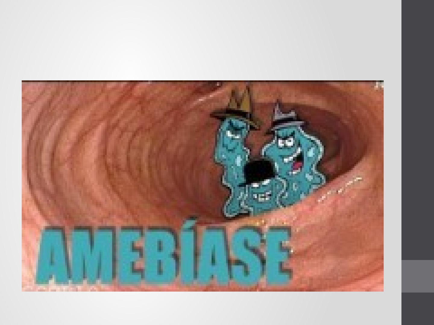 Histórico Loch, 1875 – descoberta durante um exame de fezes disentérica. Osler, 1890 - descreveu um abcesso hepático amebiano; Walker e Sellards, 1913 - estabeleceram a patogenicidade da Entamoeba histolytica; Histórico Brumpt, 1925 – duas espécies distintas, morfologicamente iguais: Entamoeba histolytica (Schaudinn,1903); Entamoeba dispar (Brumpt, 1925). 3 Histórico 1977: OMS assumiu a E. dispar como espécie infectante do homem; Século XX 12% da população mundial parasitada – 10% sintomática; 4 Classificação Sub-reino Protozoa Filo Sarcomastigophora Subfilo Sarcodina Superclasse Rhizophoda Classe Lobozia Ordem Aemoebida Família Entamoebida Gênero Entamoeba sp Iodamoeba sp Endolimax sp Introdução Os protistas ameboides são representados por organismos unicelulares, eucariontes , capazes de formar pseudópodes. Introdução Amebas parasitas do homem: Emtamoeba histolytica E. dispar E. coli E. hartmanni E. gingivales E. polecki Endolimax nana Iodamoeba butschlii Epidemiologia Distribuição geográfica Acometimento : 10% população mundial condições socioeconômica, hábitos alimentares, padrão sanitário; água tratada; condições de habitação, presença de esgotos e água tratada. Prevalência nas regiões tropical e subtropical (sempre levando em consideração as precárias condições de saúde); Distribuição no Brasil Epidemiologia Vias de transmissão: Direta – mãos, alimentos e água contaminados, Vetores mecânicos (moscas). Morfologia Entamoeba cistos com 8 núcleos / ‘grupo coli’ E. coli, E. muris, E. gallinarum Morfologia Cistos com 4 núcleos/ ‘grupo hystolytica’ E. histolytica, E. dispar, E. hartmani, E. ranarum, E. invadens, E. moshkovskii Morfologia Cisto com 1 núcleo E. polecki, E. suis, Iodamoeba butschlii Cistos não conhecidos ou sem E. gingivalis Morfologia Entamoeba histolytica/ dispar Trofozoíto Mede entre 20 a 40 m Chega a 60 m na forma invasiva; Possui endo e ectoplasma; Vacúolos digestivos e de glicogênio; A fresco: pleomórfico, ativo, alongado, com emissão contínua e rápida de pseudópodes. Morfologia E. histolytica/ dispar Pré- cistos Redução da motilidade; Desaparecimento dos vacúolos digestivos; Morfologia esférico ou ovóide; Sem distinção entre endo e ectoplasma; Surgimento dos corpos cromatóides; Núcleo de aparência grosseira http://www.portalsaofrancisco.com.br/saude/amebiase Morfologia E. histolytica/ dispar Cistos Mede de 8 a 20 m de diâmetro, com 4 núcleos e corpos cromatóides em forma de bastonetes ; Cariossoma: pequeno e no centro do núcleo. Morfologia Entamoeba coli Trofozoíto De 20 a 50 m; Citoplasma não diferenciado Núcleo: cromatina irregular e grosseira; Cariossoma: grande e excêntrico; Cisto Com 8 núcleos e corpos cromatóides finos como agulhas. Morfologia Amebíase Grave problema de saúde pública; Agente etiológico: Entamoeba histolytica. Alta mortalidade, 2° Infecções sintomáticas e assintomáticas. Ciclo Biológico / Patogênico Ingesta: cistos maduros (tetranucleados); Desencistamento na região ileocecal; Liberação de metacistos (4) trofozoítos metacísticos (8) no intestino grosso; Organismos não-patogênicos (equilíbrio parasito –hospedeiro rompido invasão mucosa). Patogenicidade Capacidade do trofozoíto invadir parede intestinal, alimentar-se de hemácias, destruir tecidos e translocar-se para outros sítios. Invasão Lesão mais precoce – pequenas elevações nodulares em cabeça de alfinete; Invasão Invasão de trofozoítos na submucosa – úlceras em botão de colarinho; Quadro clínico Classificação segundo OMS 1. Assintomáticas ( 90% dos casos); 2. Sintomáticas: Amebíase intestinal: Colite disentérica Ameboma (raramente) Colite não disentérica Quadro clínico Classificação segundo OMS Amebíase extra- intestinal: Hepática Pulmonar Outras localizações: cerebrais, pericárdicas e cutânea Formas Sintomáticas Colite não disentérica: Frequência: 2 a 4 evacuações, diarreicas ou não, dia, com fezes moles ou pastosas, às vezes com muco e sangue; Desconforto abdominal ou cólicas Principalmente E. dispar. Formas Sintomáticas Colite disentérica (disenteria amebiana) Início agudo: diarreia (10 ou + /dia) c/ evacuação mucossanguinolenta; Cólicas intestinais; Tenesmo; Febre (moderada). Amebíase hepática Local preferencial no lobo direito (através da mesentérica superior o parasito chega ao fígado). Tríade clínica: Dor no quadrante superior direito do abdomem; Febre moderada a alta; Hepatomegalia (extremamente dolorosa) – achado mais importante; Icterícia é rara. Amebíase hepática Amebíase hepática: aguda não supurativa ( não forma pus). Abscesso hepático: necrose coliquativa (pode levar a ruptura, sepsis, e propagação para outros órgãos); Predomínio no sexo masculino; Faixa de 20 a 60 anos. Amebíase pulmonar Febre; Dor torácica no lado direito; Tosse e expectoração com diferentes aspectos: podem lembrar molho de chocolate, de tomate ou gelatina; Pode haver infecção secundária com escarro amarelado, verde ou rosado; Amebíase extra intestinal Forma Cutânea Diagnóstico Entmaoeba histolytica -> Patologenica E. dispar E. coli E. hartmannii E. polecki E. gingivalis Diagnóstico Clínico, Laboratorial e Imunológico Clínico: incerto (superposição de vários sintomas comuns a várias doenças intestinais). Laboratorial: Certeza: encontro de parasitas nas fezes; EPF: Método de Faust Método de sedimentação por centrifugação – MIF; Método de sedimentação espontânea; Por que é recomendável tratar um paciente assintomático porém com o resultado do exame parasitológico positivo para E. histolytica/ dispar?? Diagnóstico Imunológico Métodos sorológicos: ELISA; Imunofluorescência indireta; Hemaglutinação indireta; Contra- imunoeletroforese; Imunodifusão em gel de ágar Diagnóstico Imunológico A partir de material: Fezes Pesquisa de coproantígenos pelo Eliza: pode diagnosticar cisto