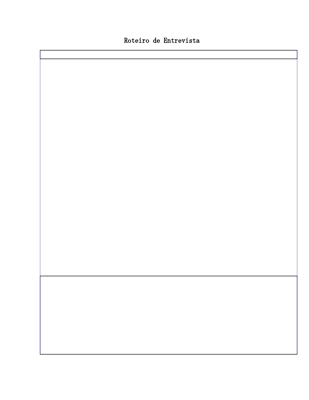 Roteiro de Entrevista I. Identificação Nome do examinador: ––––––––––––––––––––––––––––––––––––––––––––––––––––––––--------------------------- Data: –––– / –––– / –––– Local de atendimento: ––––––––––––––––––––– Nome do paciente: –––––––––––––––––––––––––––––––––––––––––––– Sexo: ––––––––––––––– Idade: –––––––Estado civil: –––– (1. casado/amasiado; 2. solteiro; 3. separado/divorciado; 4. viúvo) No de filhos: –––– Escolaridade (anos de escola completados): –––––––––––––––––––––––––––––––––––––––––––Etnia: –––– (1. branca; 2. parda; 3. negra; 4. amarela) Quem acompanha o paciente: –––––––––––––––––––––––––– Que instituição o encaminha: –––––––––––––––––––– Procedência/endereço: ––––––––––––––––––––––––––––––––––––––––––––––––––––––––––––––––––––––––––– Naturalidade (cidade, estado): ––––––––––––––––––––––––– Há quantos anos mora no local atual de residência: ––– Profissão: ––––––––––––––––––––––––––––––––––––––––– Vínculo empregatício: –––––––––––––––––––––––––– Ocupação atual: ––––––––––––––––––––––– (1. dona de casa; 2. ativo; 3. ativo, mas irregular; 4. inativo) Religião: ––––––––––––––––––––––––––––––––– Nível socioeconômico: 1. Tipo de residência: ––––––––––– (1. alvenaria; 2. madeira e pavimentada; 3. madeira e piso de terra) 2. Propriedade da casa: –––––––––––––––––––––––––– (1. própria; 2. alugada; 3. emprestada ou irregular) 3. Carro da família: ––––––––––––––––––– (1. sim; 2. não) Quantas pessoas moram em sua casa: –––––––––– Renda familiar: ––––––– Renda per capita: ––––––––––––––––– II. Queixa principal e história da doença atual Descrever (de preferência com as palavras do paciente) sintomas, sinais e comportamentos desde o início do último episódio até o presente momento. –––––––––––––––––––––––––––––––––––––––––––––––––––––––––––––––––––––––––––––––––––––––––––––––– –––––––––––––––––––––––––––––––––––––––––––––––––––––––––––––––––––––––––––––––––––––––––––––––– –––––––––––––––––––––––––––––––––––––––––––––––––––––––––––––––––––––––––––––––––––––––––––––––– –––––––––––––––––––––––––––––––––––––––––––––––––––––––––––––––––––––––––––––––––––––––– Você já consultou, no passado, médico ou psicólogo (ou profissional de saúde mental) para problemas dos nervos, psicológicos ou psiquiátricos? –––––––––––––––––– Há quanto tempo foi a primeira consulta? –––––––––––––––––– Já tomou remédio para os nervos? –––––––––––––– Há quanto tempo tomou pela primeira vez? –––––––––––––––––Muitas pessoas procuram ajuda de benzedeira, padre, pastor, centro espírita ou de outra pessoa com poderes de cura. Você já procurou alguma ajuda desse tipo? –––––––––––––––––––––––––––––––––––––––––––––––––––––––––– (Em caso positivo, qual e como foi?) ––––––––––––––––––––––––––––––––––––––––––––––––––––––––––––––––––––––––––––––––– ––––––––––––––––––––––––––––––––––––––––––––––––––––––––––––––––––––––––––––– Passou por internação psiquiátrica: ––––––– Em caso positivo: Há quanto tempo?) ––––––––––––––––– Quantas internações psiquiátricas você teve até hoje? –––––––––––––––––– Em média, quanto tempo duraram as internações? ––––––––––––– Há quanto tempo foi a última internação? ––––––– III. História Pessoal Pregressa Descrever o que for possível sobre a história da vida do paciente da infância até o presente (História pré-natal, Primeira infância, Adolescência, relacionamentos pessoais, inserção no trabalho, hi