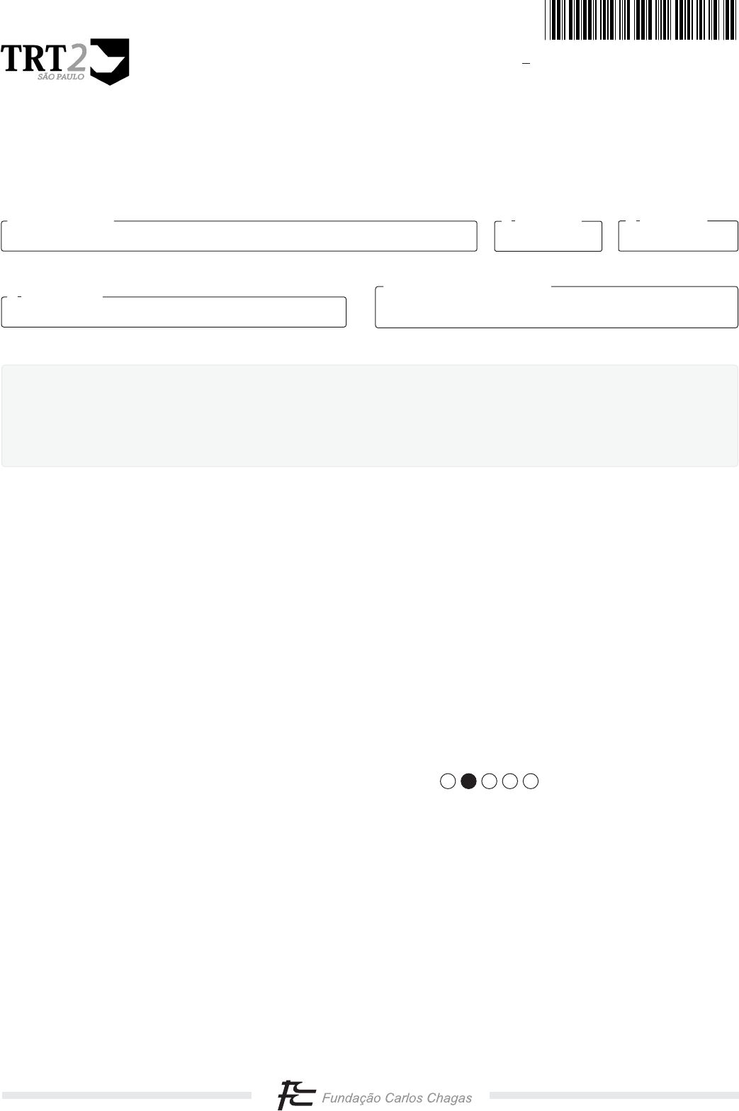 N do CadernooN de Inscriçãoo ASSINATURA DO CANDIDATO N do Documentoo Nome do Candidato P R O V A A C D E Fevereiro/2014 Analista Judiciário - Área Apoio Especializado Especialidade Psicologia Concurso Público para provimento de cargos de Conhecimentos Gerais Conhecimentos Específicos Discursiva - Redação INSTRUÇÕES VOCÊ DEVE ATENÇÃO - Verifique se este caderno: - corresponde a sua opção de cargo. - contém 60 questões, numeradas de 1 a 60. - contém a proposta e o espaço para o rascunho da Prova Discursiva - Redação. Caso contrário, reclame ao fiscal da sala um outro caderno. Não serão aceitas reclamações posteriores. - Para cada questão existe apenas UMAresposta certa. - Você deve ler cuidadosamente cada uma das questões e escolher a resposta certa. - Essa resposta deve ser marcada na FOLHADE RESPOSTAS que você recebeu. - Procurar, na FOLHADE RESPOSTAS, o número da questão que você está respondendo. - Verificar no caderno de prova qual a letra (A,B,C,D,E) da resposta que você escolheu. - Marcar essa letra na FOLHADE RESPOSTAS, conforme o exemplo: - Ler o que se pede na Prova Discursiva - Redação e utilizar, se necessário, o espaço para rascunho. - Marque as respostas com caneta esferográfica de material transparente e tinta preta ou azul. Não será permitido o uso de lápis, lapiseira, marca-texto ou borracha durante a realização das provas. - Marque apenas uma letra para cada questão, mais de uma letra assinalada implicará anulação dessa questão. - Responda a todas as questões. - Não será permitida qualquer espécie de consulta, nem o uso de máquina calculadora. - Em hipótese alguma o rascunho da Prova Discursiva - Redação será corrigido. - Você deverá transcrever a redação, a tinta, na folha apropriada. - A duração da prova é de 4 horas e 30 minutos para responder a todas as questões objetivas, preencher a Folha de Respostas e fazer a Prova Discursiva - Redação (rascunho e transcrição). - Ao término da prova, chame o fiscal da sala e devolva todo o material recebido. - Proibida a divulgação ou impressão parcial ou total da presente prova. Direitos Reservados. TRIBUNAL REGIONAL DO TRABALHO DA 2 REGIÃOa Caderno de Prova ’G07’, Tipo 001 MODELO 0000000000000000 MODELO1 00001−0001−0001 www.pciconcursos.com.br 2 TRT2R-Conhecimentos Gerais2 CONHECIMENTOS GERAIS Língua Portuguesa Atenção: As questões de números 1 a 6 referem-se ao texto seguinte. Diante do futuro Que me importa o presente? No futuro é que está a exis- tência dos verdadeiros homens. Guyau*, a quem não me canso de citar, disse em uma de suas obras estas palavras: “Porventura sei eu se viverei amanhã, se viverei mais uma hora, se a minha mão poderá terminar esta linha que co- meço? A vida está por todos os lados cercada pelo Desco- nhecido. Todavia executo, trabalho, empreendo; e em todos os meus atos, em todos os meus pensamentos, eu pressuponho esse futuro com o qual nada me autoriza a contar. A minha atividade excede em cada minuto o instante presente, estende- se ao futuro. Eu consumo a minha energia sem recear que esse consumo seja uma perda estéril, imponho-me privações, con- tando que o futuro as resgatará − e sigo o meu caminho. Essa incerteza que me comprime de todos os lados equivale para mim a uma certeza e torna possível a minha liberdade − é o fundamento da moral especulativa com todos os riscos. O meu pensamento vai adiante dela, com a minha atividade; ele prepara o mundo, dispõe do futuro. Parece-me que sou senhor do infinito, porque o meu poder não é equivalente a nenhuma quantidade determinada; quanto mais trabalho, mais espero.” * Jean-Marie Guyau (1854-1888), filósofo e poeta francês. (PRADO, Antonio Arnoni (org.). Lima Barreto: uma auto- biografia literária. São Paulo: Editora 34, 2012. p. 164) 1. Lima Barreto vale-se do texto de Guyau para defender a tese de que (A) as projeções do futuro só importam quando estiverem visceralmente ligadas às experiências do presente. (B) o futuro ganha plena importância quando temos a convicção de que todas as nossas ações são dura- douras. (C) as ações do presente têm sua importância determi- nada pelo valor intrínseco de que se revestem. (D) as ações do presente ganham sentido quando pro- jetadas e executadas com vistas ao futuro. (E) o futuro só é do nosso domínio quando nossas ações no tempo presente logram antevê-lo e iluminá-lo. _________________________________________________________ 2. O fato de nossa vida estar cercada pelo Desconhecido não deve implicar uma restrição aos empreendimentos humanos, já que, para Guyau, (A) a incerteza do futuro não elimina a possibilidade de tomá-lo como parâmetro dos nossos empreendi- mentos. (B) os nossos atos tendem a se tornar estéreis quando pautados por uma visão otimista do futuro. (C) a brevidade do tempo que temos para viver autoriza- nos a viver o presente com o máximo de intensidade. (D) o fundamento da moral especulativa está em pla- nejar o futuro sem atentar para as circunstâncias presentes. (E) o trabalho estéril executado no presente acumula energias que serão desfrutadas no futuro. 3. Considerando-se o contexto, traduz-se adequadamente o sentido de um segmento em: (A) Todavia executo (2 o parágrafo) = por conseguinte ajo. (B) uma perda estéril (2 o parágrafo) = um ônus im- próprio. (C) imponho-me privações (2 o parágrafo) = faculto-me restrições. (D) o futuro as resgatará (2 o parágrafo) = o amanhã as imputará. (E) incerteza que me comprime (2 o parágrafo) = dúvida que me constringe. _________________________________________________________ 4. Está clara e correta a redação deste livre comentário sobre o texto: (A) Pelo simples fato de ignorarmos o futuro, Guyau não desiste de valorizar no presente às ações que pode- rão projetar-se nele. (B) O desconhecimento do futuro não nos exime de ser- mos responsáveis por tudo aquilo que empreen- demo