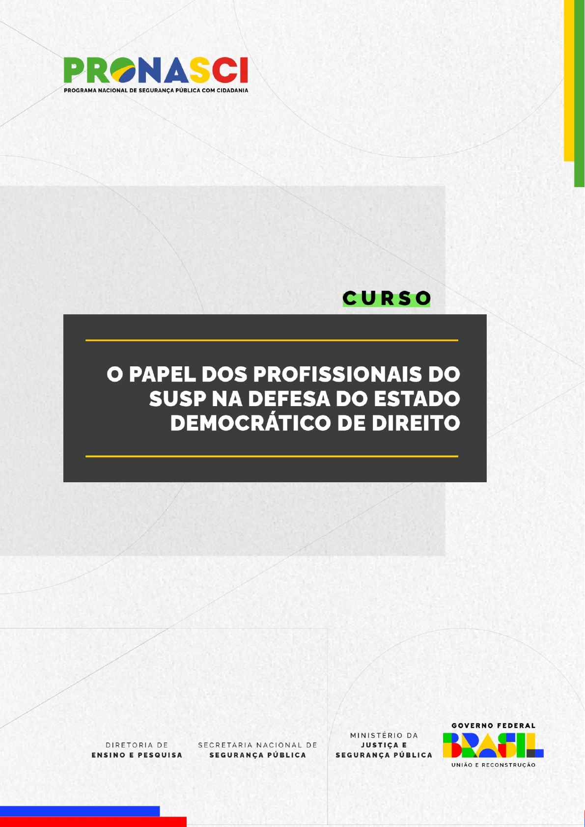 Presidência da República Luiz Inácio Lula da Silva Ministério da Justiça e Segurança Pública Flávio Dino de Castro e Costa Secretaria Nacional de Segurança Pública Francisco Tadeu Barbosa de Alencar Diretoria de Ensino e Pesquisa Michele Gonçalves dos Ramos Coordenação-Geral de Ensino Ana Claudia Bernardes Vilarinho de Oliveira Coordenação Pedagógica Joyce Cristine da Silva Carvalho Coordenação de Ensino a Distância Renata Guilhões Barros Santos Gerente de Curso Danilo Bruno Moreira Conteudistas Alan Fernandes Elizabeth Albernaz Ignacio Cano Colaboração: Renato Sérgio de Lima Revisão Técnica Ana Paula Santos Meza Danilo Bruno Moreira Revisão Pedagógica Evania Santos Assunção Revisão Textual Julio Cezar Rodrigues Programação e Edição Renato Antunes dos Santos Fábio Nevis dos Santos Design Instrucional Wagner Henrique Varela da Silva Sumário APRESENTAÇÃO DO CURSO ................................................................................................................... 5 OBJETIVOS DO CURSO .................................................................................................................................. 9 OBJETIVOS ESPECÍFICOS ...................................................................................................................................... 9 ESTRUTURA DO CURSO ..................................................................................................................................... 10 MÓDULO 1 – O ESTADO DEMOCRÁTICO DE DIREITO ........................................................................... 11 APRESENTAÇÃO DO MÓDULO ............................................................................................................................ 11 OBJETIVOS DO MÓDULO ................................................................................................................................... 11 ESTRUTURA DO MÓDULO ................................................................................................................................. 12 AULA 1 - O SURGIMENTO DO ESTADO MODERNO ............................................................................... 13 1.1 O NASCIMENTO DA DEMOCRACIA MODERNA E LIBERAL: AS REVOLUÇÕES BURGUESAS E A CONSTITUIÇÃO DA NOÇÃO DE CIDADANIA ..................................................................................................................................................... 14 AULA 2 – CIDADANIA E DIREITOS HUMANOS ....................................................................................... 26 AULA 3 - O PAPEL DA SEGURANÇA PÚBLICA NA CONSOLIDAÇÃO DO ESTADO DEMOCRÁTICO DE DIREITO ............................................................................................................................................................ 36 FINALIZANDO.... ................................................................................................................................... 45 MÓDULO 2 – CONCEITO DE POLÍCIA E ORIGENS HISTÓRICAS ............................................................... 47 APRESENTAÇÃO DO MÓDULO ............................................................................................................................ 47 OBJETIVOS DO MÓDULO ................................................................................................................................... 47 ESTRUTURA DO MÓDULO ................................................................................................................................. 47 AULA 1 – O CONCEITO DE POLÍCIA E O SURGIMENTO HISTÓRICO DAS POLÍCIAS MODERNAS .............. 48 AULA 2 – OS DOIS MODELOS BÁSICOS DE POLÍCIA: DEFENDENDO O ESTADO VERSUS DEFENDENDO OS CIDADÃOS. ........................................................................................................................................... 60 AULA 3 - A DOUTRINA POLICIAL ENTRE O COMBATE AOS CRIMINOSOS E A PROTEÇÃO DO CIDADÃO . 71 AULA 4 - A DISCRICIONARIEDADE NO TRABALHO POLICIAL ................................................................. 83 AULA 5 – LEGITIMIDADE E TRABALHO POLICIAL .................................................................................. 93 FINALIZANDO.... ................................................................................................................................. 102 MÓDULO 3 - POLÍCIA E A ESFERA DA POLÍTICA .................................................................................. 105 APRESENTAÇÃO DO MÓDULO .......................................................................................................................... 105 OBJETIVOS DO MÓDULO ................................................................................................................................. 106 ESTRUTURA DO MÓDULO ............................................................................................................................... 106 AULA 1 - DILEMAS DO GOVERNO POLÍTICO DAS POLÍCIAS ................................................................. 107 AULA 2 – POLÍCIA POLÍTICA E A POLÍTICA DA POLÍCIA ........................................................................ 120 2.1 POLÍCIA E POLÍTICA ....................................................................................................................120 2.2 POLÍCIA POLÍTICA .......................................................................................................................125 2.3 POLÍTICOS DE ESQUINA ................................................................................................................ 129 AULA 3 – POLÍCIA E A RECONSTITUIÇÃO DA ESFERA DA POLÍTICA ..................................................... 133 3.1 CARACTERÍSTICAS DE CONTEXTOS PÓS-CONFLITO ...................................................................... 134 3.2 O CONCEITO DE CORE POLICING