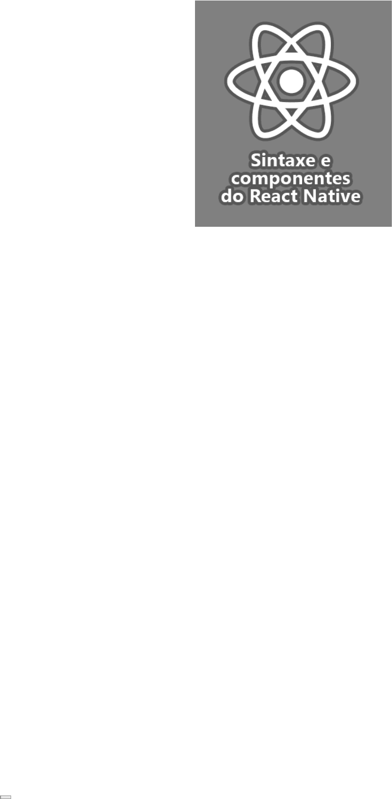 Conheceremos a sintaxe e os componentes do framework React Native para o desenvolvimento de aplicativos móveis, nos