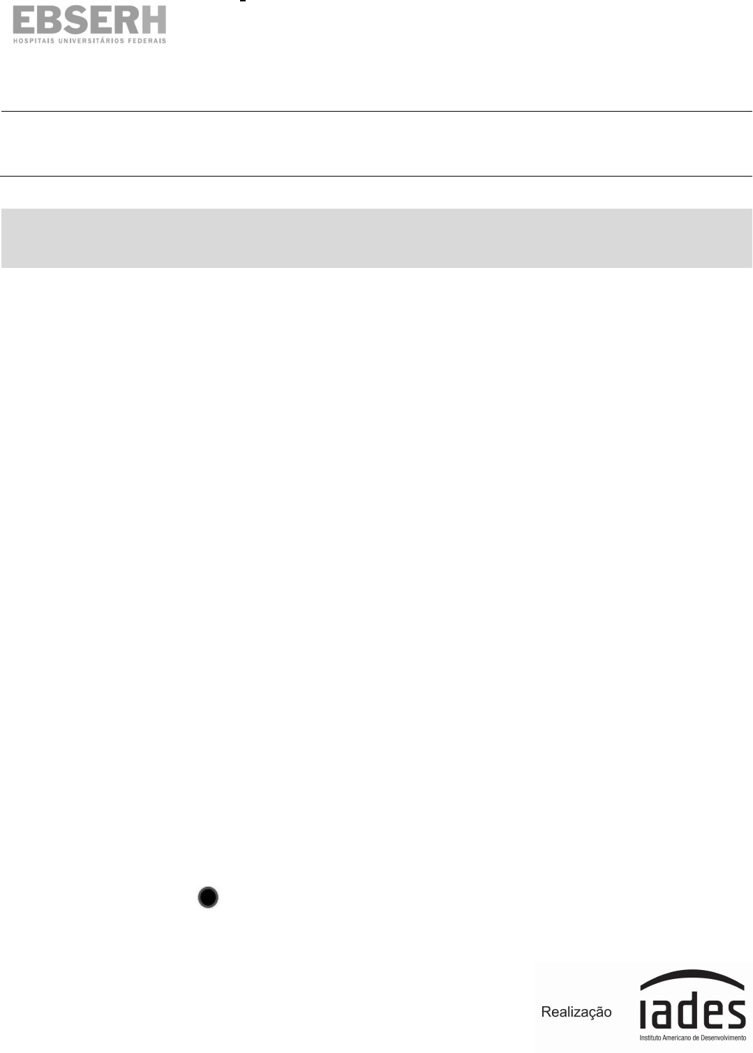 Empresa Brasileira de Serviços Hospitalares Edital n o 02 – Área Médica, de 20/2/2014. Hospital Universitário Professor Edgard Santos da U niversidade Federal da Bahia Concurso Público para Provimento de Vagas e Formaçã o de Cadastro de Reserva em Empregos Públicos Efetivos de Nível Supe rior Cargo 864 Médico – Pediatria Data e horário da prova: Domingo, 11/5/2014, às 8h3 0 INSTRUÇÕES • Você receberá do fiscal: o um caderno de questões da prova objetiva contendo 50 (cinquenta) questões de múltipla escolha, com 5 (cinco) alternativas de resposta cada uma, e apenas uma alternativa correta; o um cartão de respostas ótico personalizado. • Verifique se a numeração das questões, a paginação do caderno de questões e a codificação do cartão de respostas ótico estão corretas. • Quando autorizado pelo fiscal do IADES , no momento da identificação, escreva no espaço apropriado do cartão de respostas , com a sua caligrafia usual, a seguinte frase: A vida é um palco que não admite ensaios. • Você dispõe de 4 (quatro) horas para fazer a prova objetiva, devendo controlar o tempo, pois não haverá prorrogação desse prazo. Esse tempo inclui a marcação do cartão de respostas ótico. • Somente será permitido levar o caderno de questões da prova objetiva após 3 (três) horas e 30 (trinta) minutos do início da prova. • Somente após decorrida 1 (uma) hora do início da prova, você poderá entregar seu cartão de respostas ótico e retirar-se da sala. • Após o término da prova, entregue ao fiscal do IADES o cartão de respostas devidamente assinado. • Deixe sobre a carteira apenas o documento de identidade e a caneta esferográfica de tinta preta ou azul , fabricada de material transparente . • Não é permitida a utilização de qualquer aparelho eletrônico de comunicação. Desligue e guarde em embalagem fornecida pelo fiscal do IADES: máquina fotográfica; telefone celular; relógio; gravador; bip; receptor; pager; notebook; tablet eletrônico; walkman; aparelho portátil de armazenamento e de reprodução de músicas, vídeos e outros arquivos digitais; agenda eletrônica; palmtop; régua de cálculo; máquina de calcular e (ou) qualquer outro equipamento similar. • Não é permitida a consulta a livros, dicionários, apontamentos e apostilas. • Você somente poderá sair e retornar à sala de aplicação de provas na companhia de um fiscal do IADES . • Não será permitida a utilização de lápis em nenhuma etapa da prova. INSTRUÇÕES PARA A PROVA OBJETIVA • Verifique se os seus dados estão corretos no cartão de respostas . Caso haja algum dado incorreto, escreva apenas no(s) campo(s) a ser(em) corrigido(s), conforme instruções no cartão de respostas . • Leia atentamente cada questão e assinale, no cartão de respostas ótico, uma única alternativa. • O cartão de respostas ótico não pode ser dobrado, amassado, rasurado ou manchado nem pode conter nenhum registro fora dos locais destinados às respostas. • A maneira correta de assinalar a alternativa no cartão de respostas é cobrir, fortemente, com caneta esferográfica preta ou azul , o espaço a ela correspondente. • Marque as respostas assim: www.pciconcursos.com.br CONCURSO PÚBLICO – ÁREA MÉDICA – EBSERH 864 – Médico – Pediatria PÁGINA 2/11 CONHECIMENTOS BÁSICOS Questões de 1 a 20 LÍNGUA PORTUGUESA Questões de 1 a 10 Texto 1 para responder as questões de 1 a 5. 1 4 7 10 13 16 19 22 25 28 31 34 35 O trabalho, no decorrer da história, foi ocupando a maior parte do tempo do ser humano. O que, de início, era para suprir suas necessidades básicas de subsistência passa a ser, principalmente após a Revolução Industrial, o ponto central da vida do homem. O homem, dessa forma, passa maior parte de sua vida em seus locais de trabalho, dedicando sua força, energia e esforços para as organizações. Ou seja, disponibilizando maior parte do seu tempo ao trabalho do que propriamente com suas famílias e amigos. Além disso, com o avanço tecnológico, o “local de trabalho” pode ser em qualquer lugar: em viagens, casa, hotéis etc; em todos os locais, pode-se “trabalhar” para a organização. Indo mais além, mesmo quando o homem tenta “se desligar”, não estando no local de trabalho e nem mesmo conectado utilizando os recursos tecnológicos, mesmo assim, a vida do homem gira em função do trabalho. O nível de pressão por resultados, a concorrência e a complexidade por um espaço no mercado fazem com que o trabalho seja uma constante na vida do homem moderno. A organização, por outro lado, percebe, cada vez mais, a importância do ser humano para o alcance de resultados, pois a capacidade de raciocínio, de criatividade, de solucionar problemas está presente nas pessoas, e não nas máquinas. Dessa forma, a organização passa a se preocupar em oferecer um ambiente que traga ao indivíduo conforto, respeito, segurança e bem-estar, entre outros. Ou seja, a organização deve oferecer um ambiente propício e que favoreça o uso de suas capacidades. Muitos fatores contribuem para uma não qualidade de vida, por isso devem ser identificados e combatidos com políticas e ações que visem minimizar, ou mesmo eliminar, esses males que afetam, não somente o trabalho, mas também a vida familiar e social dos colaboradores. SIMPEP , XII. Anais. Bauru: Universidade Estadual Paulista, 2006, com adaptações. QUESTÃO 1 _______________________ Com base nas ideias do texto e nas relações entre elas, assinale a alternativa correta. (A) O trabalho é realizado, essencialmente, para a subsistência do trabalhador. (B) O trabalho se desvincula do homem moderno fora do ambiente de trabalho. (C) As organizações tendem a valorizar, cada vez mais, a capacidade produtiva das máquinas. (D) No ambiente de trabalho, oferecer melhorias permite a otimização das capacidades criativas dos trabalhadores. (E) Um bom desempenho no trabalh