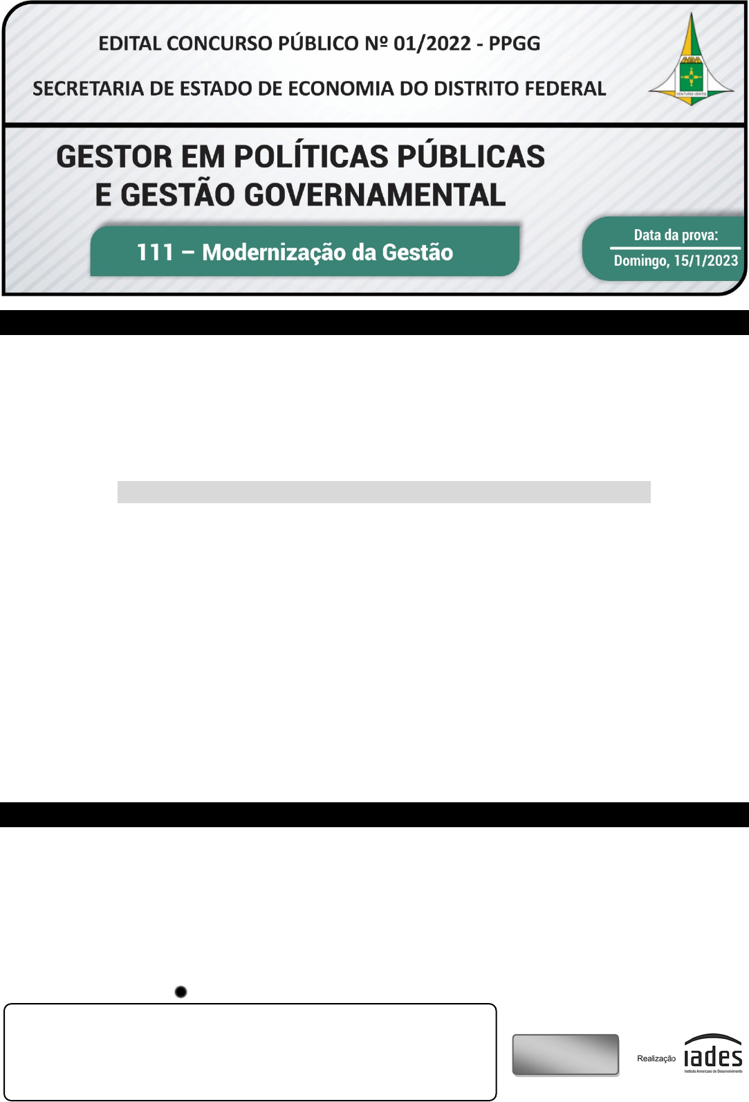 PR OV A A PL IC AD A Tipo “A” I N S T R U Ç Õ E S Você receberá do fiscal: o 1 (um) caderno de questões das provas objetiva e discursiva contendo 60 (sessenta) questões de múltipla escolha, com 5 (cinco) alternativas de resposta cada uma e apenas 1 (uma) alternativa correta, e 1 (uma) questão discursiva; o 1 (uma) folha de respostas personalizada da prova objetiva; e o 1 (uma) folha de texto definitivo da prova discursiva. Quando autorizado pelo fiscal do IADES, no momento da identificação, escreva no espaço apropriado da folha de respostas da prova objetiva, com a sua caligrafia usual, a seguinte frase: Para viajar basta existir. Verifique se estão corretas a numeração das questões e a paginação do caderno de questões, bem como a codificação da folha de respostas da prova objetiva e da folha de texto definitivo da prova discursiva. Você dispõe de 4 (quatro) horas e 30 (minutos) para fazer as provas objetiva e discursiva e deve controlar o tempo, pois não haverá prorrogação desse prazo. Esse tempo inclui a marcação da folha de respostas da prova objetiva e o preenchimento da folha de texto definitivo da prova discursiva. Somente 1 (uma) hora após o início da prova, você poderá entregar sua folha de respostas da prova objetiva, a folha de texto definitivo da prova discursiva e o caderno de questões, bem como retirar-se da sala. Você somente poderá retirar-se do local de aplicação das provas levando o caderno de questões quando faltar 1 (uma) hora para o final do tempo destinado à realização das provas objetiva e discursiva. Após o término da prova, entregue ao fiscal do IADES a folha de respostas da prova objetiva, devidamente assinada, e a folha de texto definitivo da prova discursiva. Deixe sobre a carteira apenas o documento de identidade e a caneta esferográfica de tinta preta, fabricada com material transparente. Não é permitida a utilização de nenhum aparelho eletrônico ou de comunicação. Não é permitida a consulta a livros, dicionários, apontamentos e (ou) apostilas. Você somente poderá sair e retornar à sala de aplicação de provas na companhia de um fiscal do IADES. Não será permitida a utilização de lápis em nenhuma etapa da prova. I N S T R U Ç Õ E S P A R A A S P R O VA S O B J E T I V A E D I S C U R S I V A Verifique se os seus dados estão corretos na folha de respostas da prova objetiva e na folha de texto definitivo da prova discursiva. Caso haja algum dado incorreto, comunique ao fiscal. Leia atentamente cada questão e assinale, na folha de respostas da prova objetiva, uma única alternativa. A folha de respostas da prova objetiva e a folha de texto definitivo da prova discursiva não podem ser dobradas, amassadas, rasuradas ou manchadas e nem podem conter nenhum registro fora dos locais destinados às respostas. O candidato deverá transcrever, com caneta esferográfica de tinta preta, as respostas da prova objetiva para a folha de respostas e o texto definitivo da prova discursiva para a folha de texto definitivo. A maneira correta de assinalar a alternativa na folha de respostas da prova objetiva é cobrir, fortemente, com caneta esferográfica de tinta preta, o espaço a ela correspondente. Marque as respostas assim: PR OV A A PL IC AD A PÁGINA 2/16 GESTOR EM POLÍTICAS PÚBLICAS E GESTÃO GOVERNAMENTAL 111 – MODERNIZAÇÃO DA GESTÃO – TIPO “A” CONCURSO PÚBLICO – PPGG P R O V A O B J E T I V A CONHECIMENTOS GERAIS Questões de 1 a 30 LÍNGUA PORTUGUESA Questões de 1 a 10 Texto para responder às questões de 1 a 3. As narrativas críticas construídas para a judicialização da saúde 1 4 7 10 13 16 19 22 25 28 31 34 37 40 43 46 47 A repercussão que a judicialização da saúde alcançou em âmbito político e institucional se reflete no âmbito acadêmico. São numerosas e variadas as reflexões e pesquisas acadêmicas acerca do tema, de forma que há considerável produção tanto no aspecto quantitativo quanto no aspecto qualitativo, o que transparece na dedicação consistente de alguns pesquisadores ao tema ao longo de vários anos. As pesquisas acadêmicas têm recebido influência e têm influenciado iniciativas institucionais e a atividade adjudicativa. Os estudos acadêmicos a respeito da judicialização da saúde têm enfatizado, de forma mais constante, o lado negativo da judicialização da saúde. Entre os efeitos negativos destacados, estão: o comprometimento da governabilidade e da gestão da saúde; e o aprofundamento de iniquidades de acesso, em razão do privilégio obtido por segmentos e indivíduos com maior poder de reivindicação. De outro lado, tal visão seria temperada por outros pesquisadores, que reconhecem nas deficiências ou insuficiências do Sistema Único de Saúde (SUS) um fator que conduz à judicialização. Dessa forma, se reconhecia que o aumento da atuação do sistema de justiça, embora tenha repercussões na gestão e influencie tomadas de decisões, ao menos em parte era decorrência das deficiências da própria Administração Pública. Desde então, tem ganhado ainda mais força a visão de que há uma judicialização excessiva, e, assim, a ideia de judicialização da saúde foi sendo gradativamente reduzida para se referir, em geral, a uma distorção que tem duas principais faces: o excesso de ações e o descabido protagonismo da magistratura e do Poder Judiciário. Como bem destacou-se na preleção de abertura do 1o Encontro do Fórum Nacional da Saúde, vulgarizou-se a ideia de que “o Poder Judiciário estaria se metendo no que não deve”. Já naquele momento, chamava-se atenção para o fato de que a ideia de judicialização possui uma conotação mais ampla, como, por exemplo, a aplicação dos métodos ou modelos judiciais de solução de controvérsias. A crítica à judicialização da saúde, embora tenha se tornado a regra, não é uniforme em seus argumentos. Ademais, é raro encontrar quem rejeite peremptoriamente