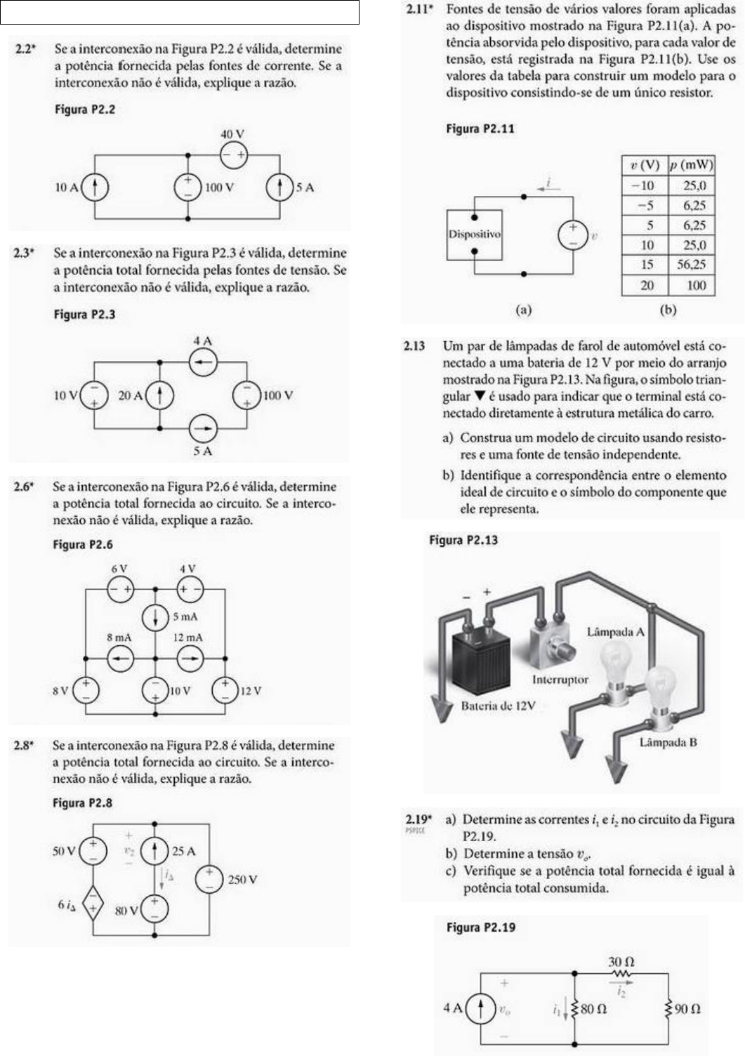 ANÁLISE DE CIRCUITOS I – LISTA DE EXERCÍCIOS 03 12 – Simule os exercícios 4.59, 4.62 e 11 e comprove seus resultados. RESPOSTAS