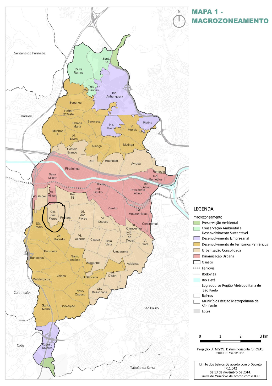 1 Mapa 1 - Macrozoneamento 2 Mapa 2 - Sistema de Centralidades (CE e ZCE) 3 Mapa 3 - Eixos de Mobilidade e Integração Urbana (EMIU e ZEMIU) 4 Mapa 4 - Áreas de Interesse Especial 5 Mapa 5 - Zoneamento Especial Ambiental Mapa 6 - Sistema de Áreas Verdes e Azuis 6 7 Mapa 7 - Parques Existentes e Propostos 8 Mapa 8 - Unidades de Conservação 9 Mapa 9 - Áreas de Risco 10 Mapa 10 - Patrimônio Cultural e Bens Representativos 11 Mapa 11 - Sistema Viário Estrutural 12 Mapa 12 - Sistema Viário – Propostas 13 Mapa 13 - Propostas de Transposições Norte-Sul 14 Mapa 14 - Sistema Cicloviário – Propostas 15 Mapa 15 - Sistema de Transporte Coletivo Figura 1 - Tipologias dos Corredores de Ônibus do EMIU Seção Tipo Ideal – Corredor de ônibus central Seção Tipo Mínima – Corredor de ônibus lateral Seção Tipo – Corredor de ônibus em binário 2,7m 1,5m 1,5m 2,8m 3,5m 2,0m 3,5m 2,8m 1,5m 1,5m 2,7m 26,0m 2,0m 22,0m 1,5m 3,5m 2,8m 2,8m 2,5m 2,5m 1,5m 2,0m 2,5m 1,5m 1,5m 3,0m 3,5m 2,0m 1,5m 2,5m 18,0m Figura 2 - Faixa não edificante do binário Av. Presidente Costa e Silva e R. Walt Disney Faixa demarcada a 9m (nove metros) a partir do eixo da via Figura 3 - Faixa não edificante da Av. Presidente Médici Faixa demarcada a 13m (treze metros) a partir do eixo da via Figura 4 - Faixa não edificante da Av. dos Remédios Faixa demarcada a 11m (onze metros) a partir do eixo da via Figura 5 - Faixa não edificante da Av. São José Faixa demarcada a 11m (onze metros) a partir do eixo da via Figura 6 - Faixa não edificante da Av. das Esmeraldas Faixa demarcada a 11m (onze metros) a partir do eixo da via no trecho de mão dupla e 9m (nove metros) no trecho do binário 11m a partir do eixo da via 9m a partir do eixo da via Figura 7 - Faixa não edificante do binário R. Alexandre Baptistone e R. Nossa Senhora da Imaculada Conceição Faixa demarcada a 9m (nove metros) a partir do eixo da via Figura 8 - Faixa não edificante do binário Av. Hildebrando de Lima e R. Diogo Antônio Feijó Faixa demarcada a 9m (nove metros) a partir do eixo da via Figura 9 - Faixa não edificante do binário R. General Pedro Pinho e R. Alberto Cortez Faixa demarcada a 9m (nove metros) a partir do eixo da via Figura 10 - Faixa não edificante da Av. João de Andrade Faixa demarcada a 11m (onze metros) a partir do eixo da via Figura 11 - Faixa não edificante da Av. Valter Boveri Faixa demarcada a 11m (onze metros) a partir do eixo da via Figura 12 - Faixa não edificante da Av. Novo Osasco Faixa demarcada a 11m (onze metros) a partir do eixo da via Figura 13 - Faixa não edificante da Av. Sarah Veloso Faixa demarcada a 13m (treze metros) a partir do eixo da via Figura 14 - Faixa não edificante da Av. Prestes Maia Faixa demarcada a 13m (treze metros) a partir do eixo da via Figura 15 - Faixa não edificante do binário R. Doutor Bento Vidal e R. Doutor Washington Pedro Lanzzelotti Faixa demarcada a 11m (onze metros) a partir do eixo da via no trecho de mão dupla e 9m (nove metros) no trecho do binário 11m a partir do eixo da via 9m a partir do eixo da via Figura 16 - Faixa não edificante da R. Pernambucana, R. Monte das Oliveiras e R. Doze de Outubro Faixa demarcada a 11m (onze metros) a partir do eixo da via Figura 17 - Faixa não edificante do binário Av. Clóvis Assaf e Av. dos Trabalhadores Faixa demarcada a 13m (treze metros) a partir do eixo da via no trecho de mão dupla e 9m (nove metros) no trecho do binário 13m a partir do eixo da via 9m a partir do eixo da via Figura 18 - Faixa não edificante da Av. Alberto J. Byington Faixa demarcada a 11m (onze metros) a partir do eixo da via Figura 19 - Faixa não edificante das vias Av. Alberto J. Byington, R. Arinos, Estr. da Alpina e Av. Dr. Mauro Lindemberg Monteiro Faixa demarcada a 13m (treze metros) a partir do eixo da via no trecho de mão dupla e 9m (nove metros) no trecho do binário 13m a partir do eixo da via 9m a partir do eixo da via 13m a partir do eixo da via Quadro 1 - Definições Área Computável ‐ Soma das áreas cobertas de todos os andares de uma edificação, inclusive subsolos e ocupadas por elementos de estrutura e vedação que são consideradas para o cálculo do Coeficiente de Aproveitamento de acordo com definição da legislação pertinente. Área Não Computável – Soma das áreas cobertas de todos os andares de uma edificação, inclusive subsolos e ocupadas por elementos de estrutura e vedação que não são consideradas para o cálculo do Coeficiente de Aproveitamento de acordo com definição da legislação pertinente. Área Construída – Soma de todas as áreas cobertas de uma edificação, incluindo Áreas Computáveis e Não Computáveis. Áreas Verdes – Espaço com predomínio de vegetação com funções de lazer, melhoria e preservação ambiental e paisagística. Assentamento Precário – ocupações urbanas informais com carência de serviços públicos essenciais tais como água, esgoto, coleta de resíduos sólidos, energia elétrica, iluminação pública e sistema viário, que necessitam passar por processo de urbanização e regularização fundiária. Coeficiente de Aproveitamento (CA) – Determina quantos metros quadrados poderão ser construídos no lote, quando multiplicado a área do lote pelo coeficiente definido em lei. O Coeficiente de Aproveitamento é dividido em 3 (três) definições: - Mínimo: determina a área construída computável mínima que um lote deve abrigar para que não seja considerado subutilizado. - Básico: determina a área construída computável que um lote pode abrigar como direito inerente à propriedade, sem que seja feita cobrança pelo direito de construção. - Máximo: determina a área construída computável máxima que um lote pode abrigar e que não pode ser ultrapassada em hipótese alguma. Contrapartida Financeira – Quantia em reais a ser depositada por pessoa ou entidade privada em favor do Poder Público para obtenção de benefício, com caracte